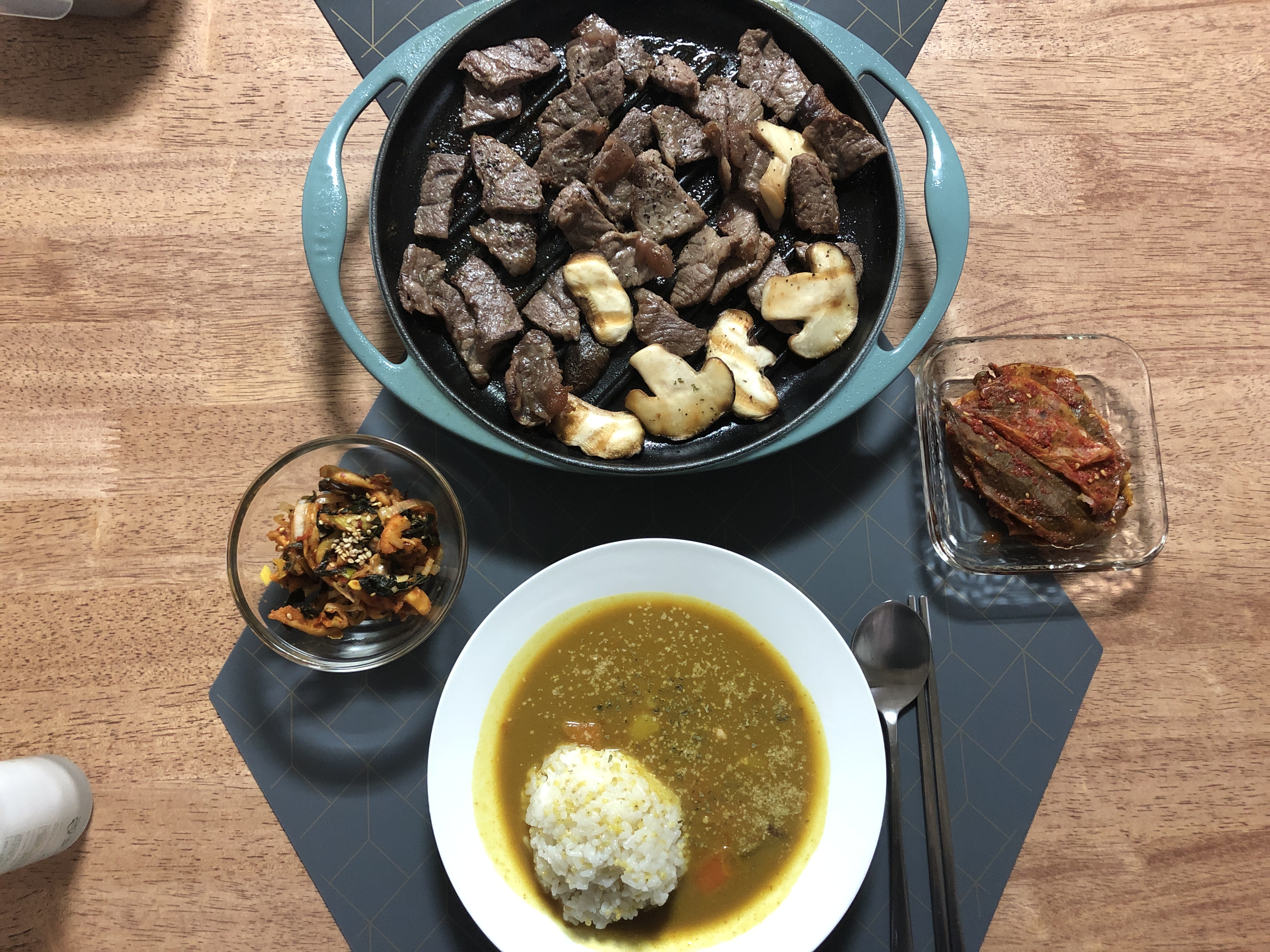 근래 해먹은 식사. 물론 간간히 레토르트식품이 있다. 만두와 빵, 스팸 ㅋㅋ