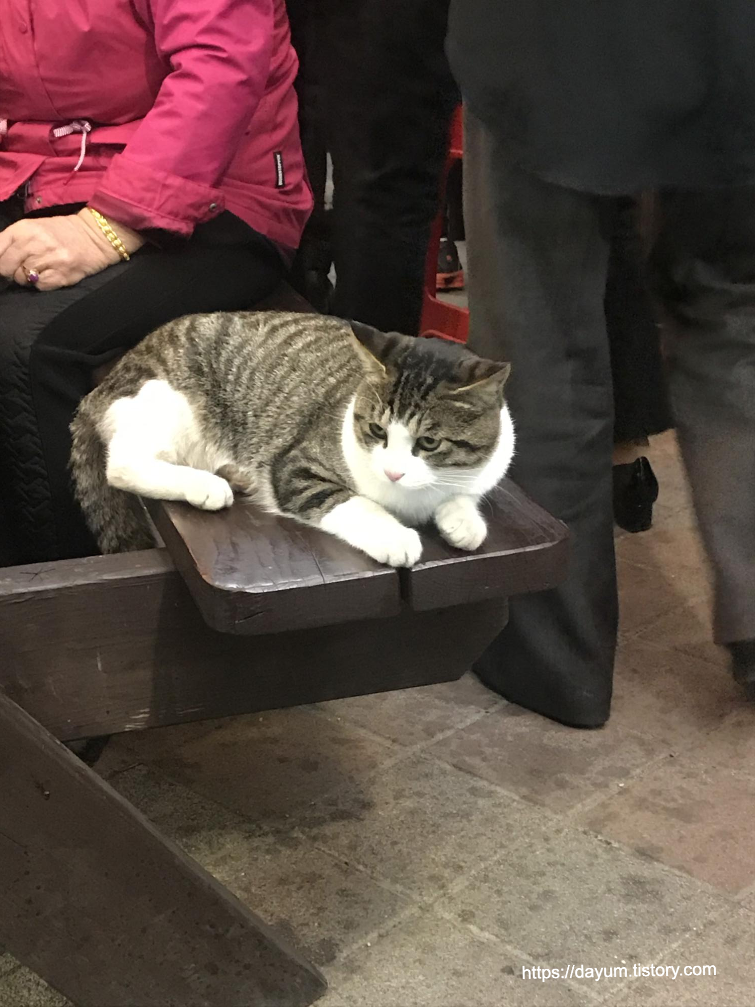 이곳사람들은 아무렇지 않은듯 쓰다듬고 안고 하시는데, 고양이가 한 할머니 옆으로 올라가더니 엄청난 예쁨을 받고 애교부리는 모습을 구경하면서 맛있게 먹었다.