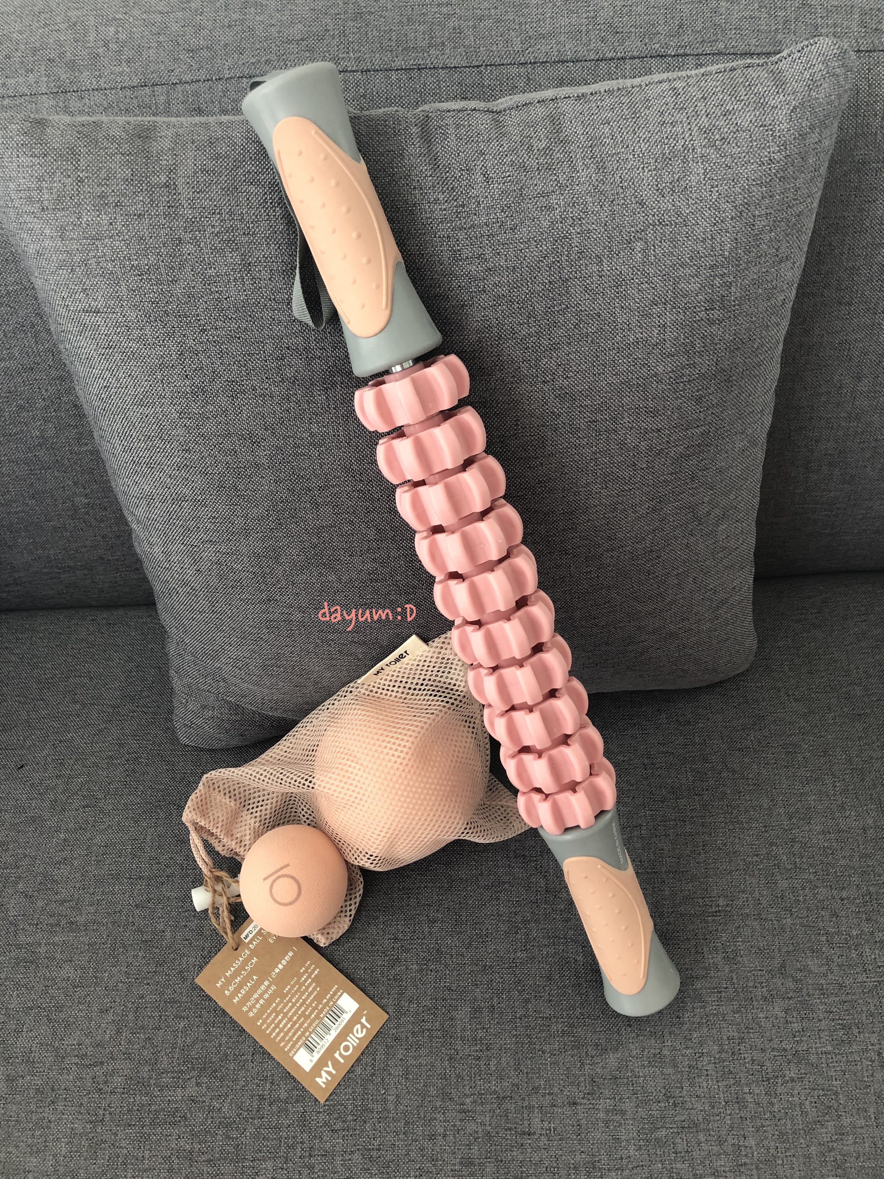 w컨셉에서 구매했는데, 교통사고 여파로 어깨가 너무 아프고 (엑스레이상으로는 이상이 없다고 한다.) 다리도 너무 잘 붓고 종아리도 아파서 구입했다. 요가링으로 허리 스트레칭도 잘 하고 있지만 마사지볼과 롤러는 용도가 다르니까...