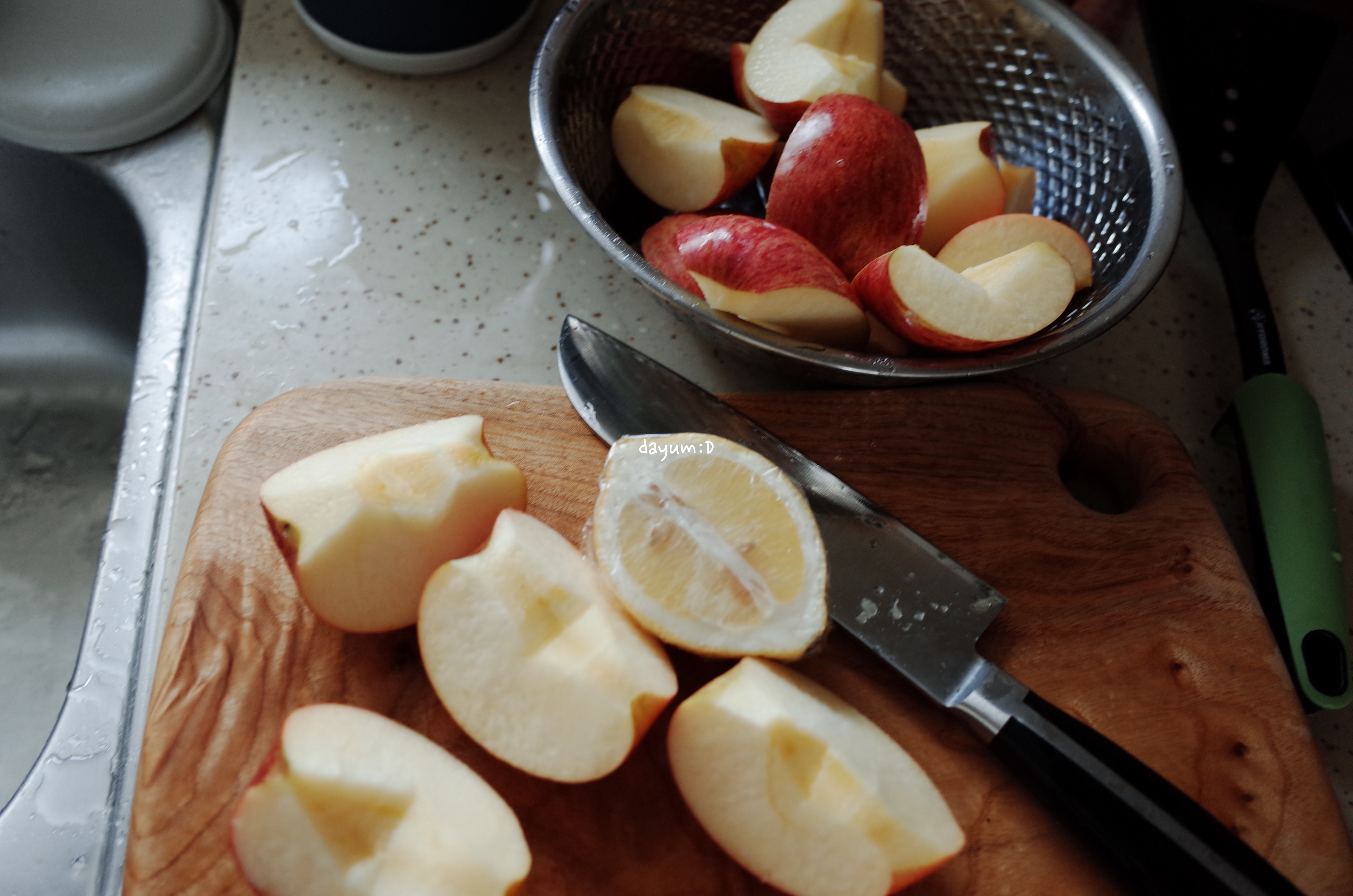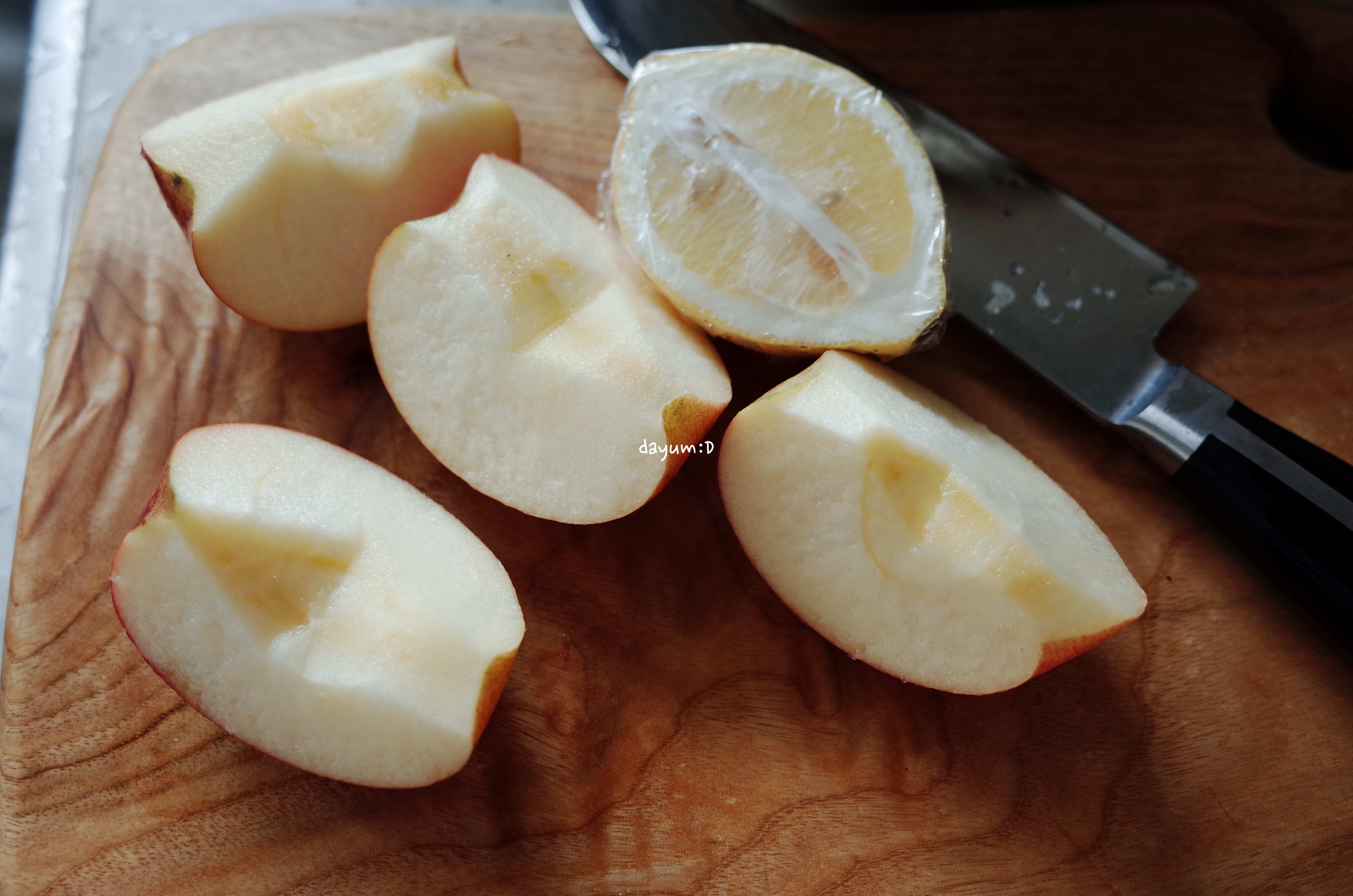 재료는 사과4알과 레몬 반쪽, 설탕300g 정도?