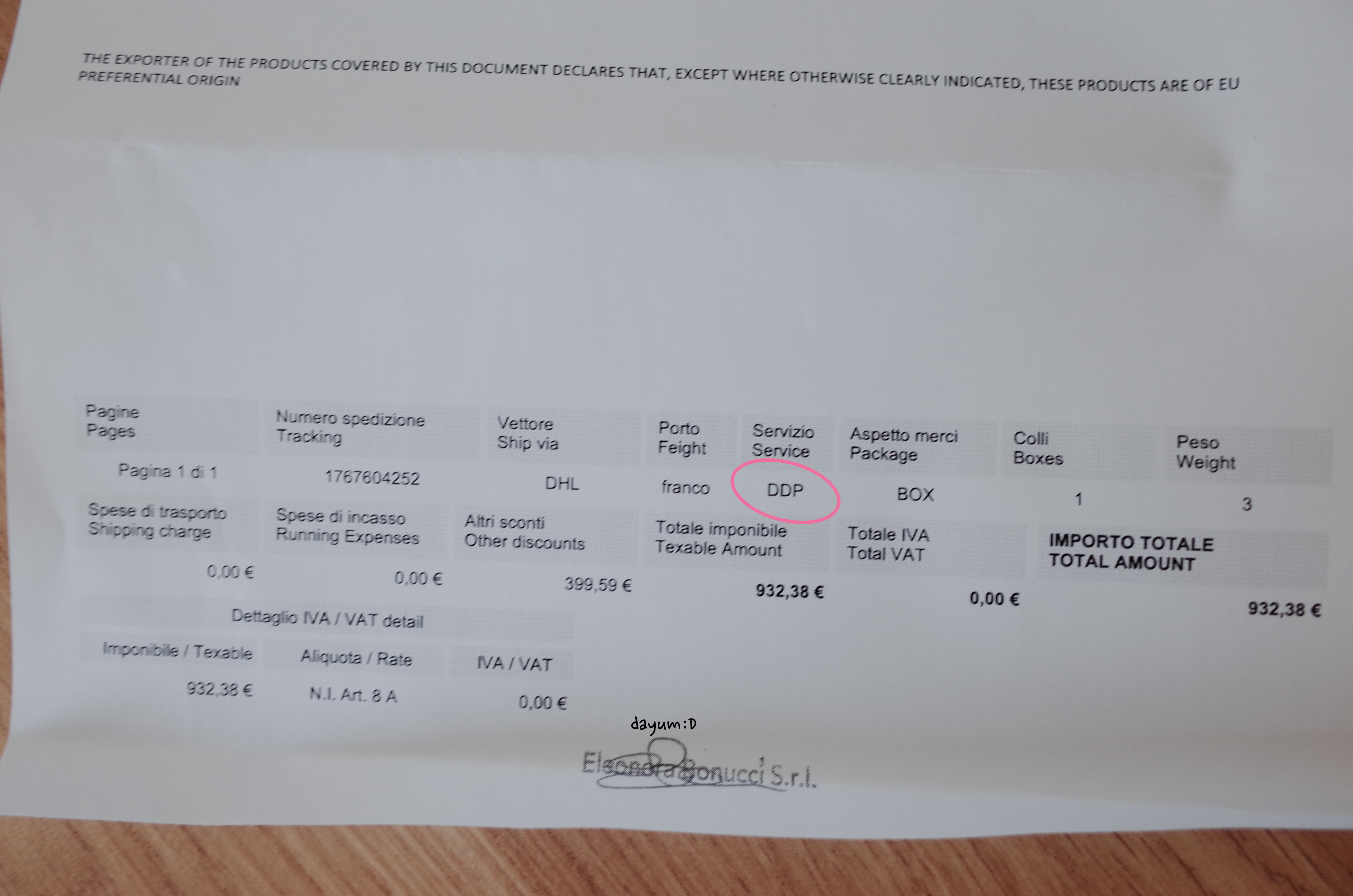 엘레오노라보누치는 DDP, 인보이스에도 나와있당.