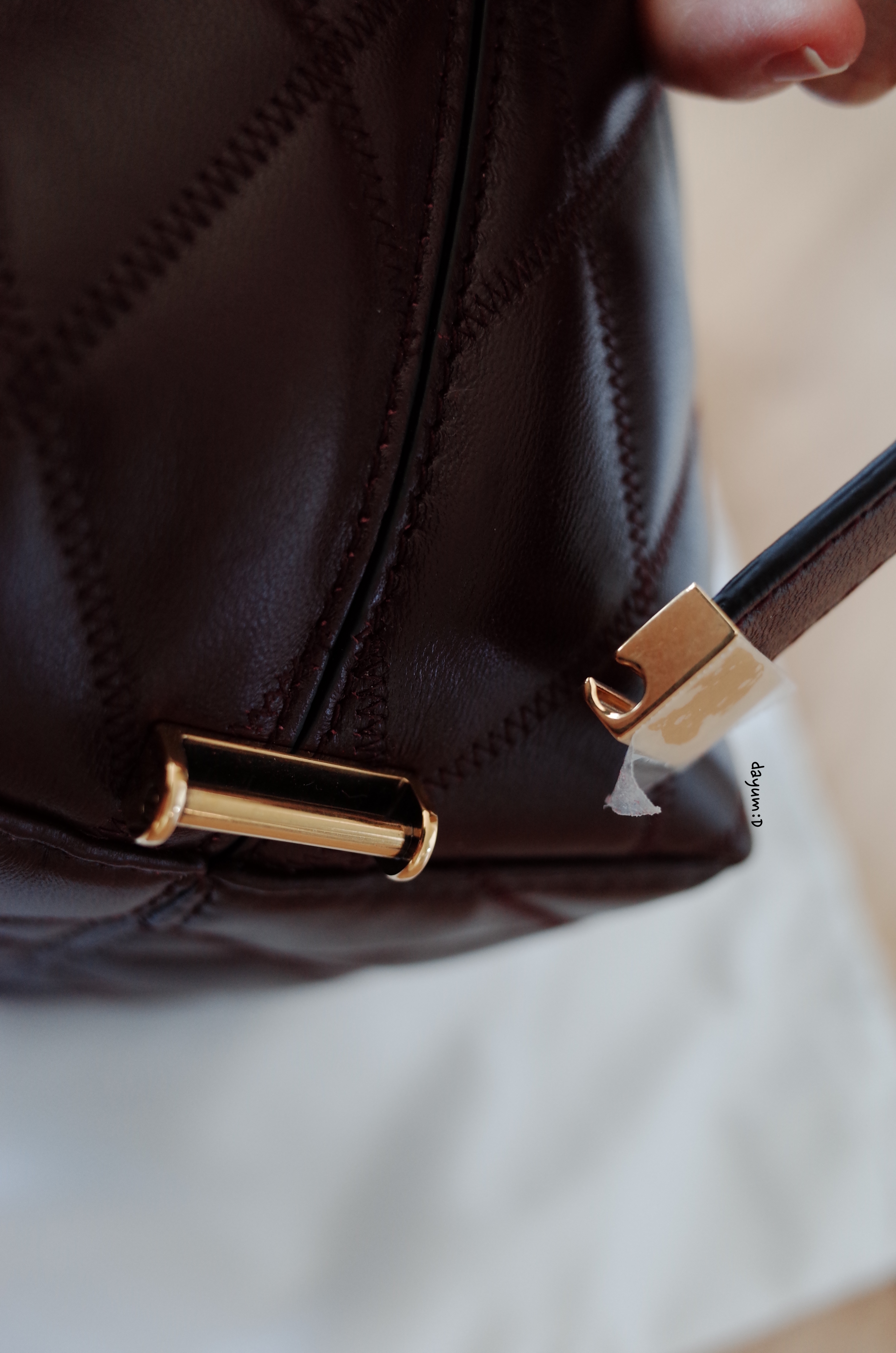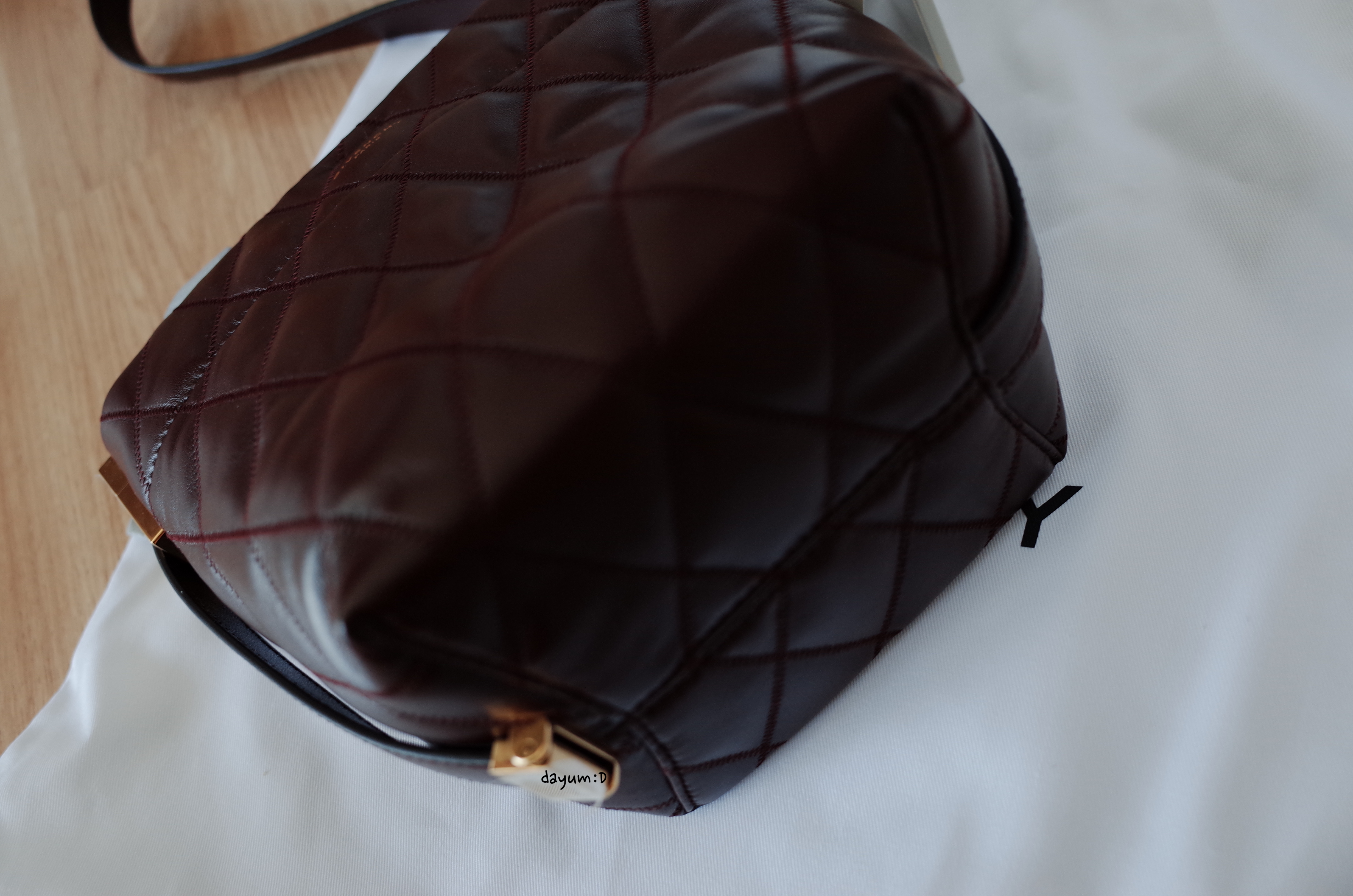 크기는 작지만 버킷백이라서 그런지 물건이 많이 들어갈 것 같다. 바닥은 정사각형 형태다.