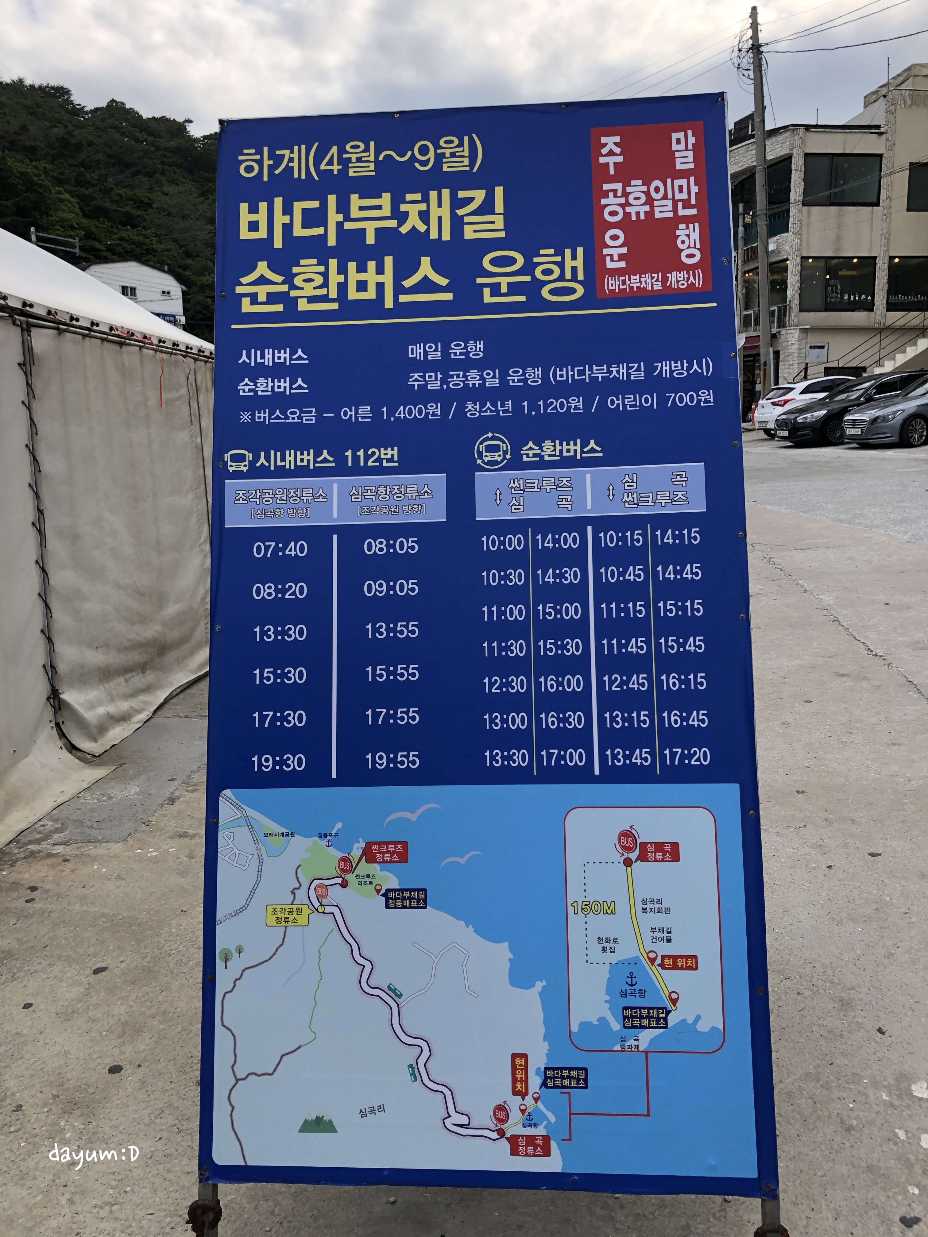 심곡항쪽에서 출발해서 썬크루즈까지 걷고, 걸어서 돌아오거나 순환버스(주말과 공휴일만 운행)를 타고 돌아올 수 있다.
