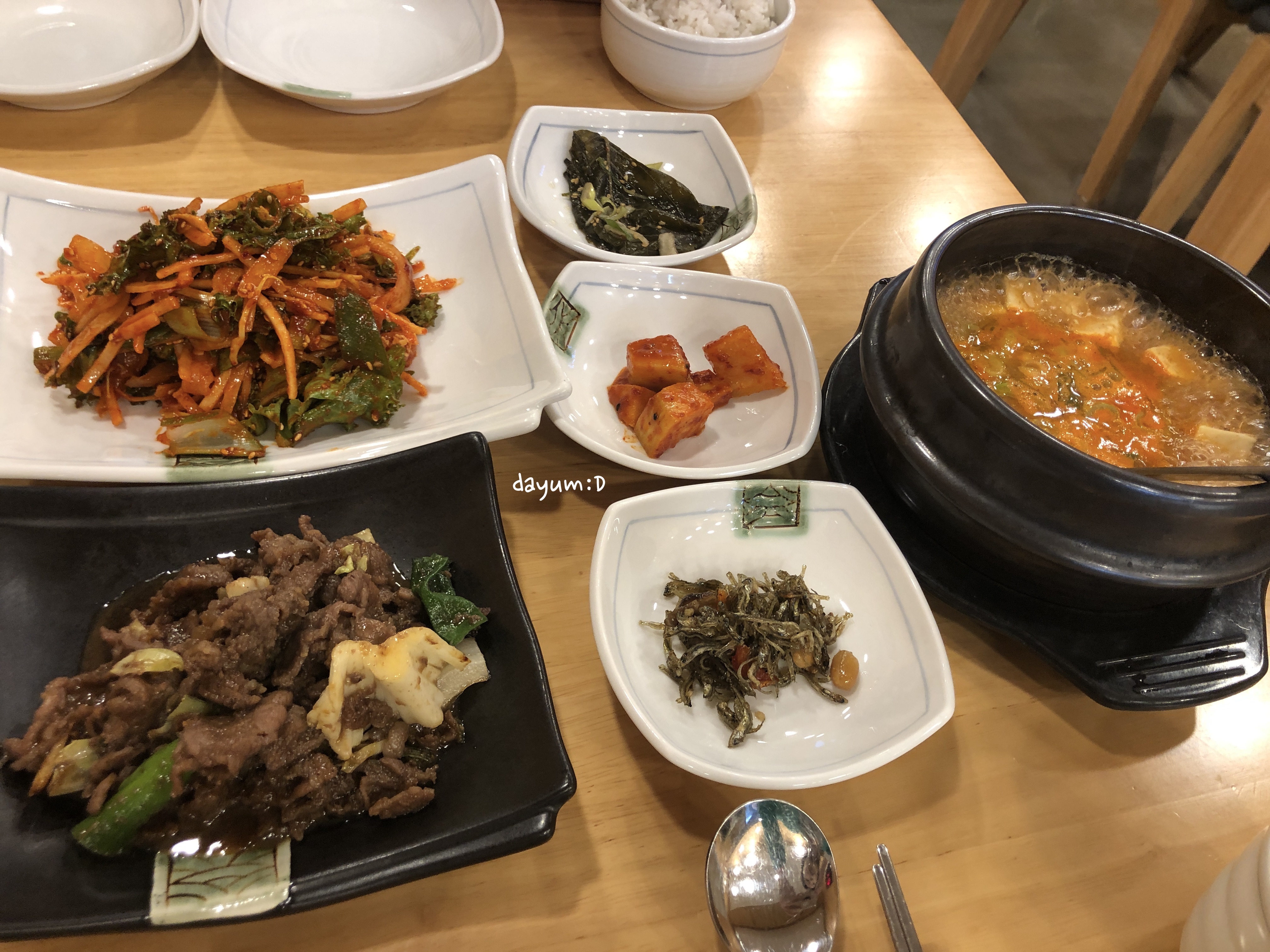 집에서 밥 해먹기 싫을 때 오기 정말 좋겠다. 반찬가짓수도 많고 맛도 대체적으로 괜찮은 편이다, 계산할 때 보니 새우장과 불고기 추가는 5,000원을 지불하면 되는데, 이 새우장 되게 맛있다. 비린맛을 싫어하는 남편이 새우장을 먹었으니 말 다했다. 비린맛은 없고 오히려 달달한 맛이 나서 맛있게 먹었다. 불고기는 달달한 맛이 강하다. 밥에서는 우리집에서 먹는 쌀 냄새가 났다. (집에서 골든퀸 먹음. 비싸지만 맛있음. 밥냄새가 아주 강해서 쌀통만 열어도 밥냄새가 나고, 밥을 지으면 맨밥만 먹고 싶어지는 마성의 쌀 ㅋㅋㅋㅋㅋㅋ)