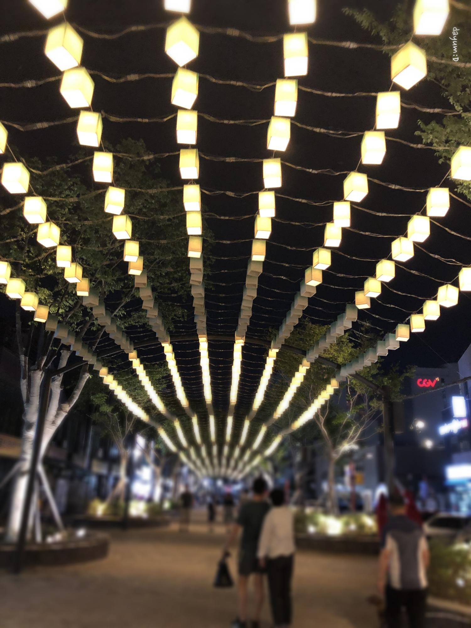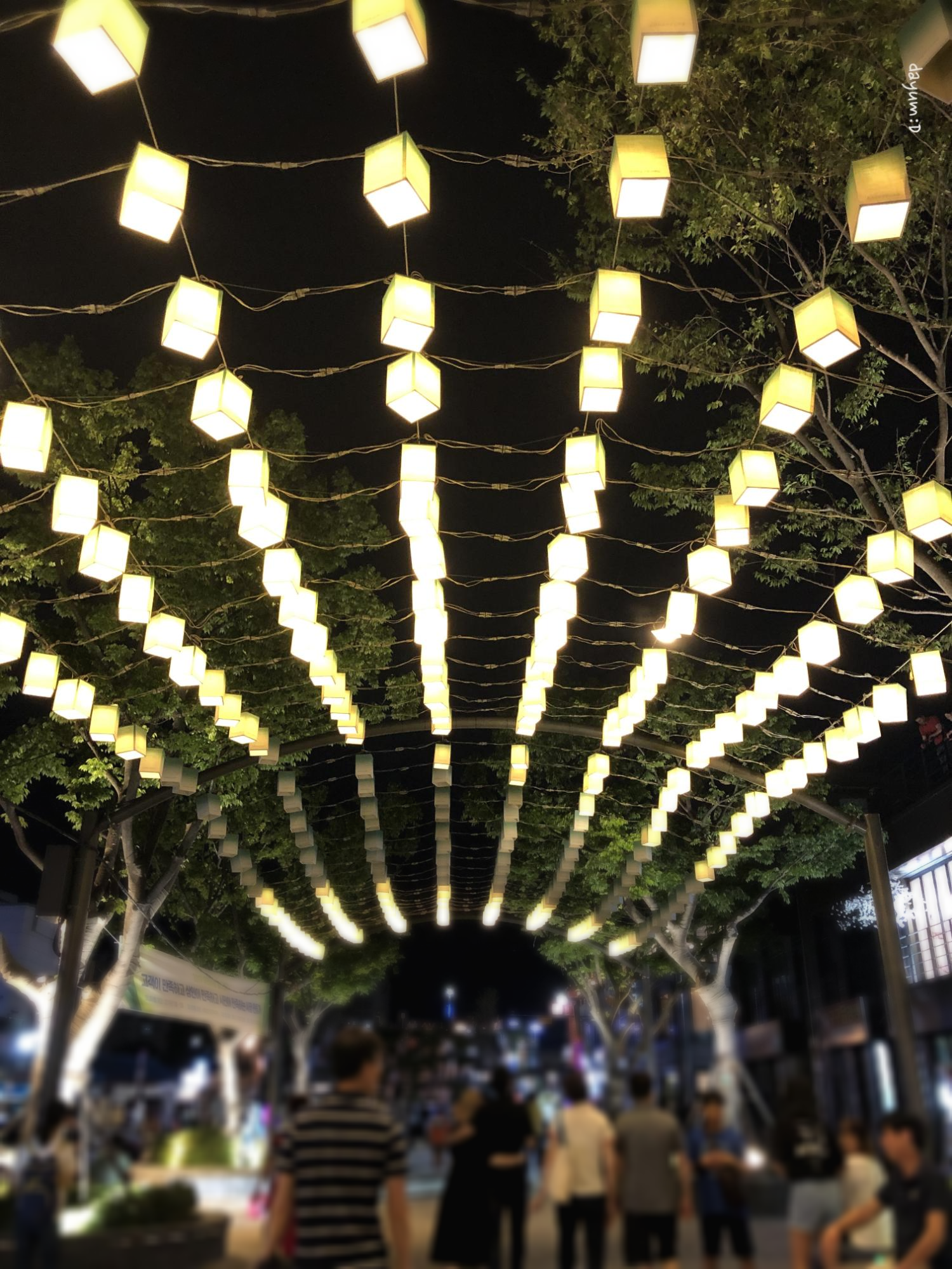 천장처럼 조성된 조명들이 깜빡이면서 물결을 만들고, 춤을 추고 너무 아름다웠다. 가던 길 멈추고 사진 찍는 사람들...
