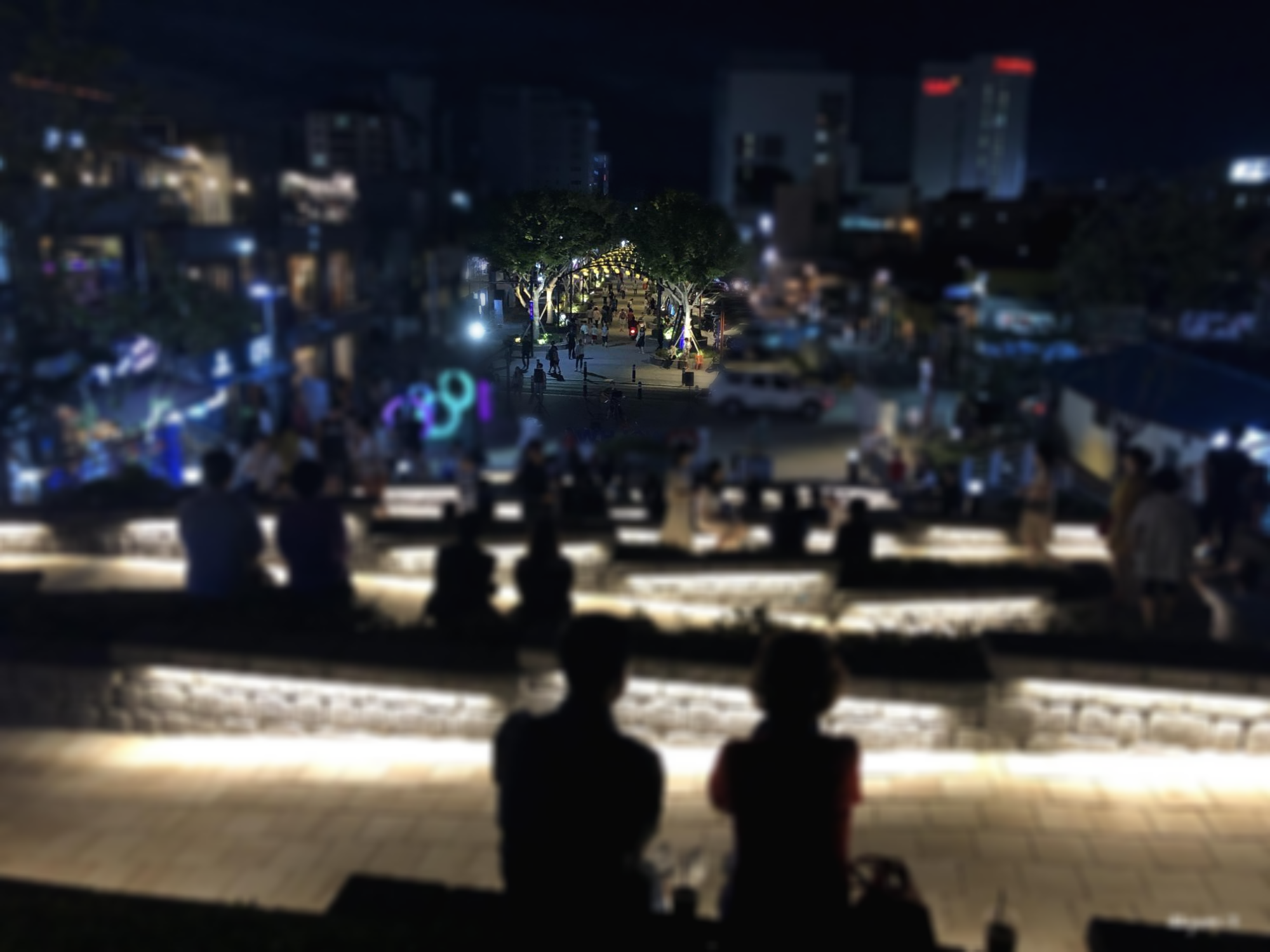 월화거리안에는 월화풍물시장? 이라는 것도 있었는데 먹거리 촌이 있었고, 곳곳에는 오체어라는 색이 계속 바뀌는 조명으로 된 의자도 있었당. 중앙시장과도 연결되어 있어서 중앙시장 구경도 했는데, 중앙시장 안에도 야시장이 있어서 군것질 하기에도 좋았다.