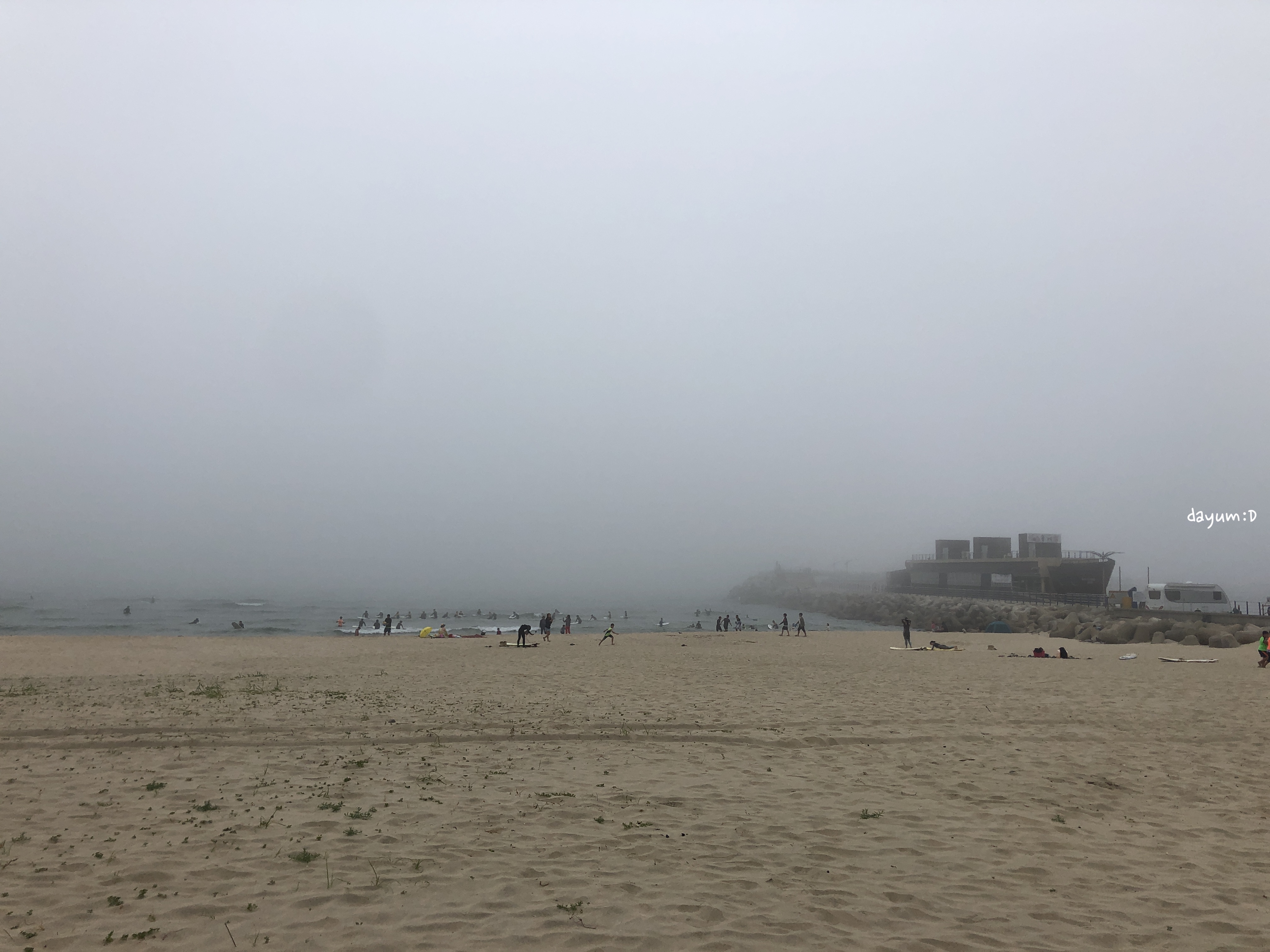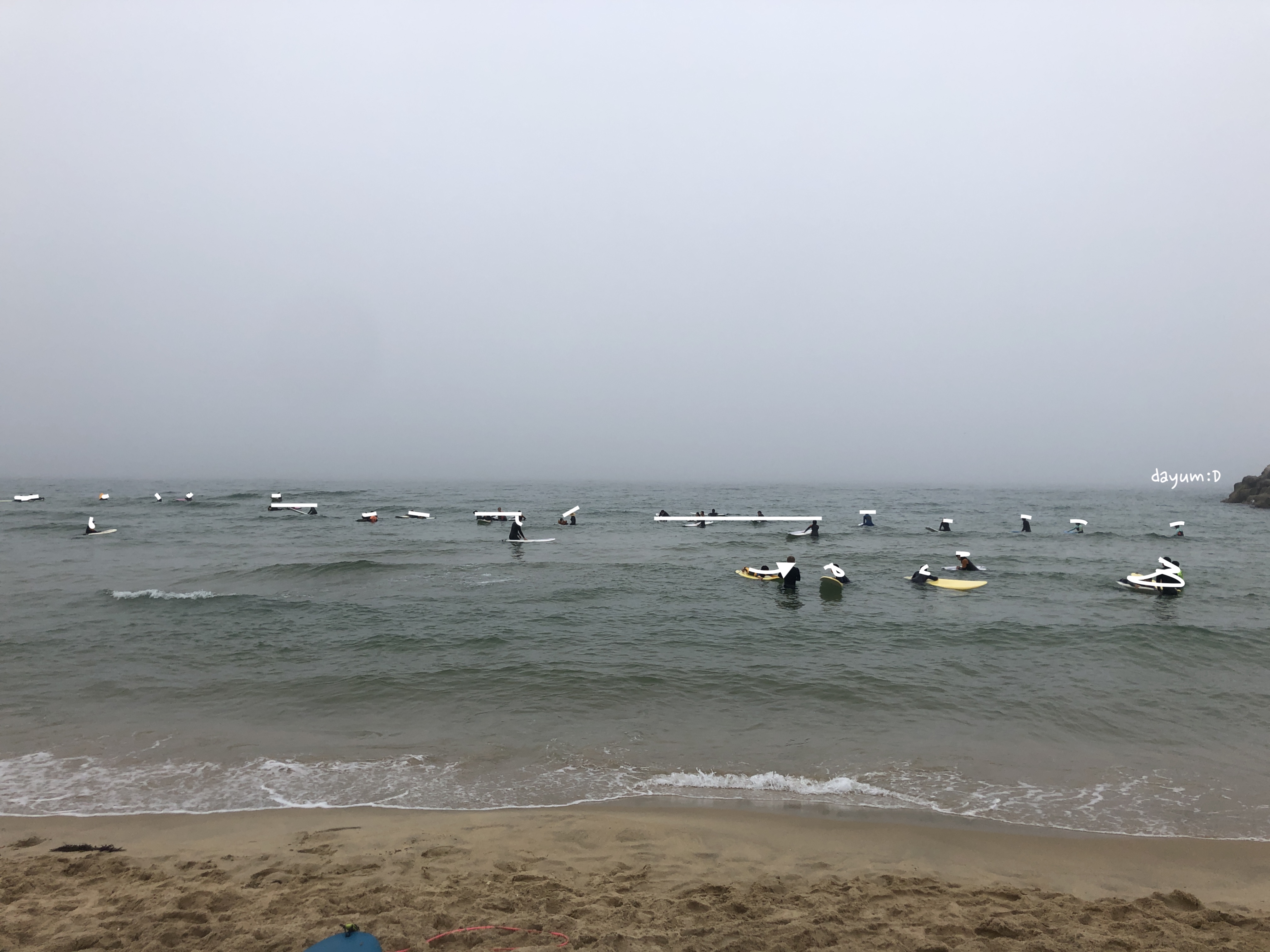 여긴 대진항에 있는 해변인데, 서퍼들이 많다. 서핑 강습도 받을 수 있는 곳이라서 사람이 끊임없었다.