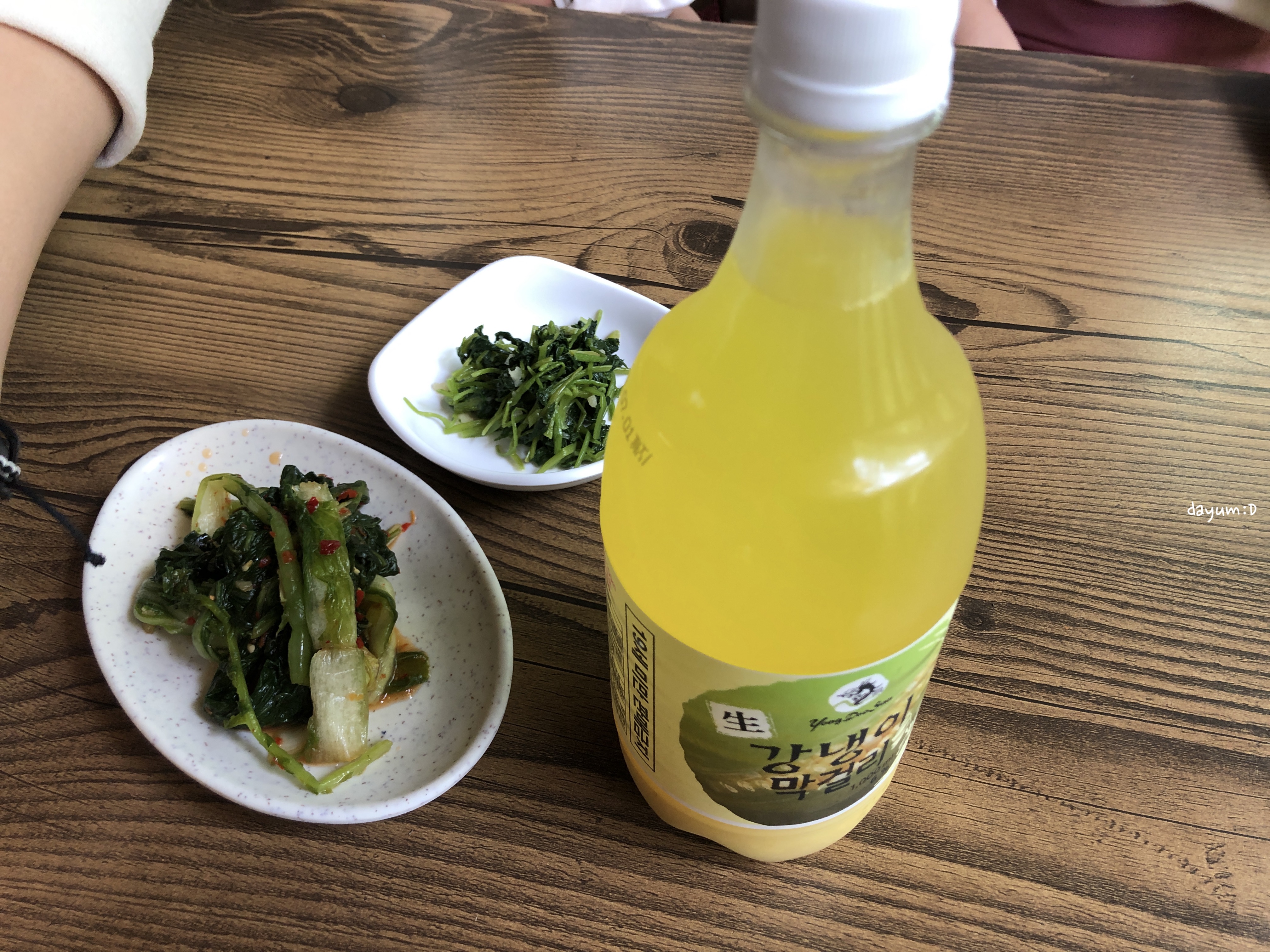 노란색의 옥수수 막걸리인데, 정말 맛있었다. 그런데 충북 제천에서 만들어짐ㅋㅋㅋㅋ 강원도까지 멀리 오셨네여.
