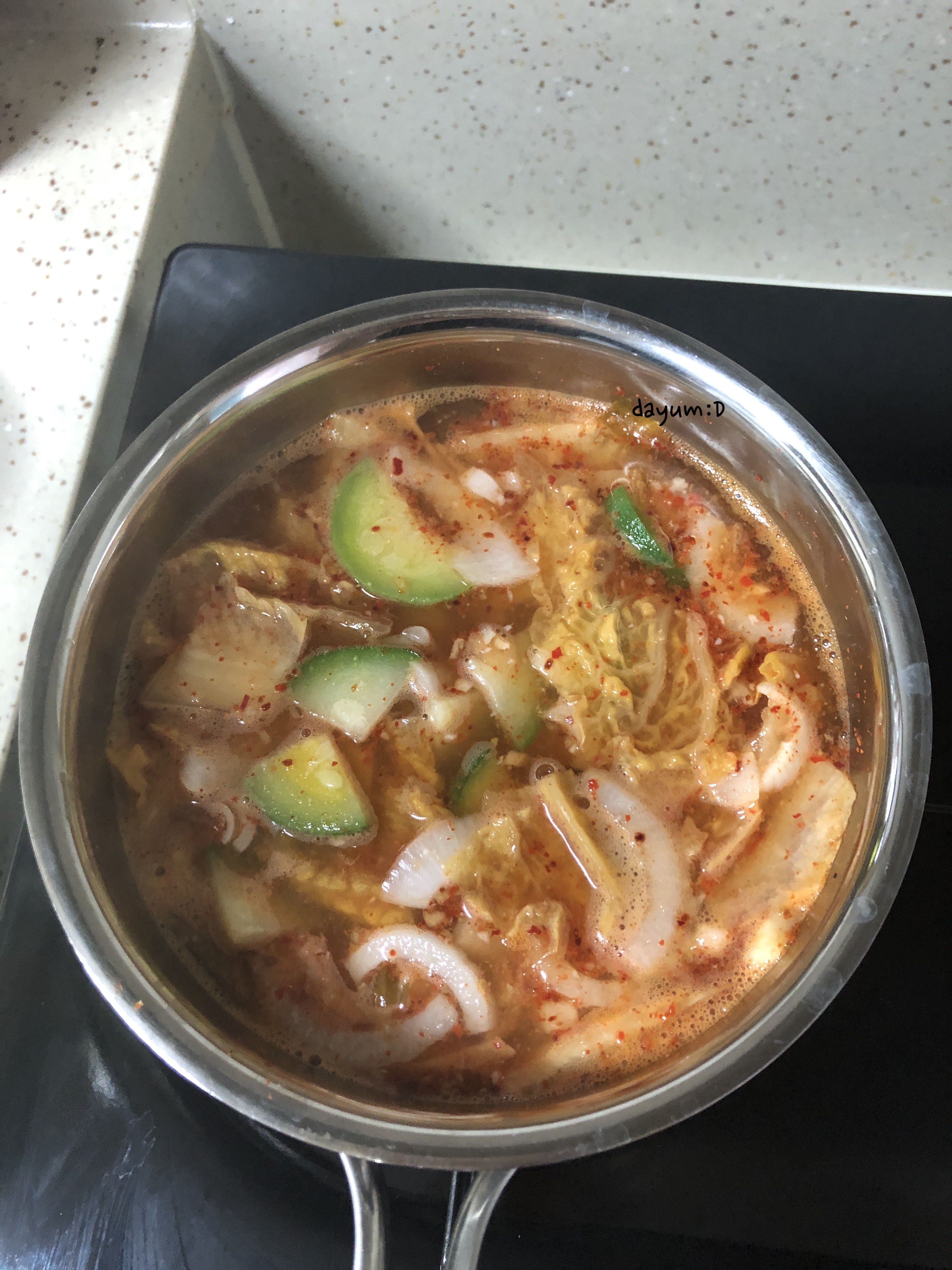 묵은지와 각종 야채 넣고 끓이다가 마늘과 청양고추 팍팍 넣었다. 수제비는 콩국수 해먹고 남은 밀가루 반죽으로 만들어 넣었다. 크으. 역시 비오는 날은 국물이지.