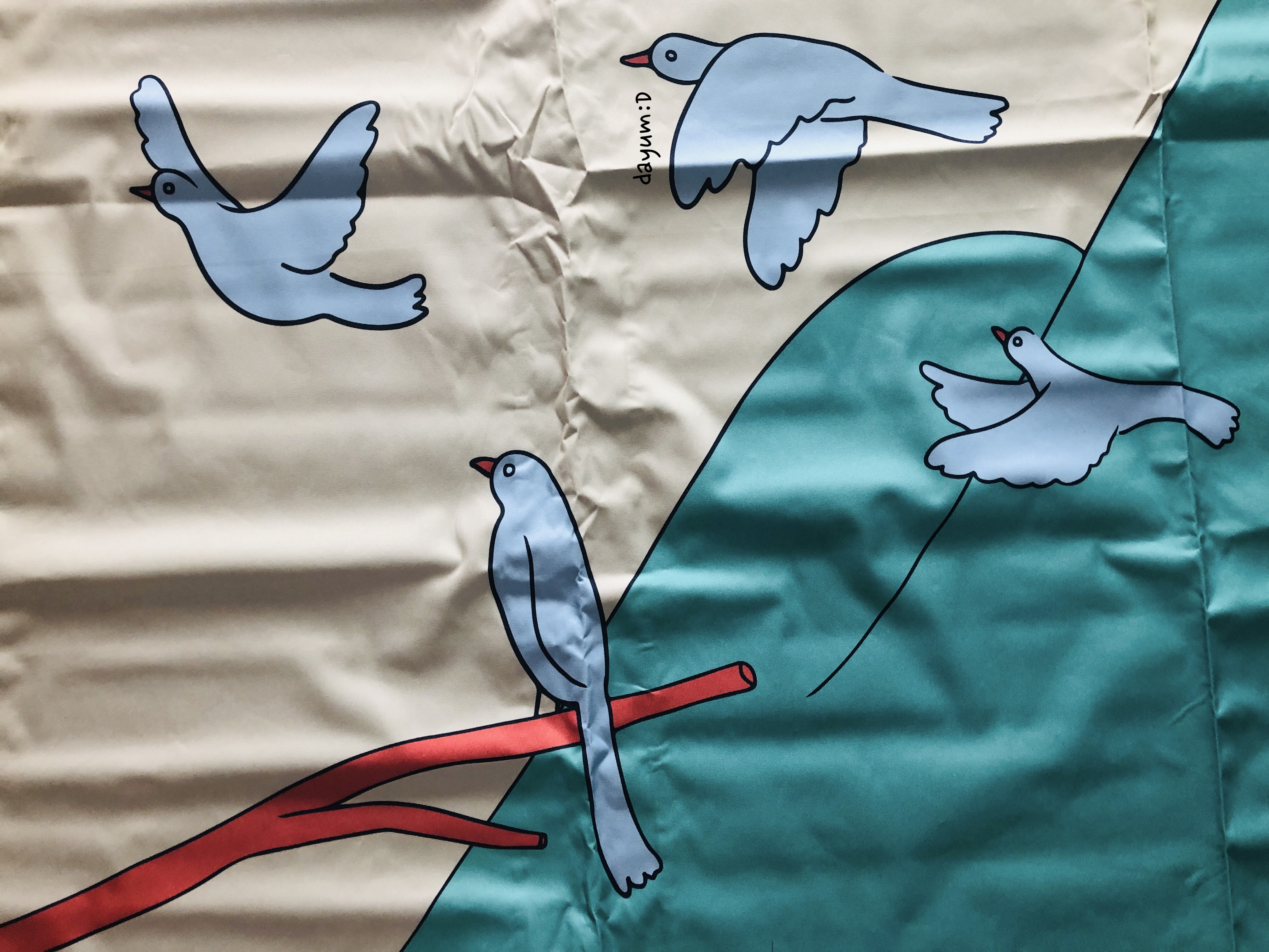 키미앤일이의 귀여운 새 프린트, 피크닉 테이블 세트와 같은 컨셉이다.