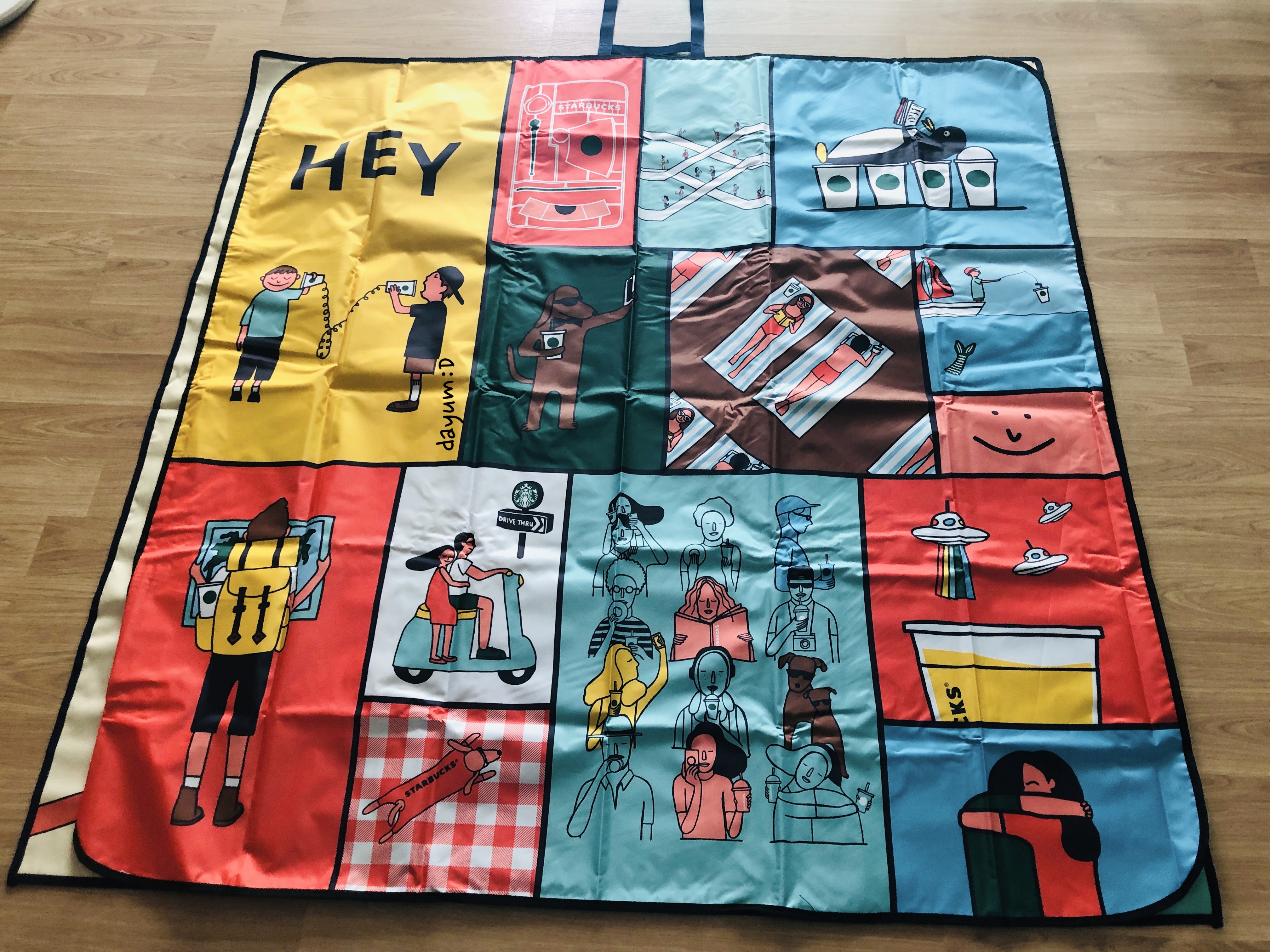 이번에는 작년 스타벅스 섬머 이프리퀀시때 받은 피크닉 매트와 비교를 해보았다.