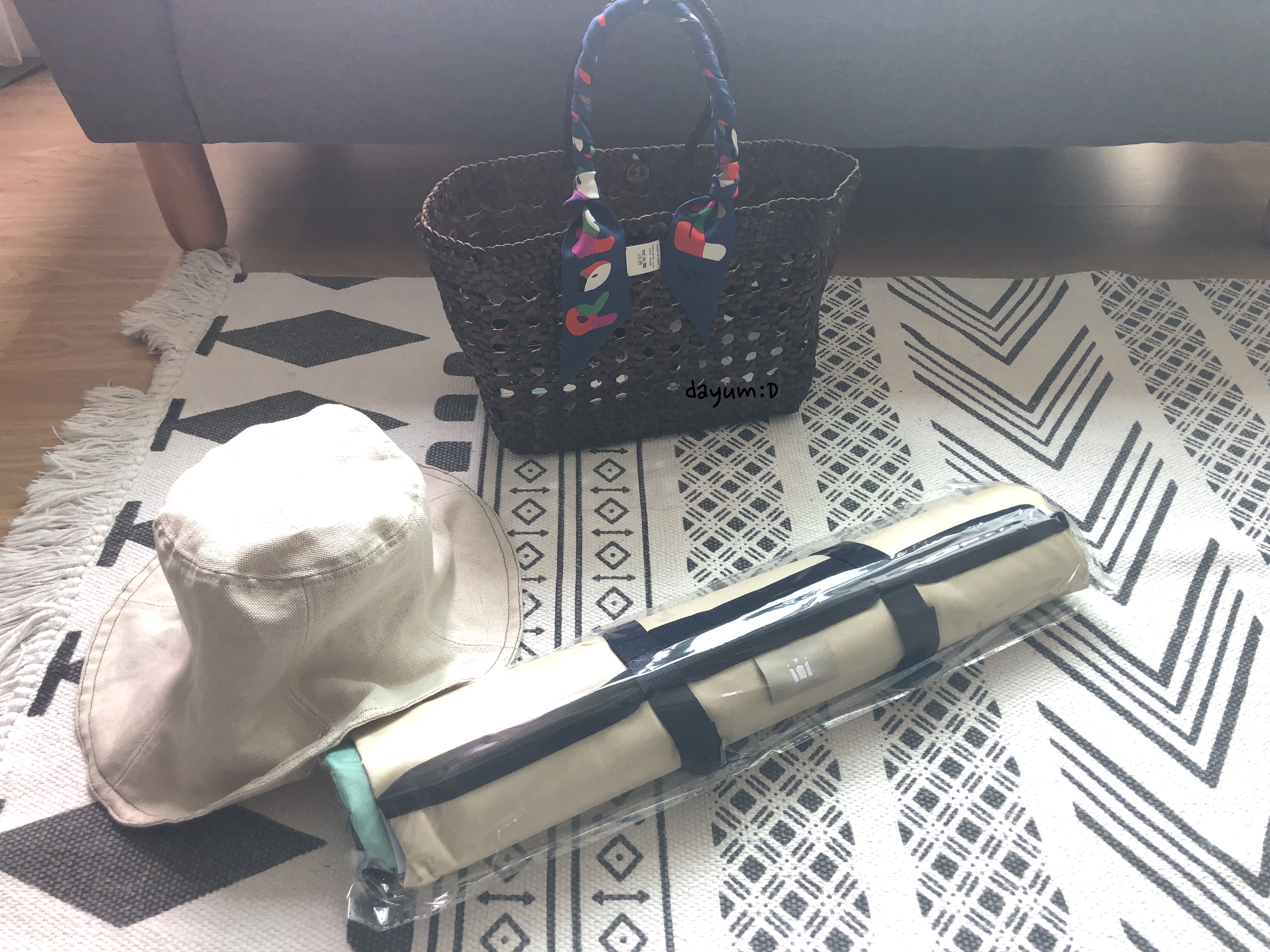 햇빛이 강해서 sjsj클로쉐 쓰고 드래곤백 캐내지에 피크닉 매트 낑겨넣고 왔당.