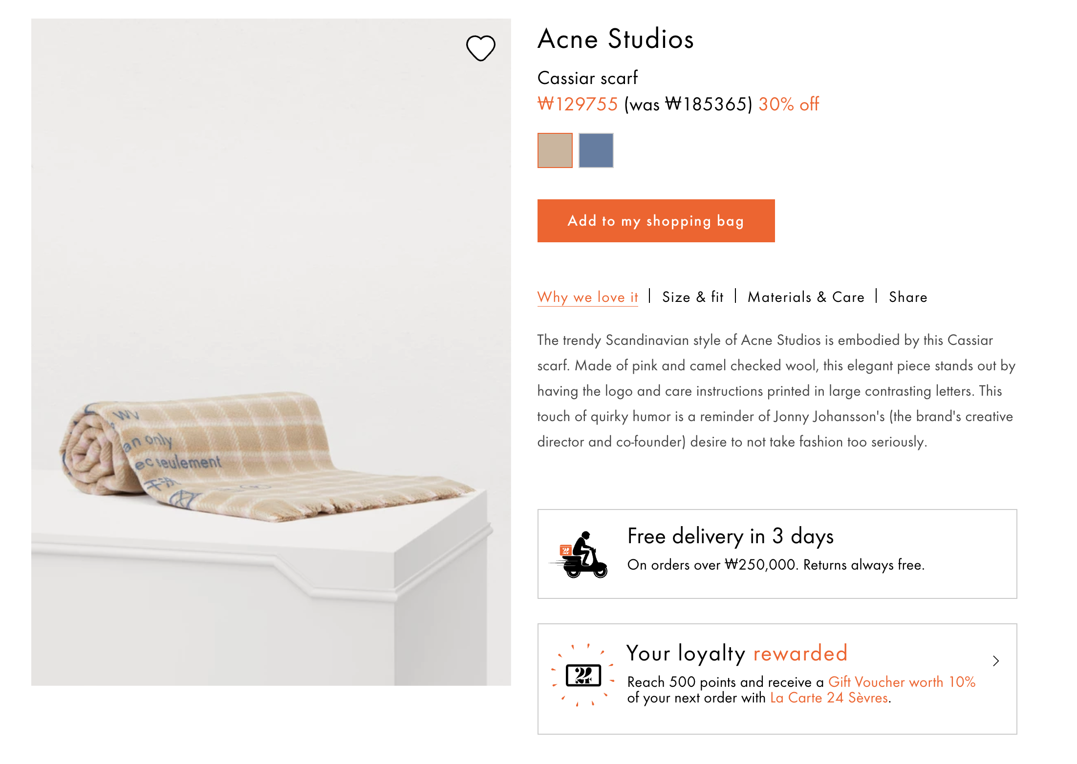 앗, 민트 체크 버전 마이테레사에서 추가 20프로 해서 86.4유로에 지금 무료배송! 가격자체는 마이테레사가 좋음!