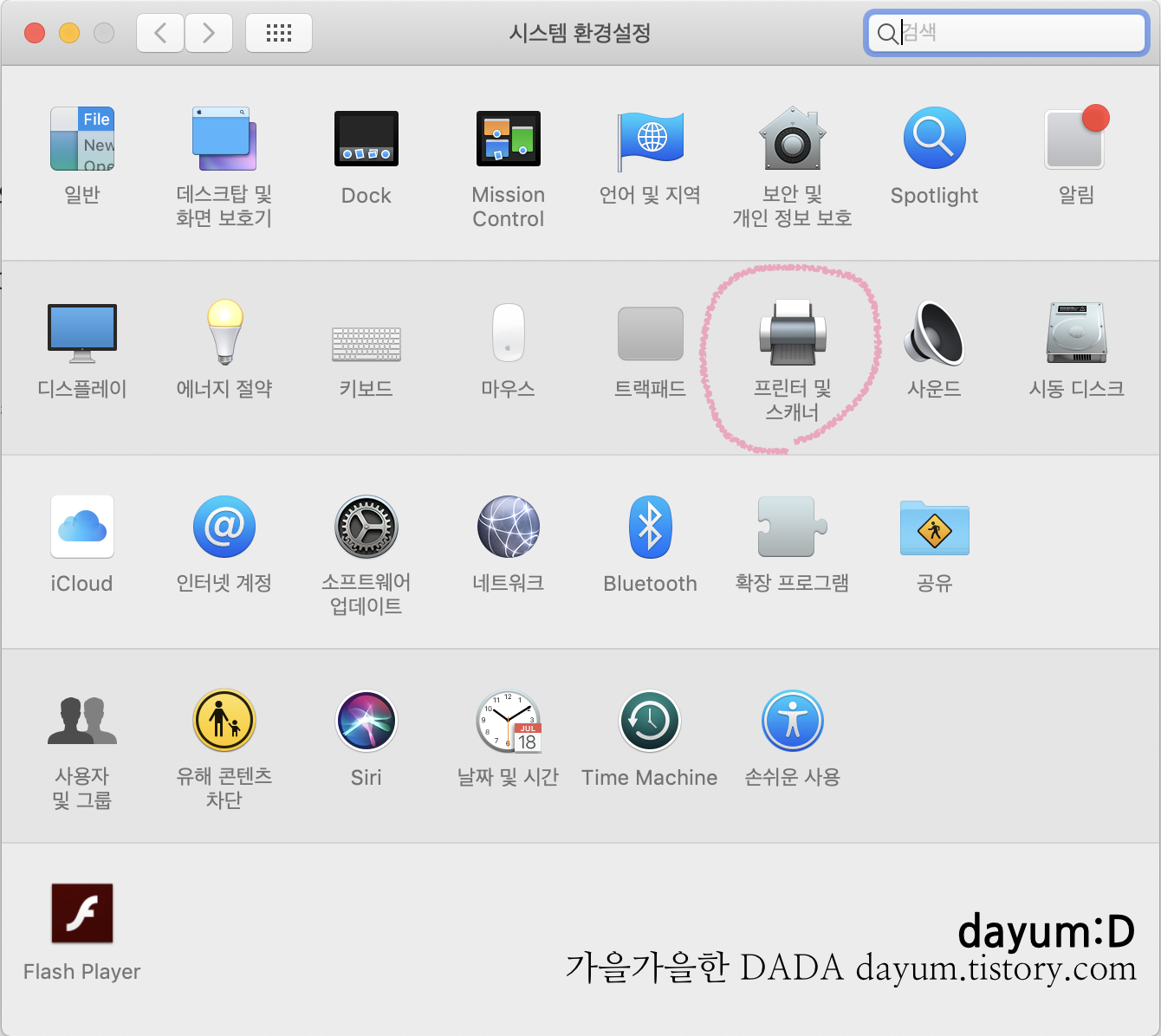 1. 시스템 환경설정에서 프린터 및 스캐너에 들어가서