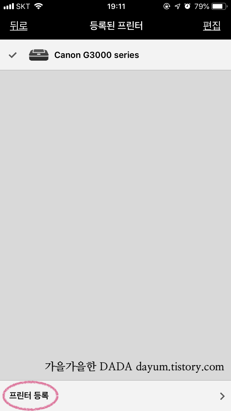 3. 프린트 등록을 누르면 캐논 G3000이 뜨는데 요걸 누르면 끝. 아래는 내가 이미 연결한 뒤에 캡쳐한거라 뜸