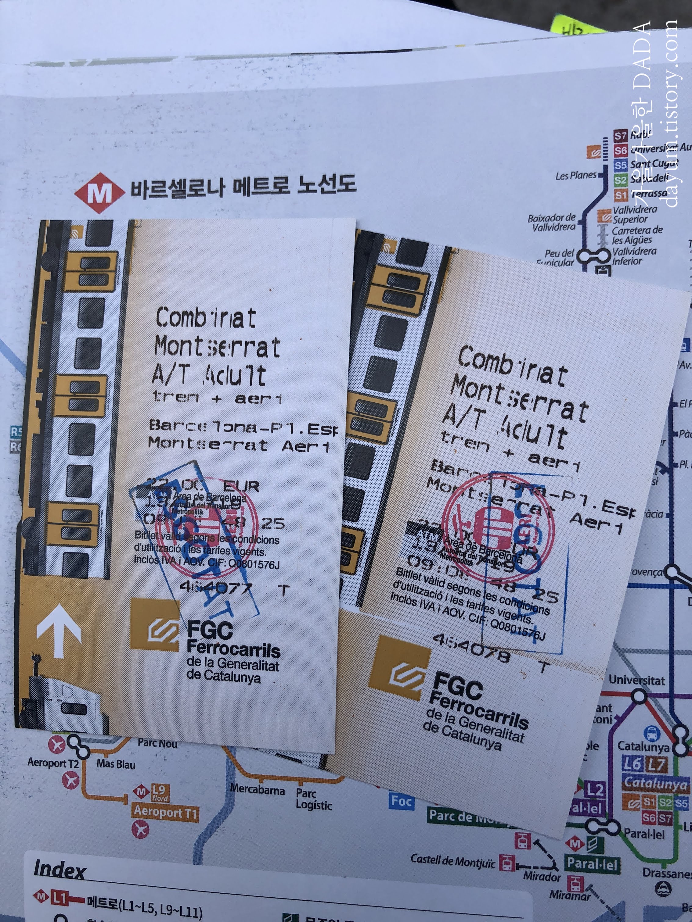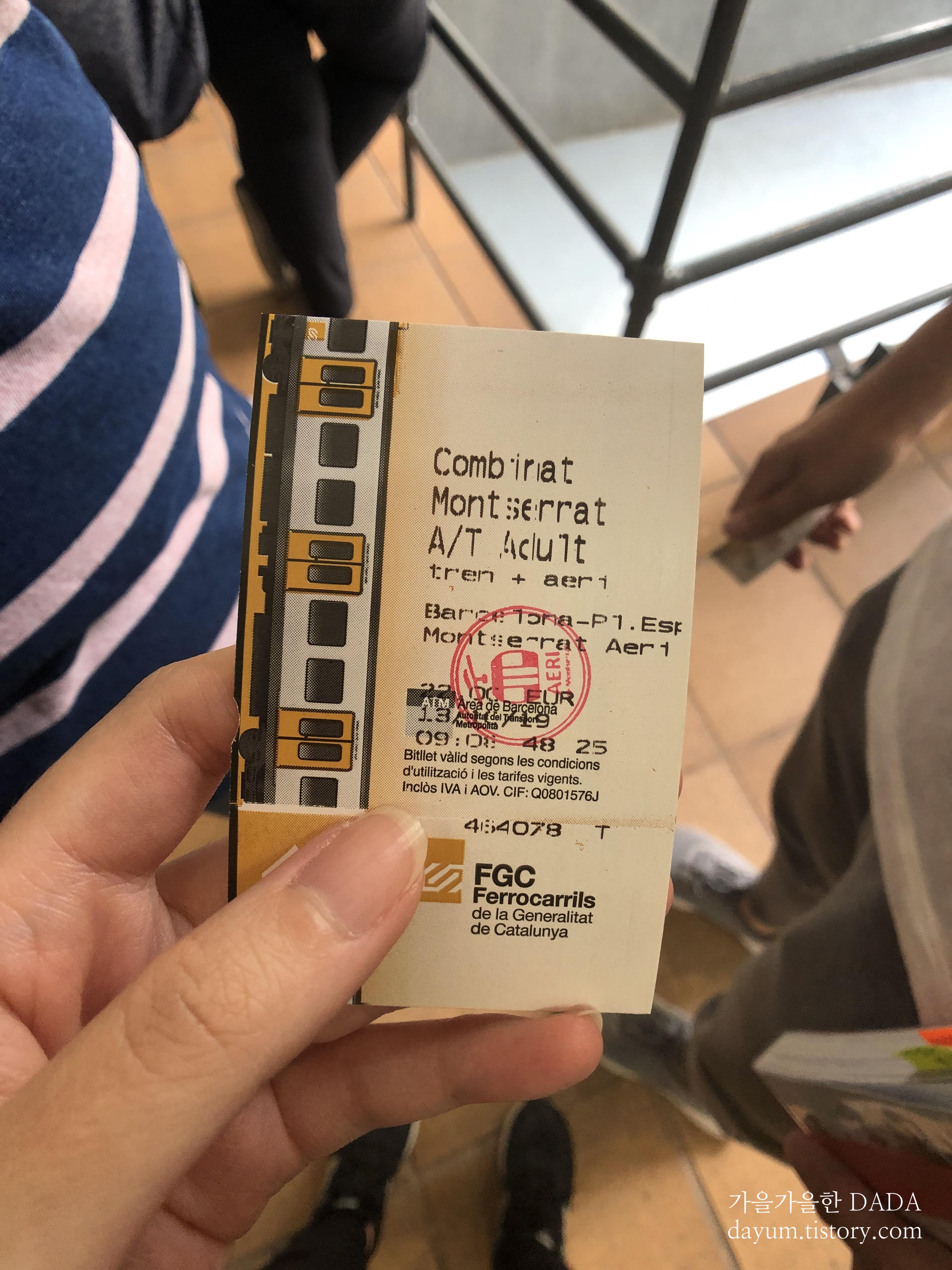 기계에서도 여러 패키지를 구매 할 수 있는데 몬세라트행 기차와 케이블카 패키지를 구입했다.