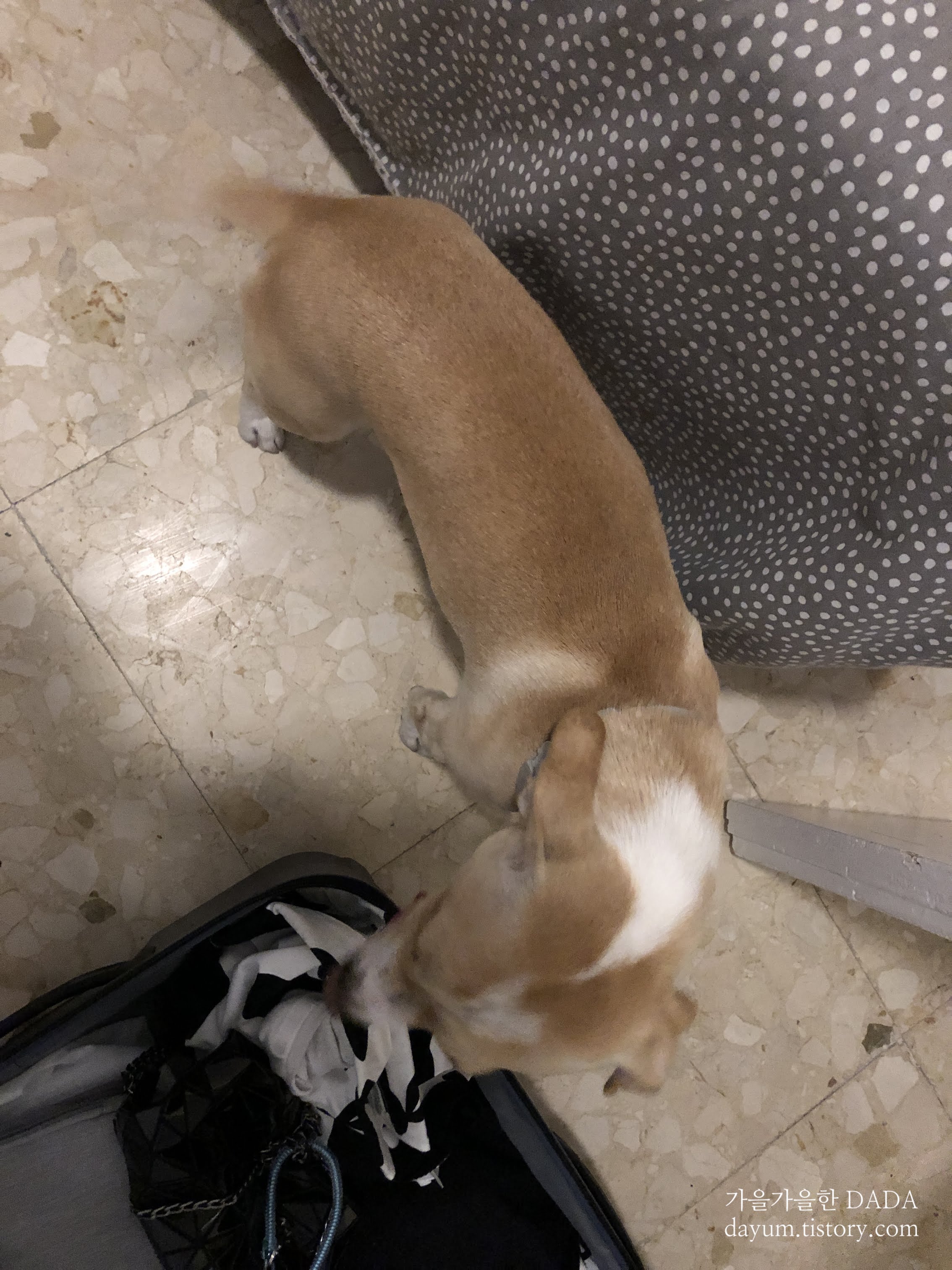 짐 풀었더니 짐 검사하는 댕댕씨. 너무 귀여워요!