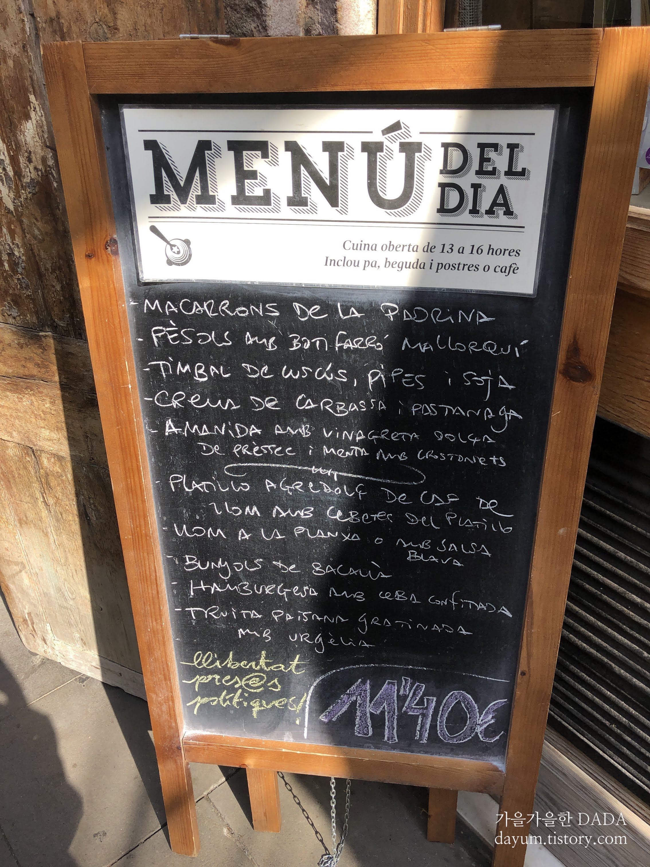 식당이름은 terra d'escudella 카탈루냐식 요리가 나온다고 했고, 메누 델 디아를 먹었다. 1시에 갔는데 조금 더 늦게 갔으면 자리가 없었을 것 같다.