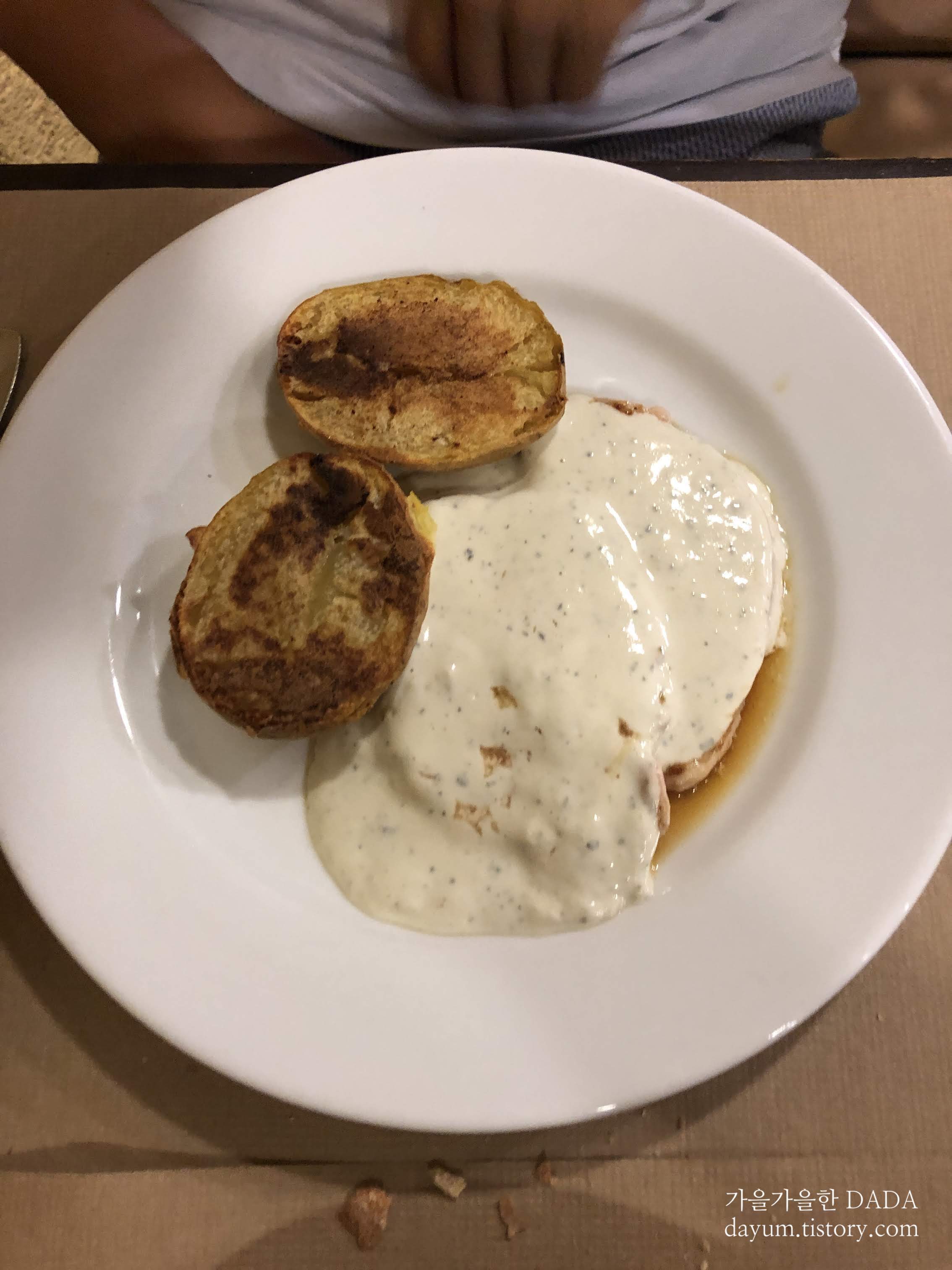 식전빵과 음료(물, 맥주, 와인 등등) 포함, 전채요리, 메인요리, 디저트(아이스크림, 차, 커피) 까지 해서 1인당 11.4유로다.