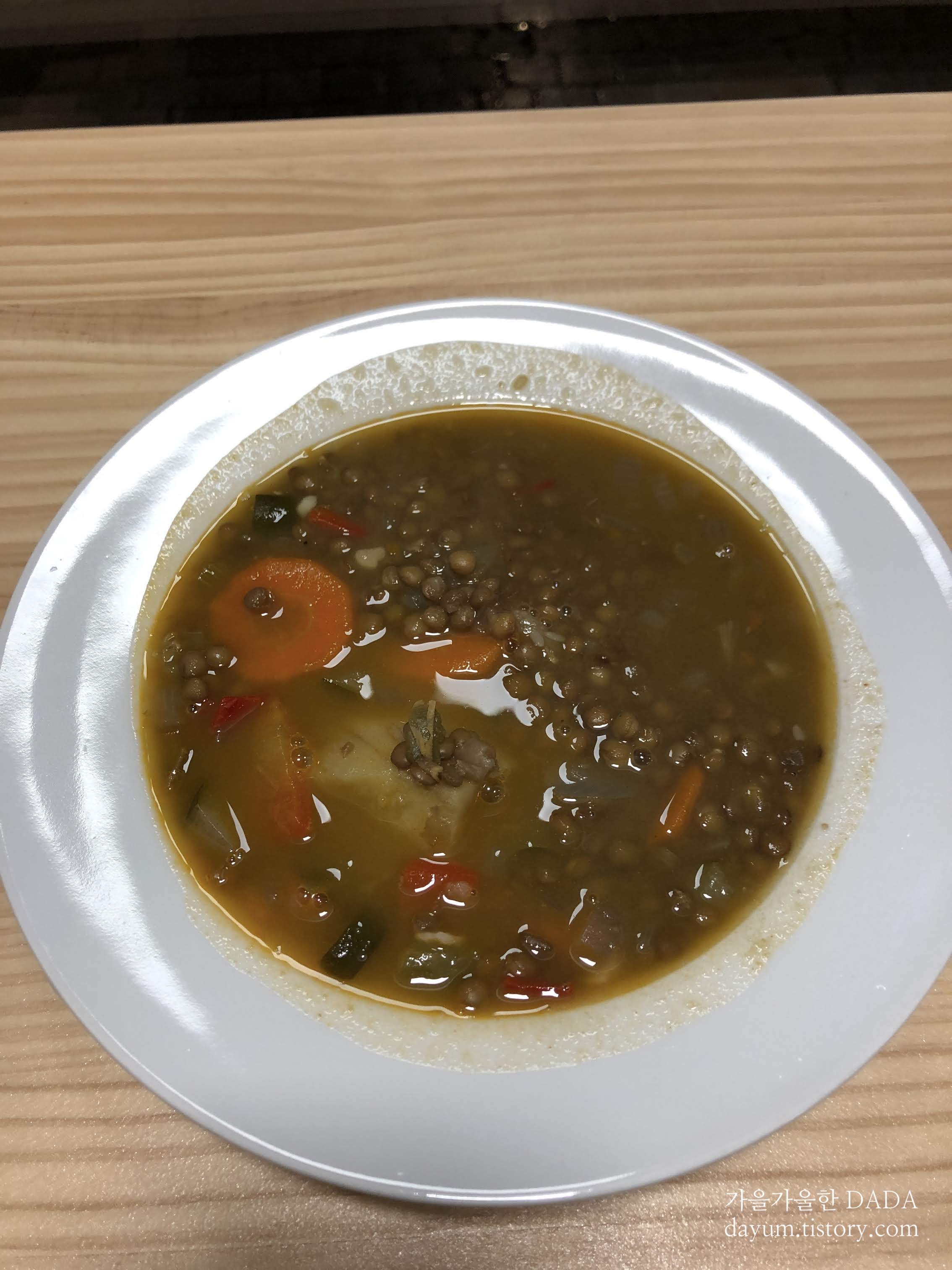 우린 간단히 렌틸 콩이랑 밥과 고기를 먹었는데 배고파서 정신없이 먹느라 렌틸 콩 수프만 사진이 있다.ㅎ