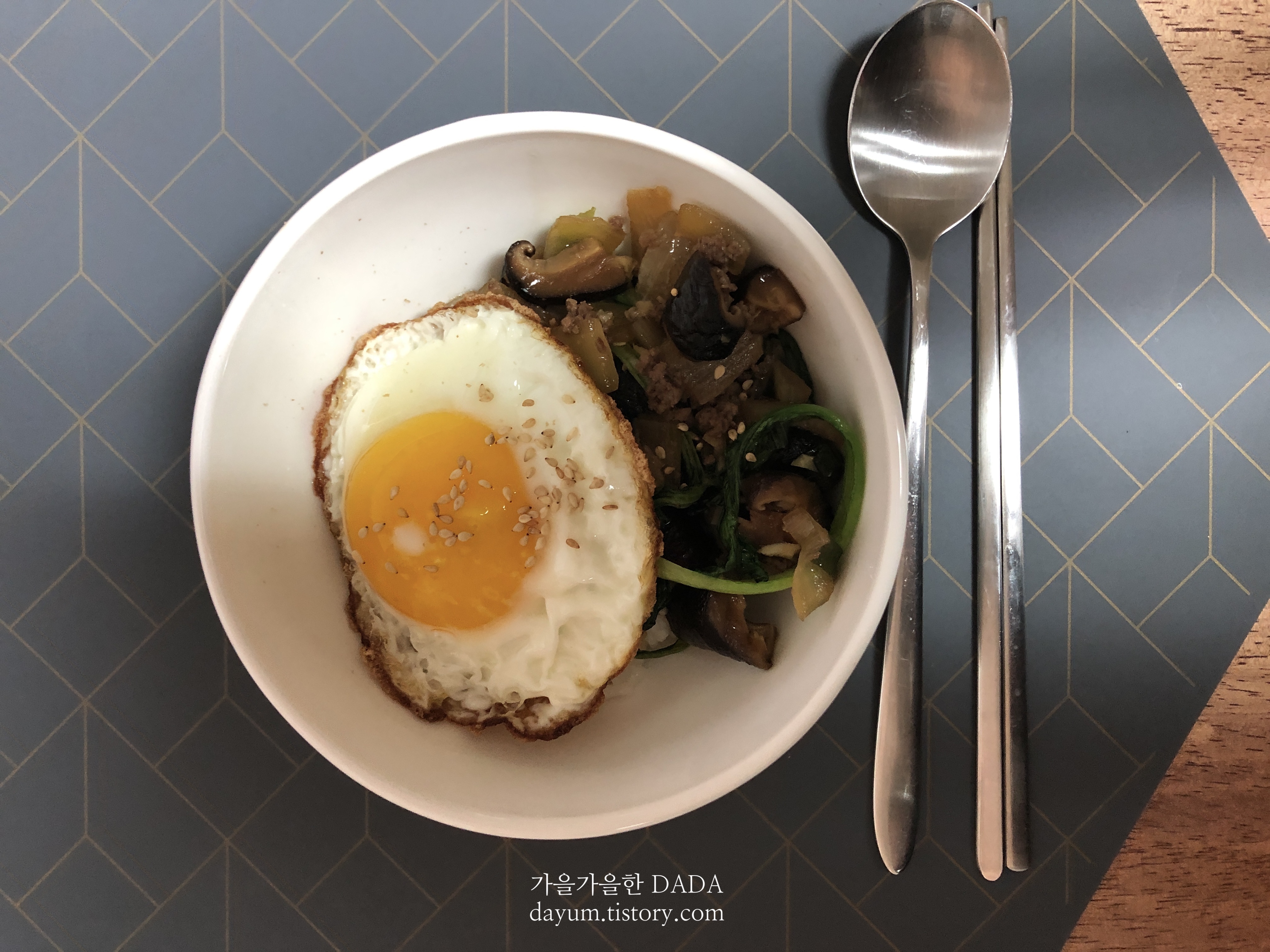 집에 돌아와서 먹은 표고버섯 덮밥.