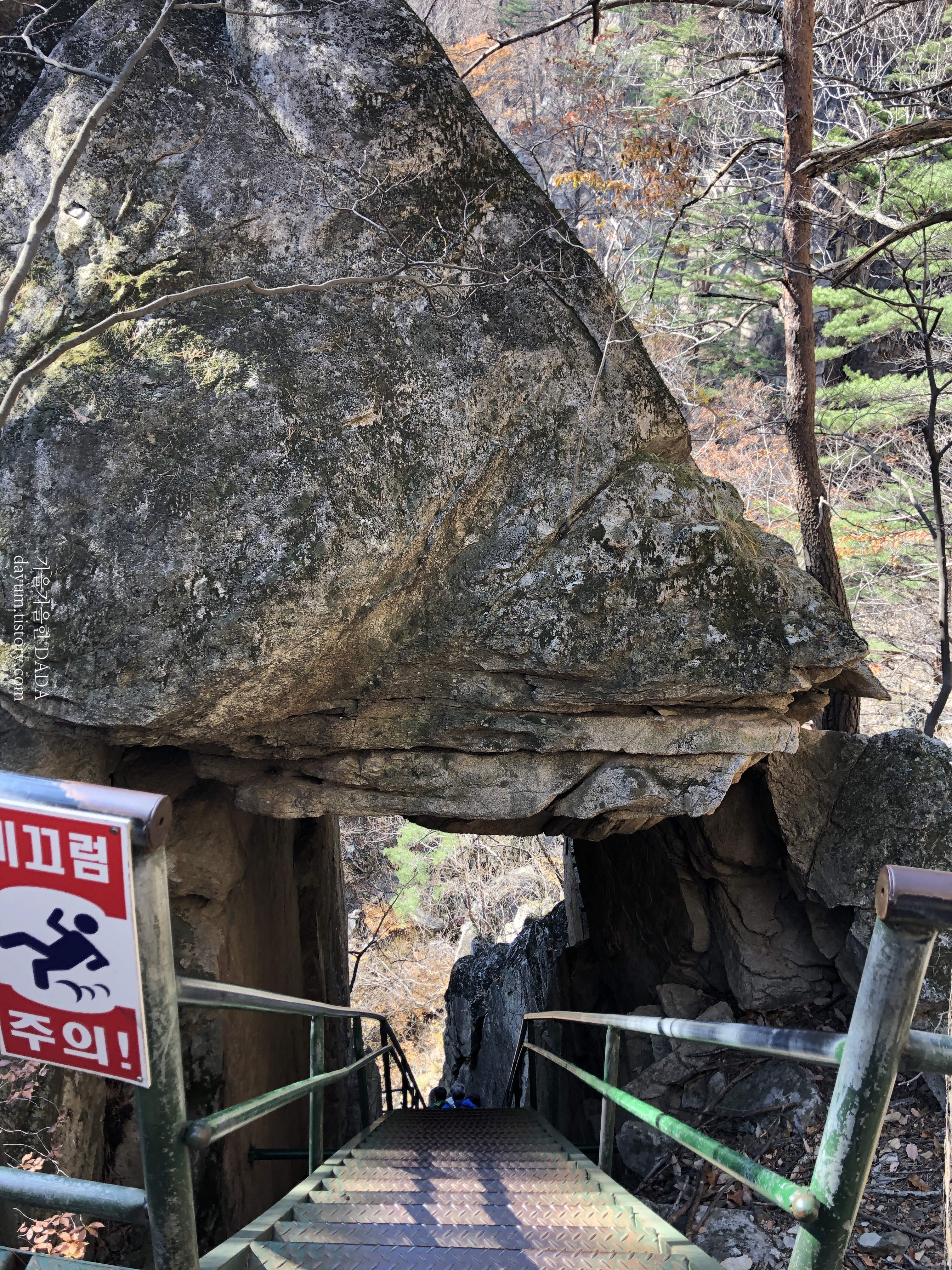 관음암까지는 매표소에서 1.1km정도 되는데, 문제는 엄청난 계단과 줄 잡고 바위 내려가기 코스가 있다. 관악산이야 모야 ㅋㅋ 관악산에서 줄잡고 너무 무서워서 현실도피 하고 싶었는데 여기서도 느낄줄이야. 이게 꿈이었음 싶은 코스가 있었다 ㅎ