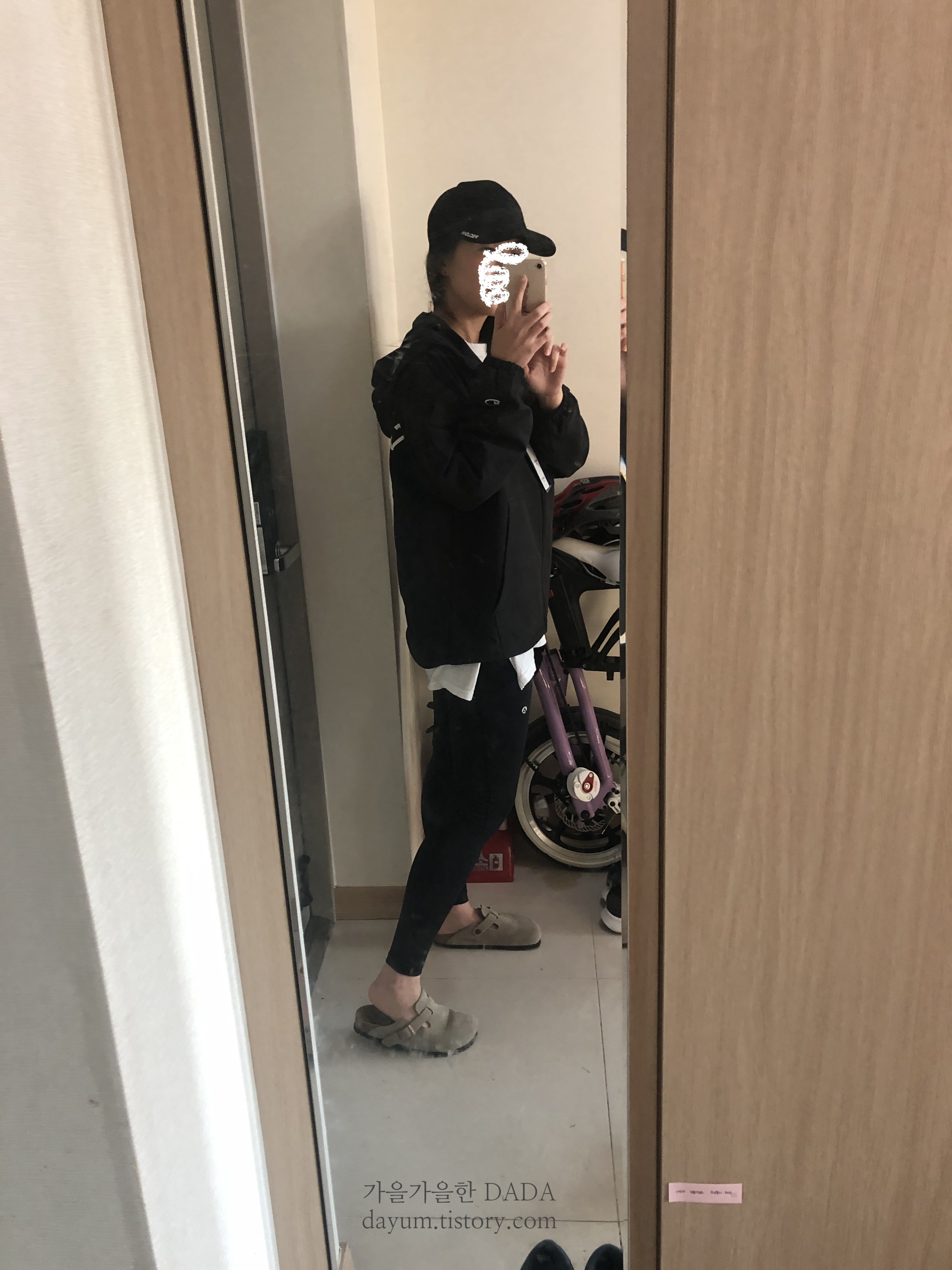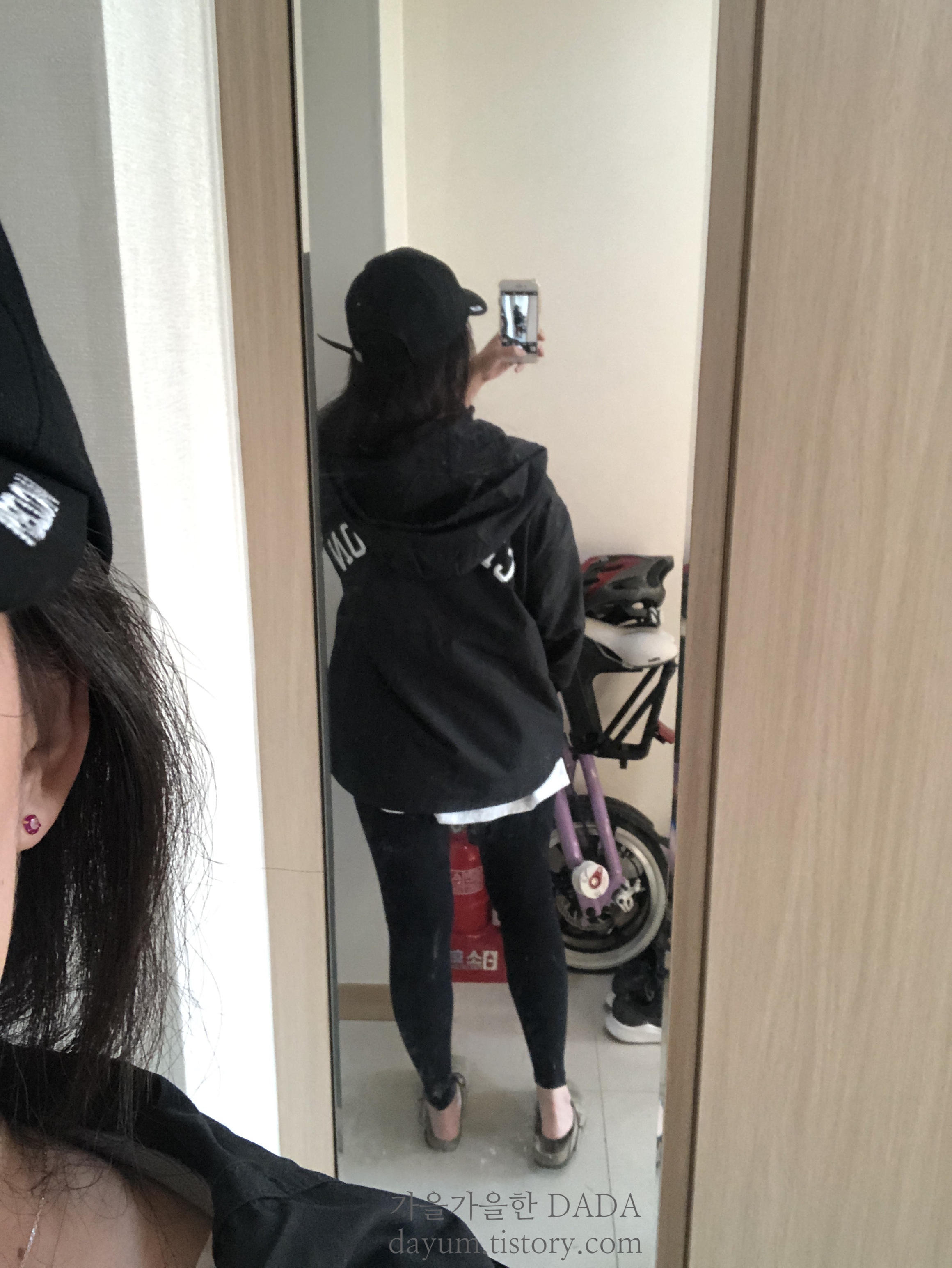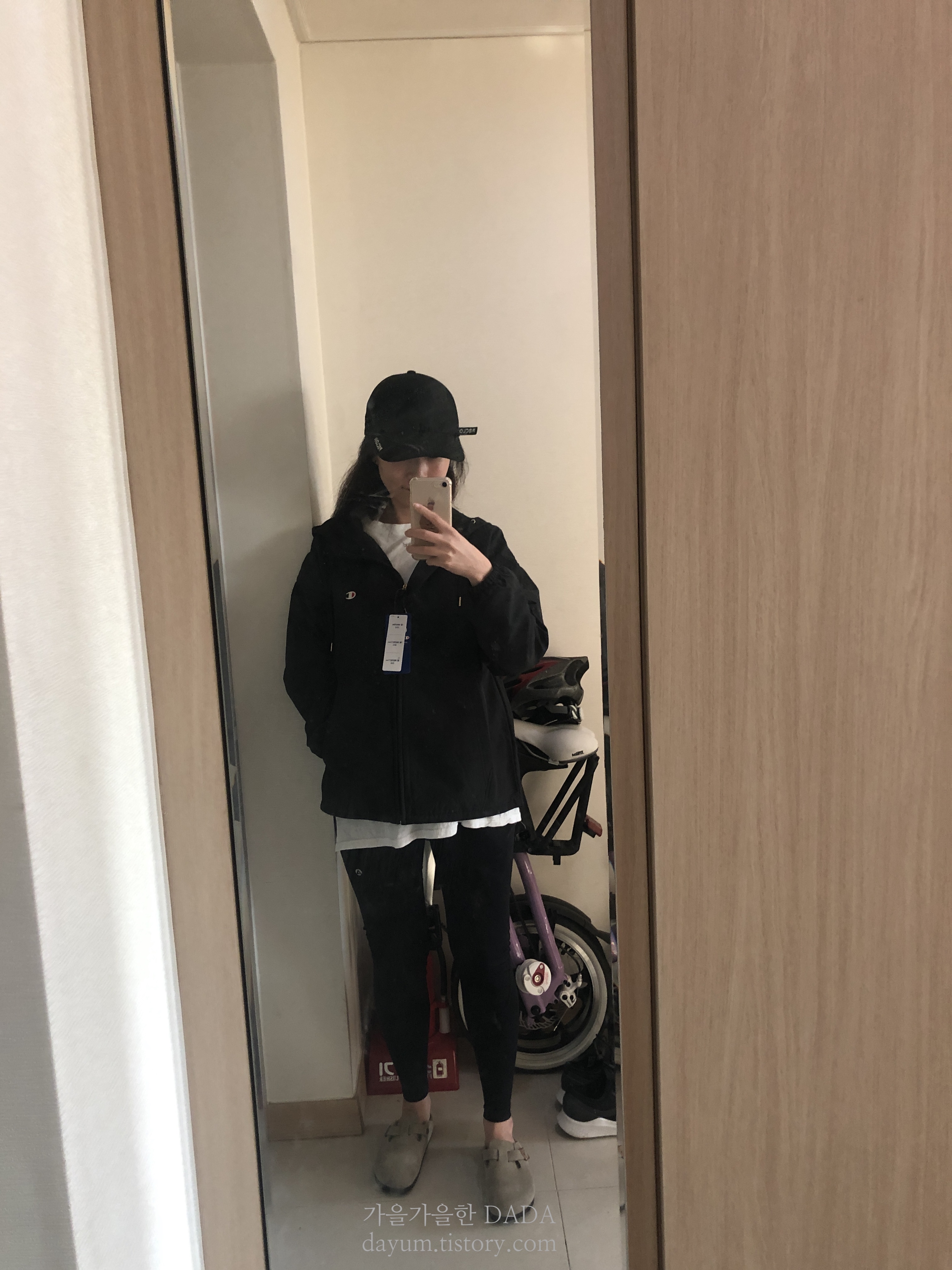 후드를 입으면 두꺼워서 기장이 짧아지긴 하는데 부담스러울 정도가 아니어서 입기 괜찮고, 더 추워지면 안에 경량패딩조끼까지 입으면 될 것 같다.