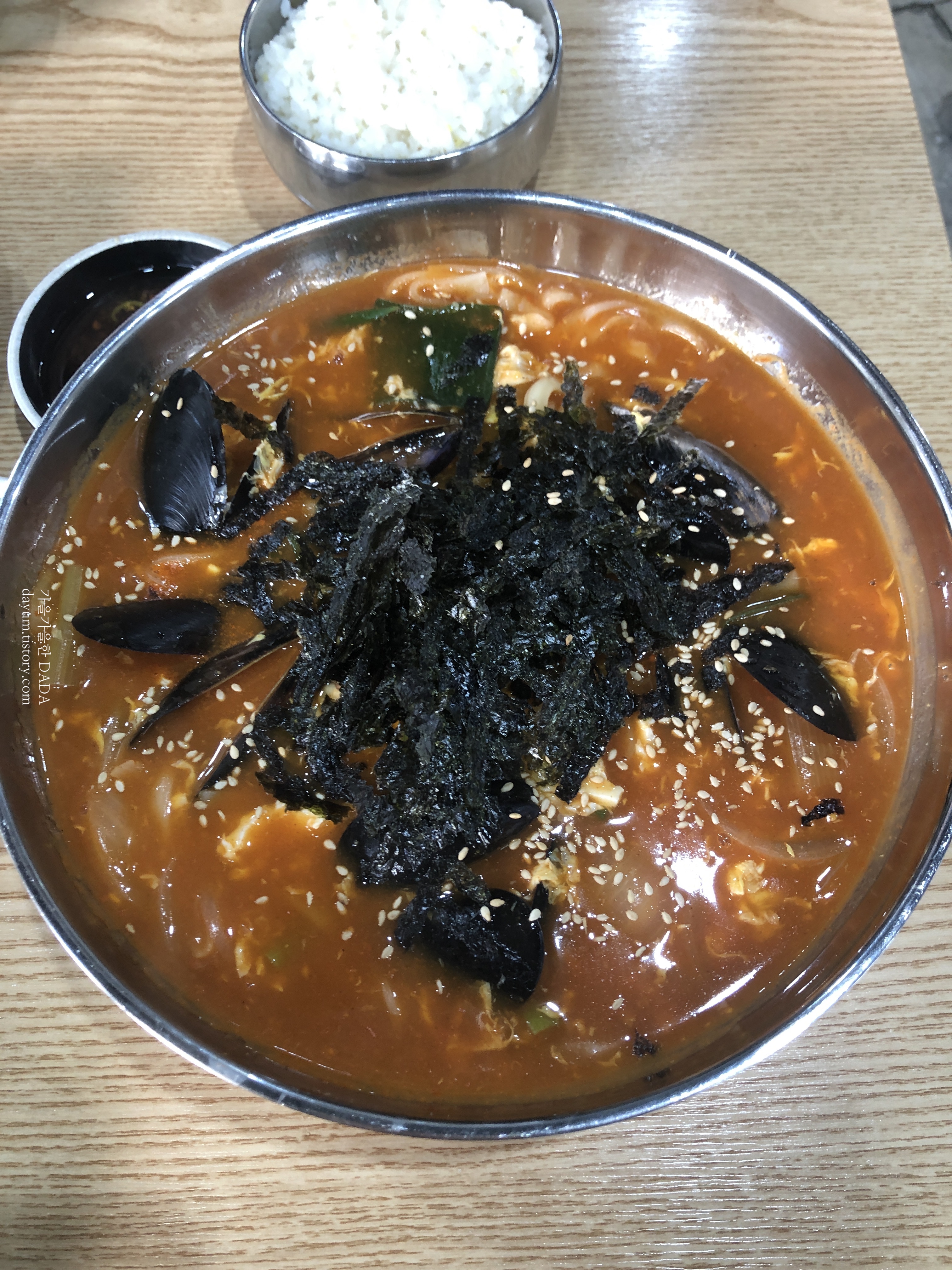 우린 홍합장칼국수와 뼈해장국을 주문했당.
