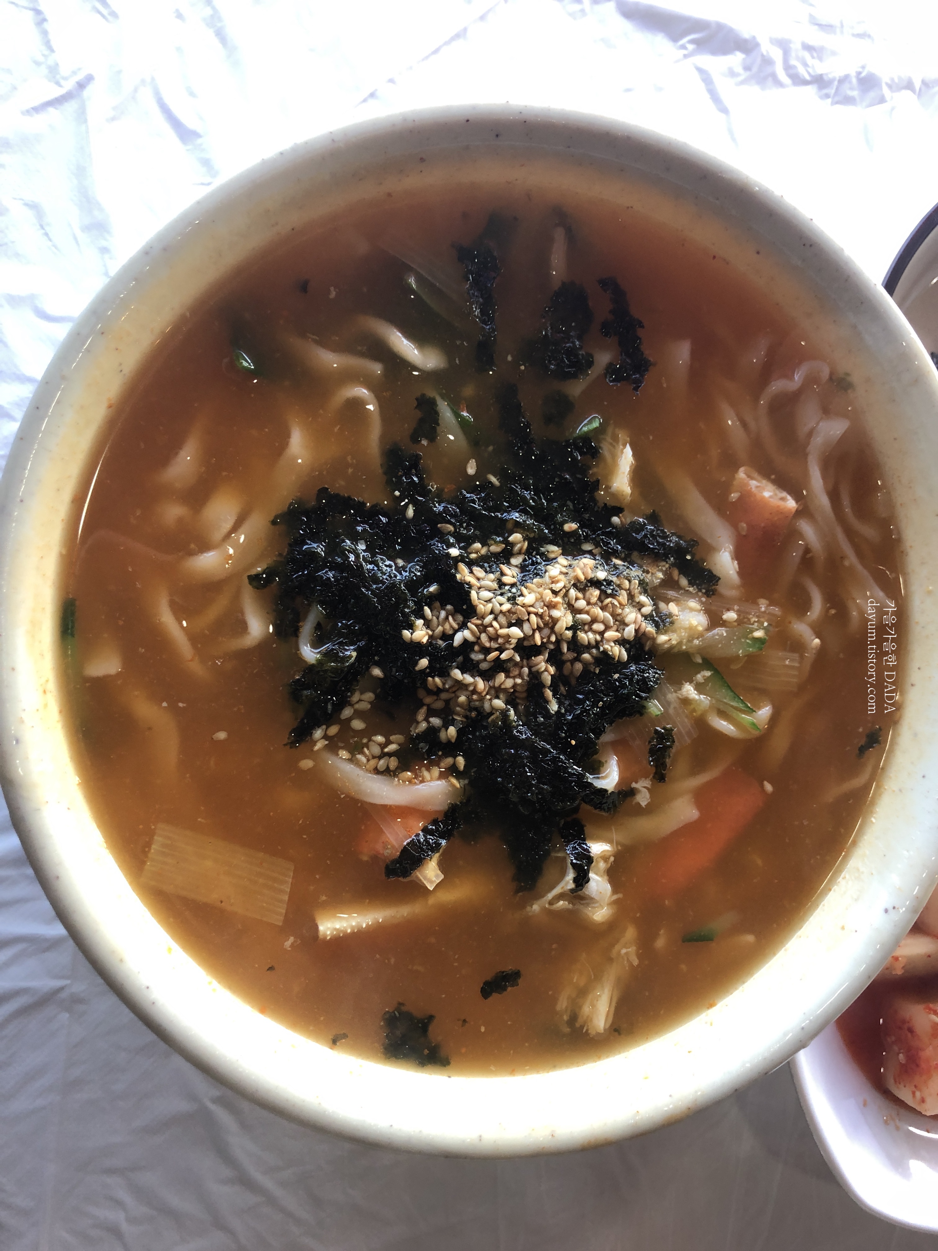장칼국수라서 진하고 달달한 국물맛이 아주 끝내줌 ㅋㅋ 밥 말아 먹었는데 진짜 맛있었다.