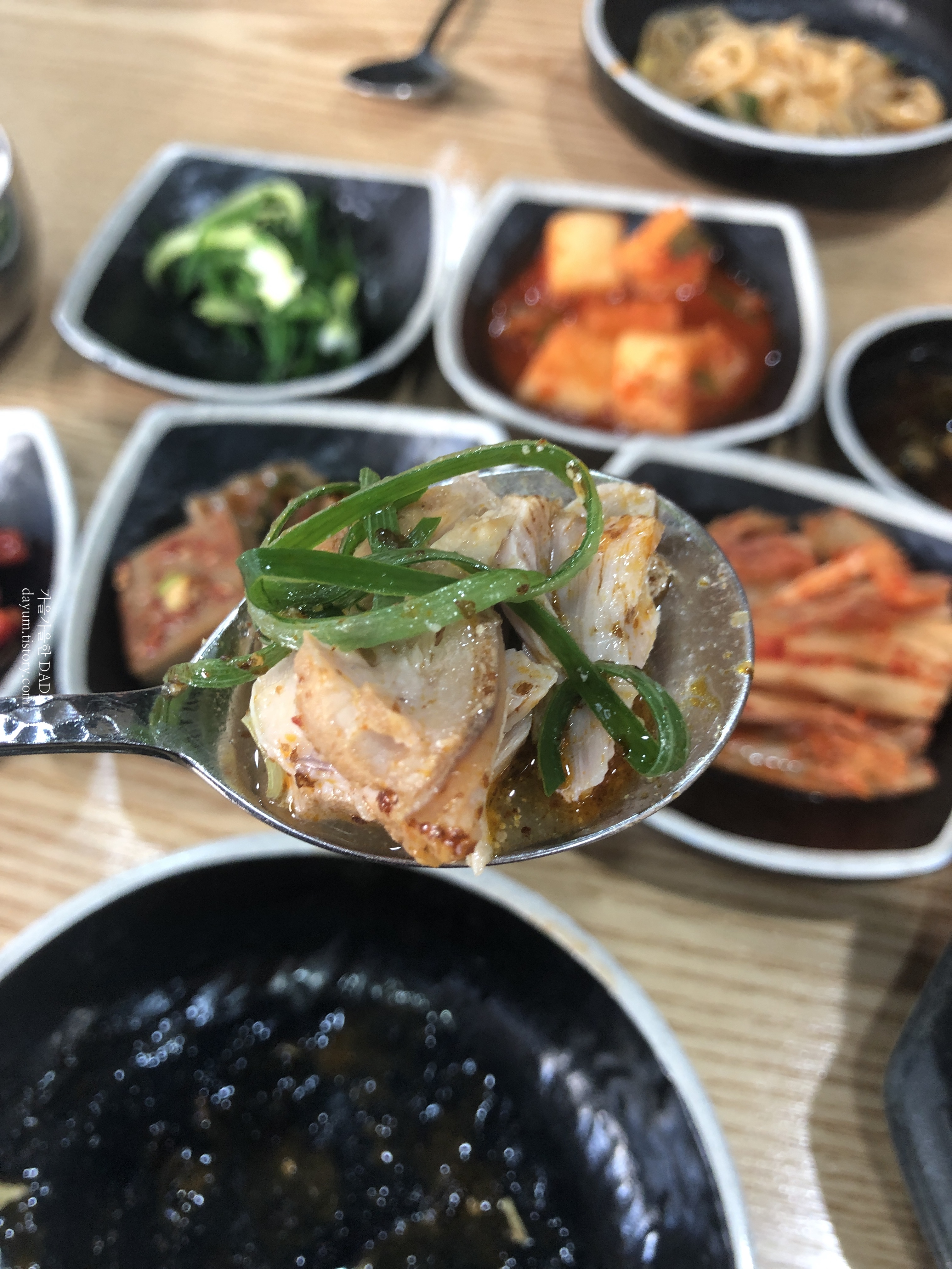 대게 다리가 생각보다 많이 들어있었는데 게탕은 좋아하지만 게는 좋아하지 않는 나는 남편에게 줌.