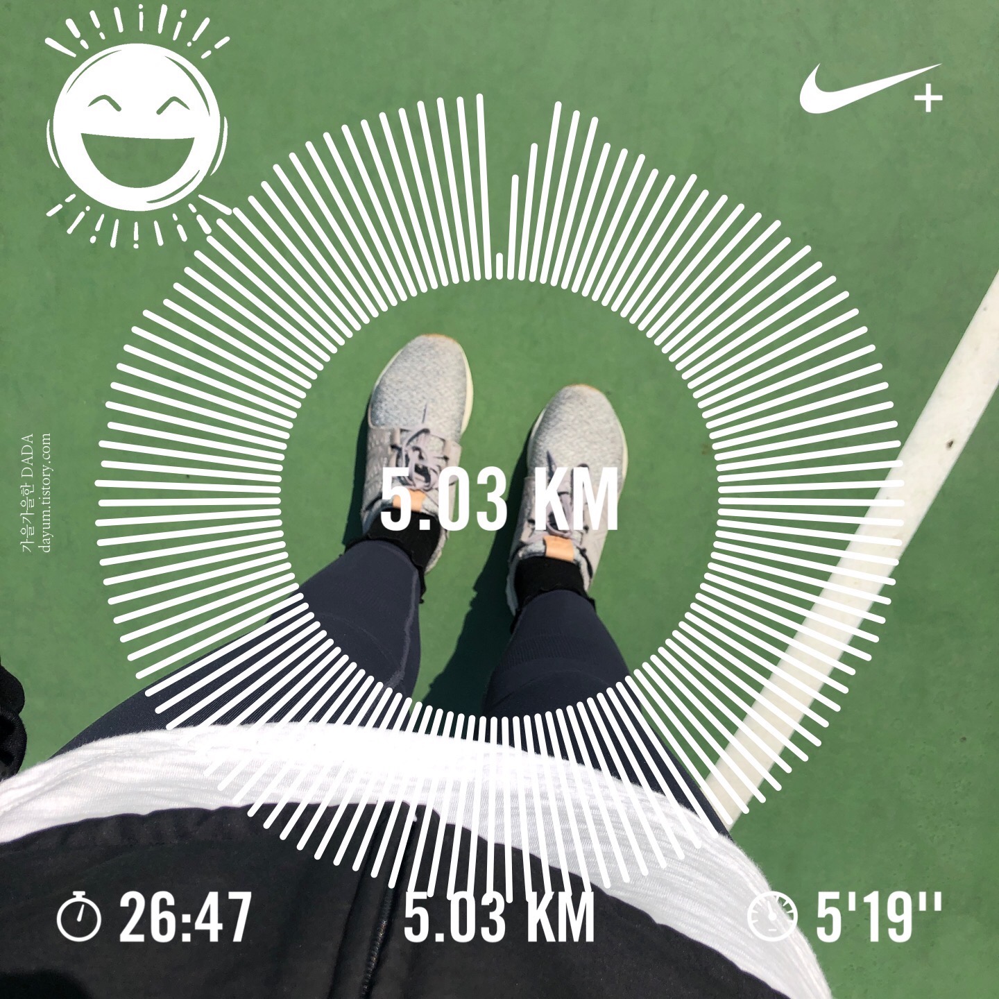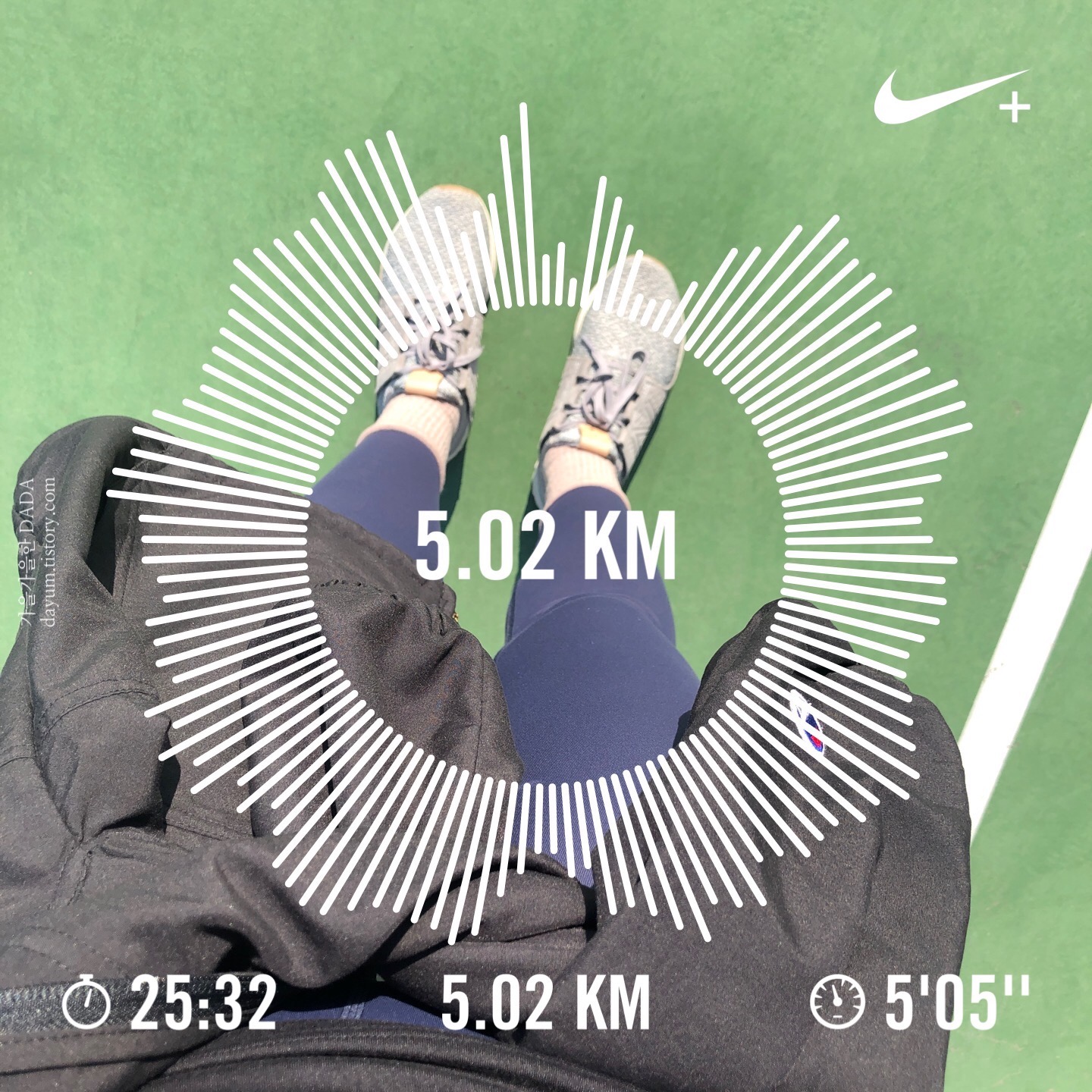 레깅스만 입고 운동장 뛸 땐 안민망한데 단지안에 뛰려니 엉덩이를 가릴 롱티셔츠를 입어줘야 할 것 같다.
