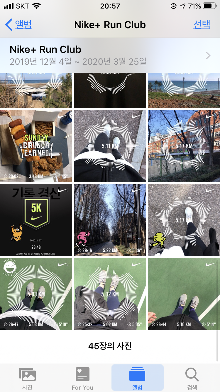2월 중순까지는 언덕이 있는 길을 뛰다가 2월 말부터는 코로나로 인해 아파트단지 주변을 뛰게 되어서 평지를 뛰었다.