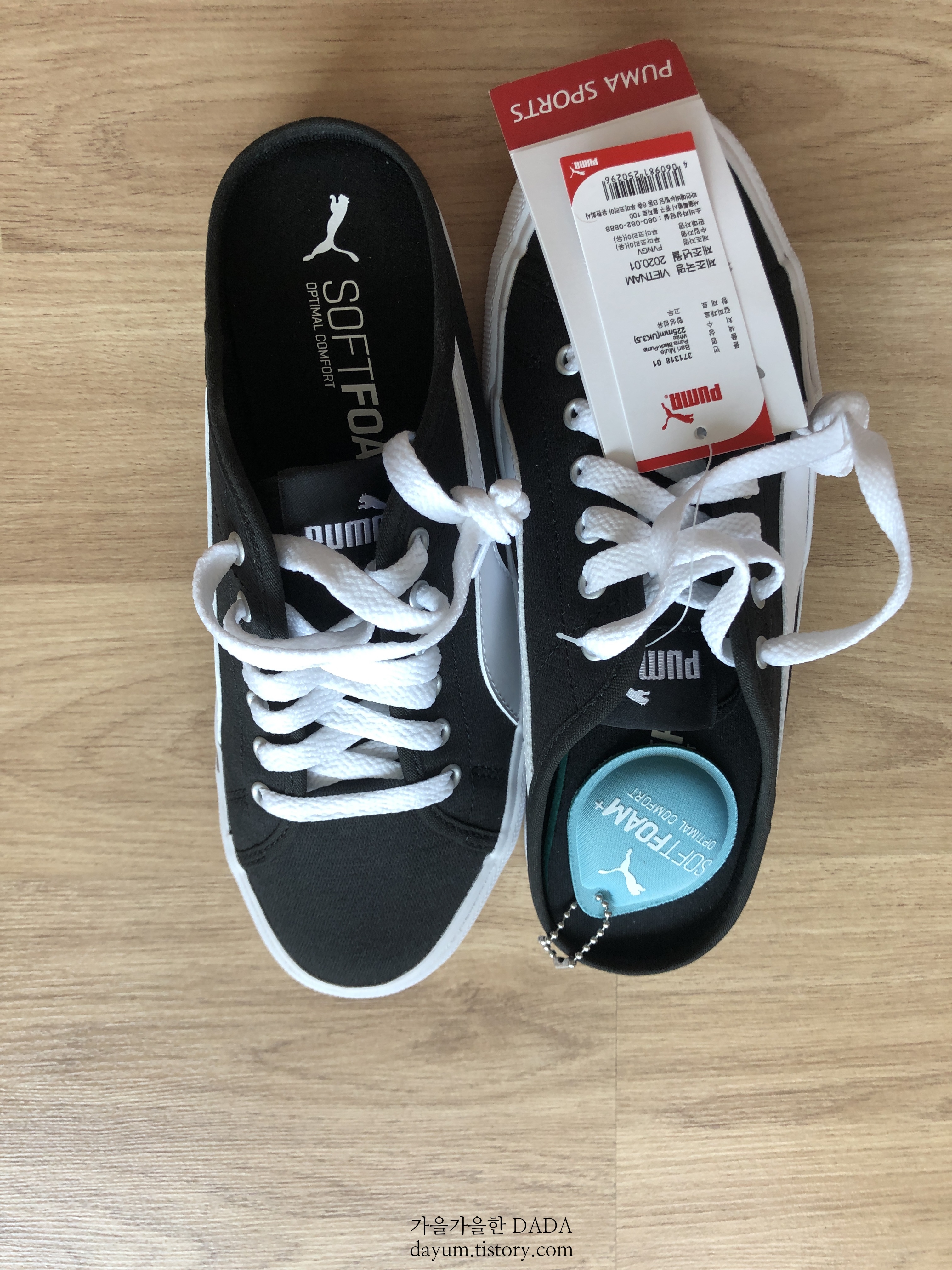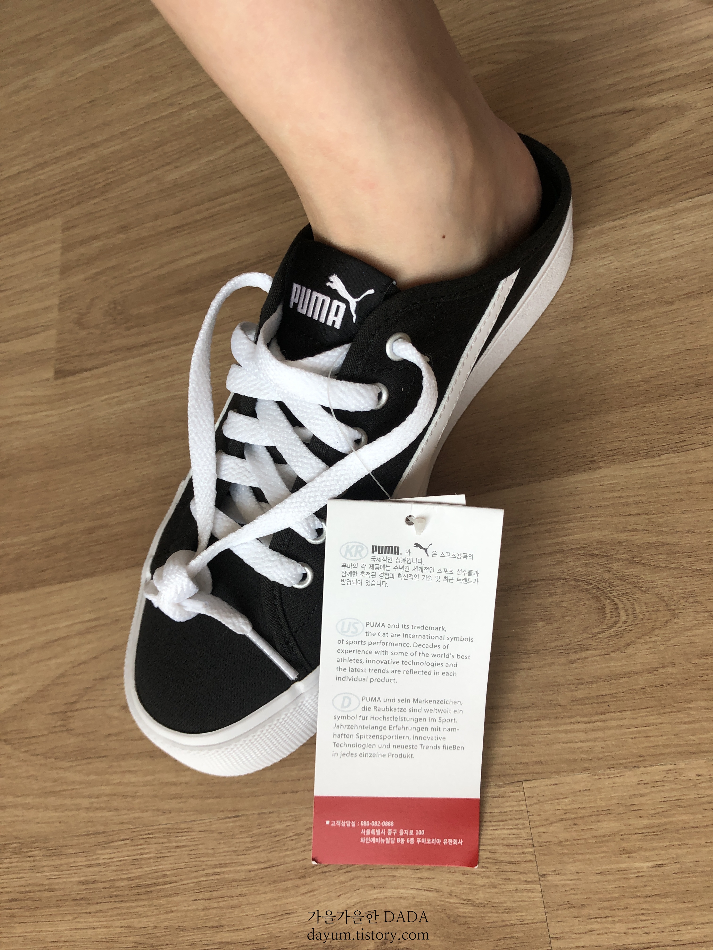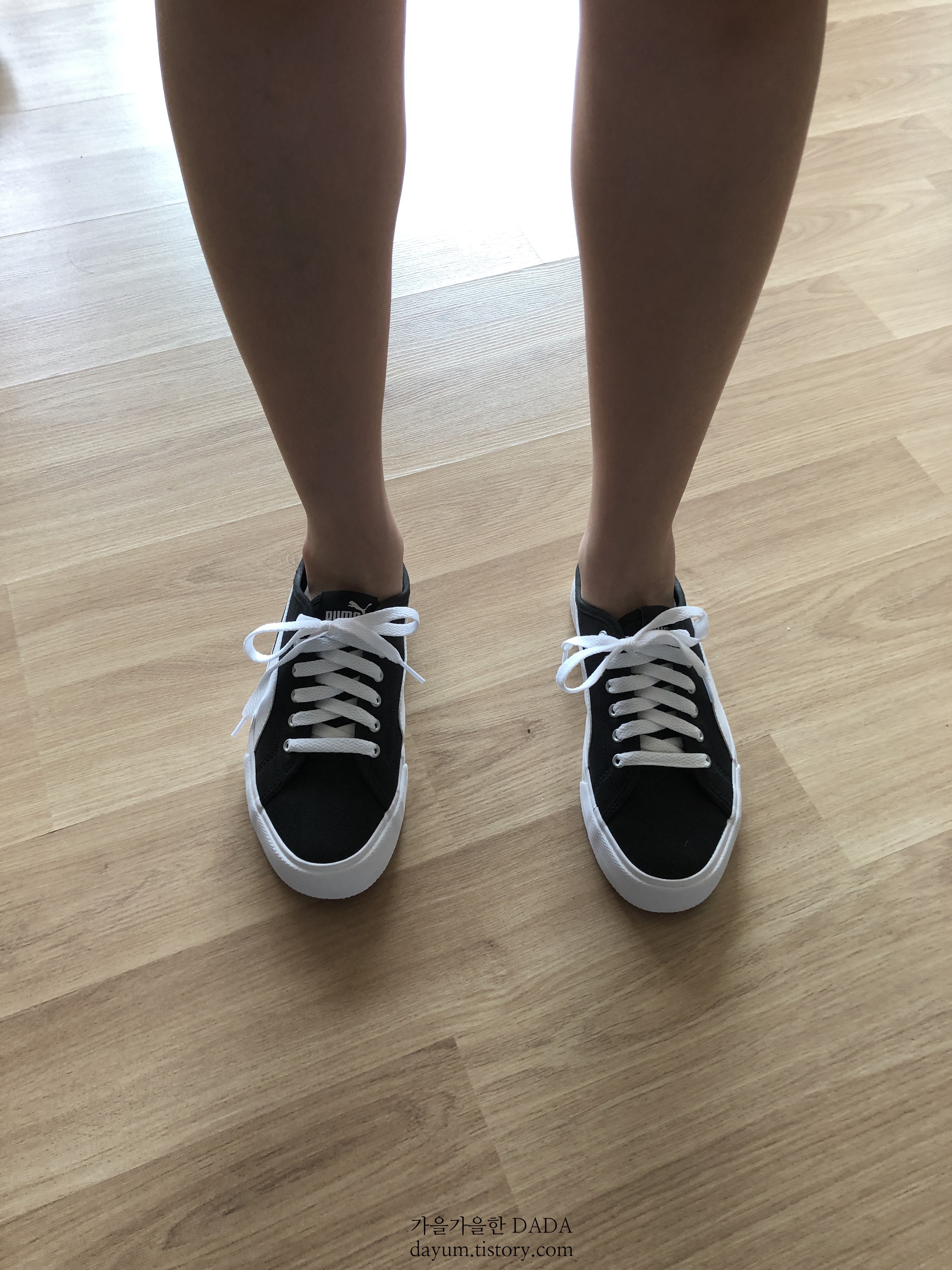 컨버스 뮬은 굽 높이가 너무 낮고 사이즈를 구하기 쉽지 않았는데 푸마는 생각보다 마음에 든다. 키가 작아서 굽높은 운동화가 좋당. 히히