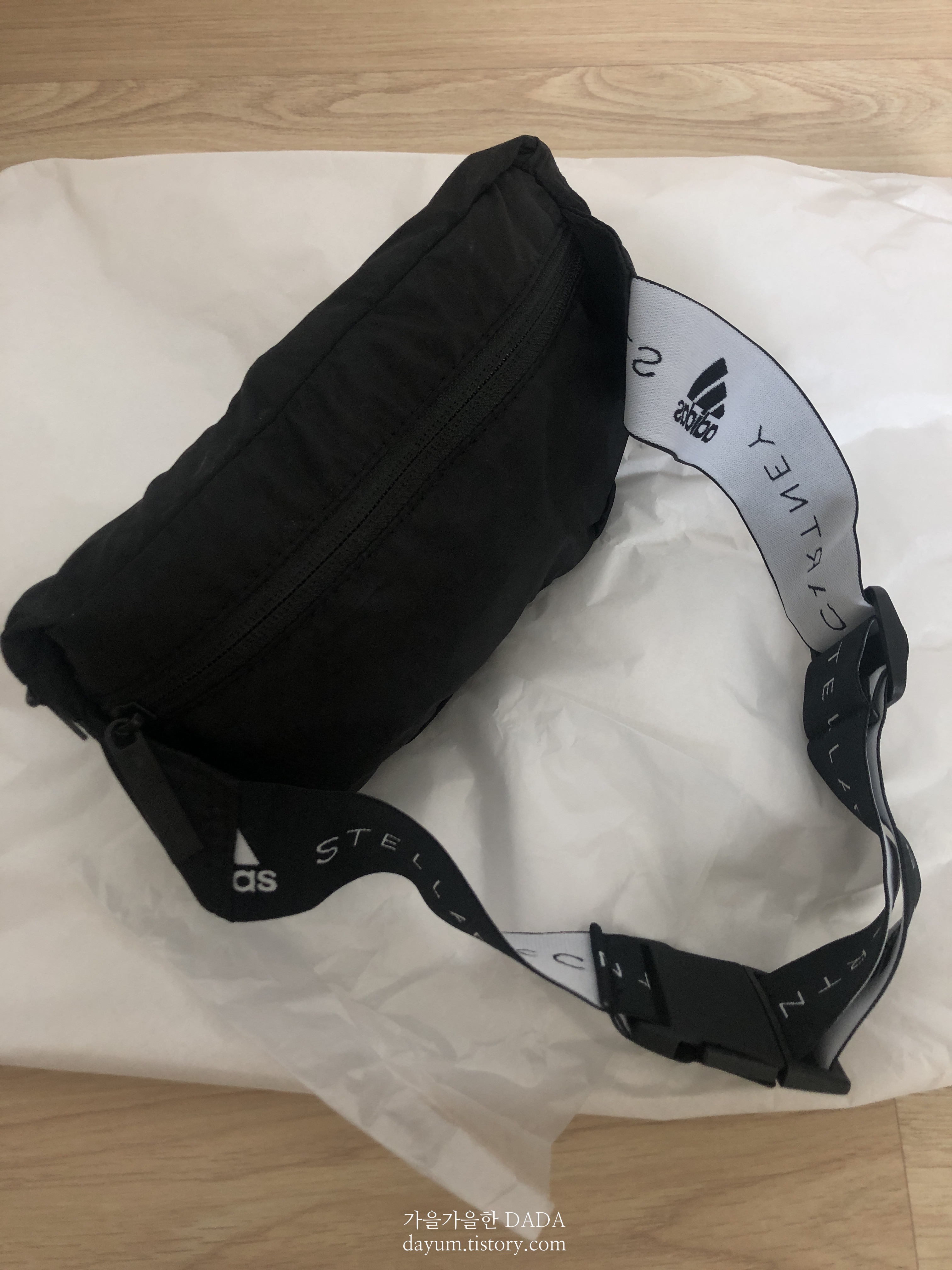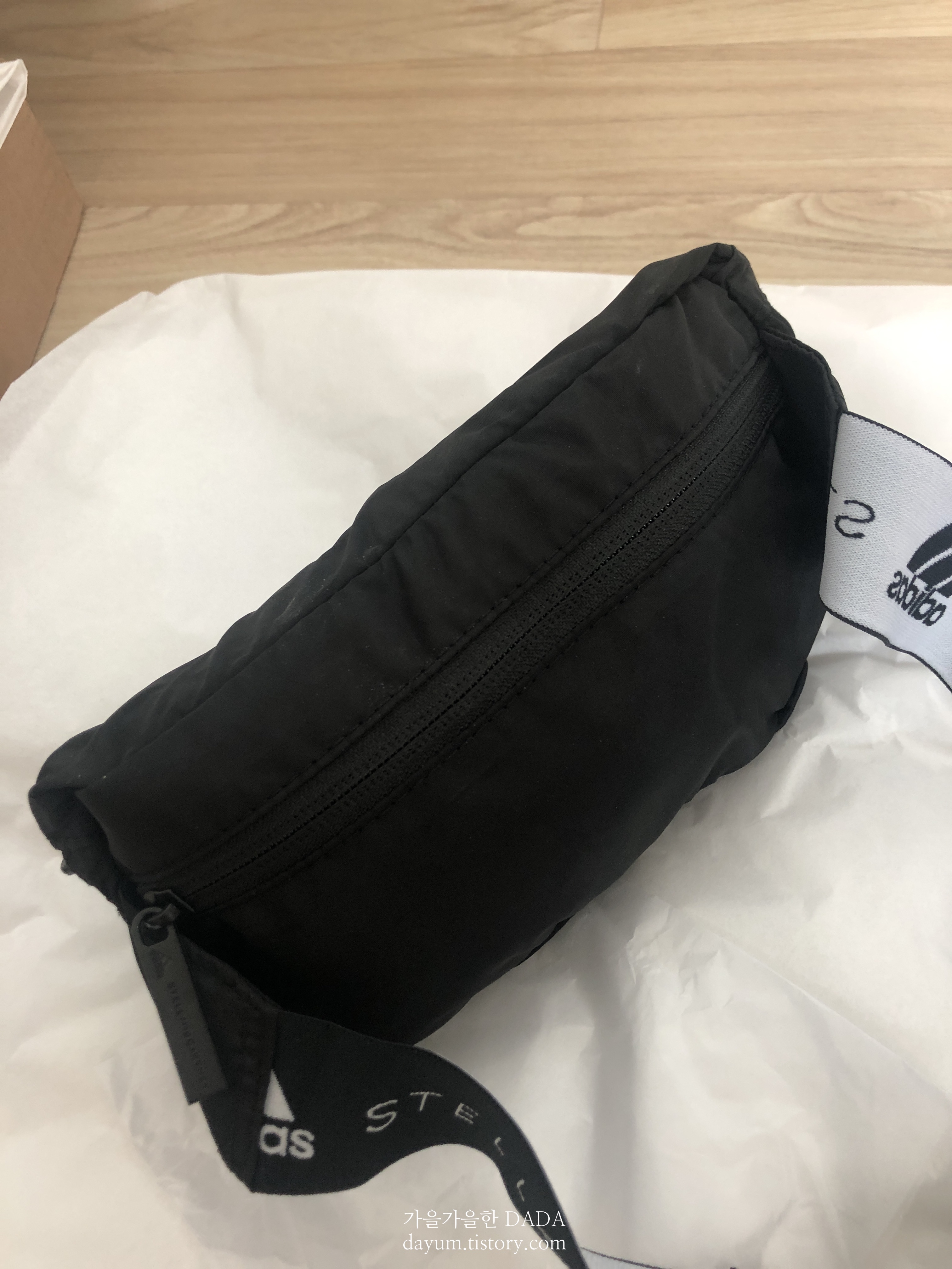 이 주머니 부분을 뒤집어서 가방을 잘 개켜(구겨/쑤셔) 넣으면 힙색처럼 만들어진다.