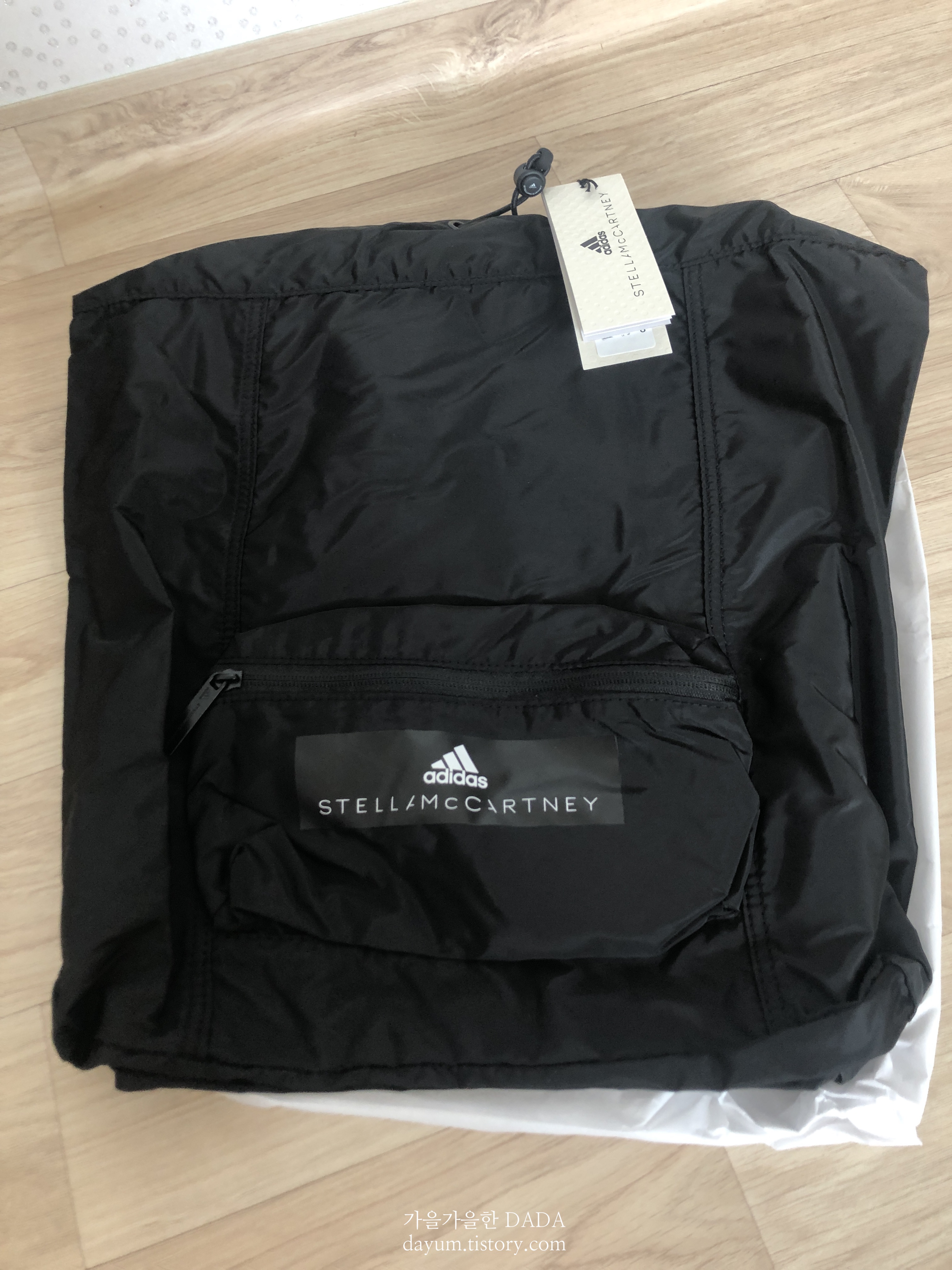 아디다스 바이 스텔라맥카트니 짐백을 샀당. 백팩이고 여밈이 스트링이라서 짐도 많이 들어갈 것 같구, 운동할때 들고다니기 좋을 것 같아서 구입했다. $59이고 배송비는 $15인데 체크카드 결제��