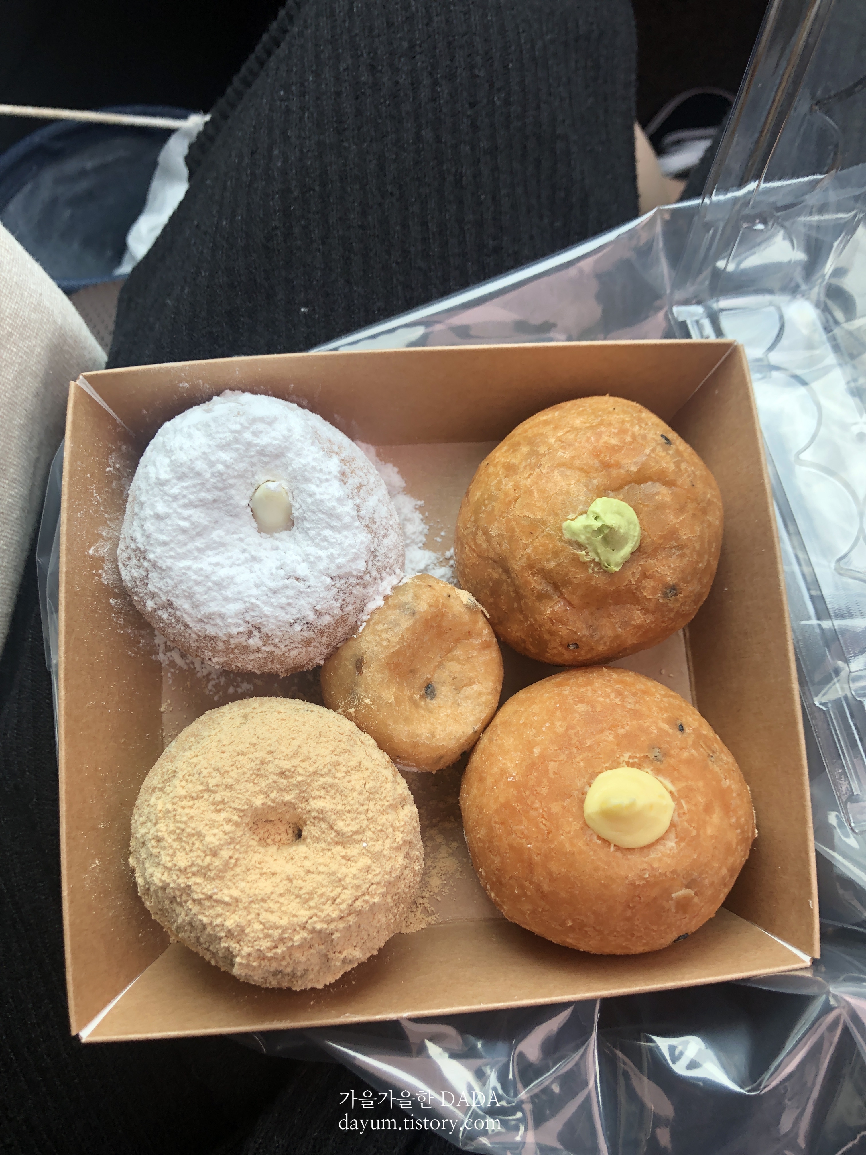 맛보기는 도너츠4개와 미니도너츠가 들어있다. 네가지맛을 고르면 된다.