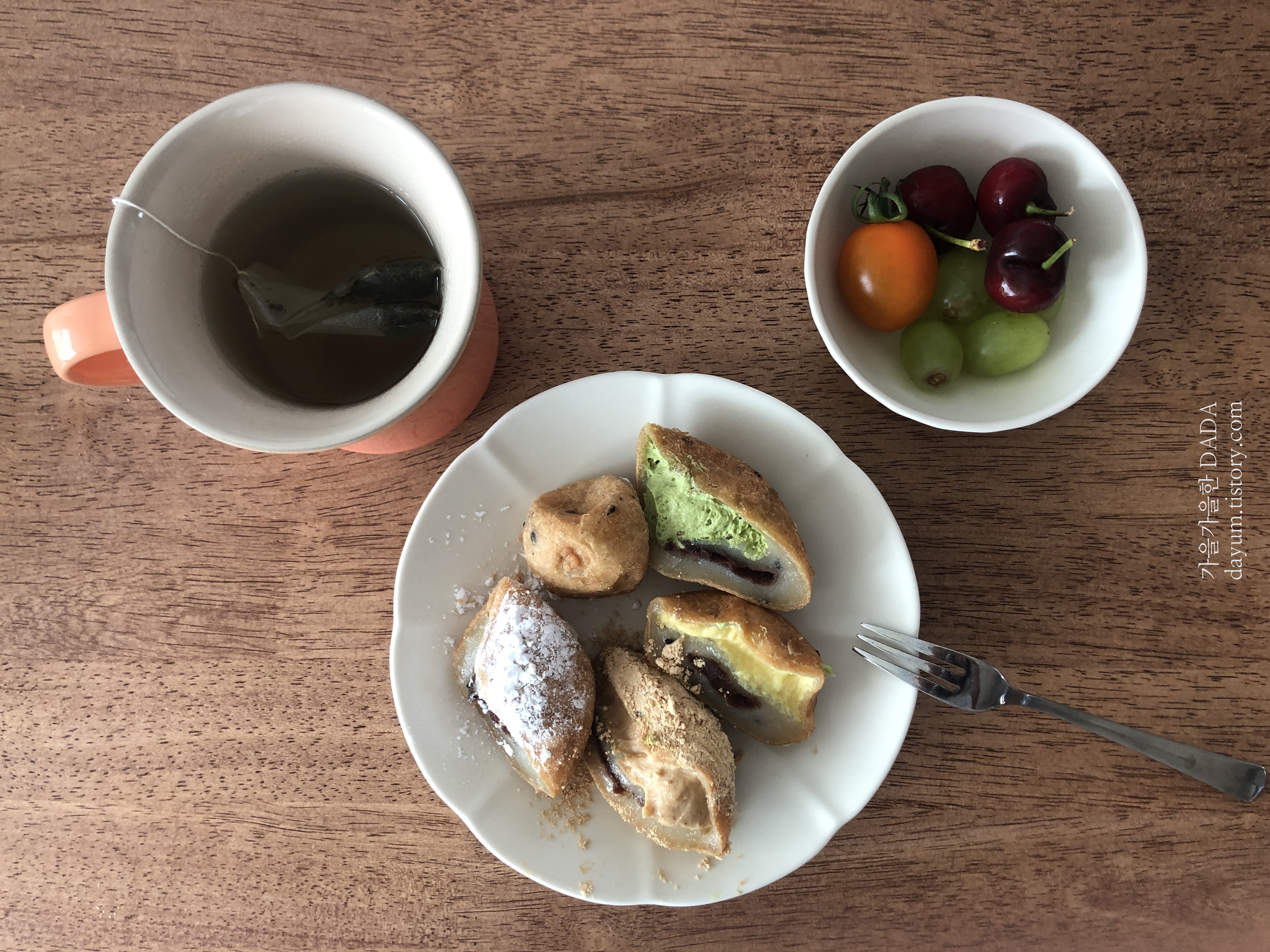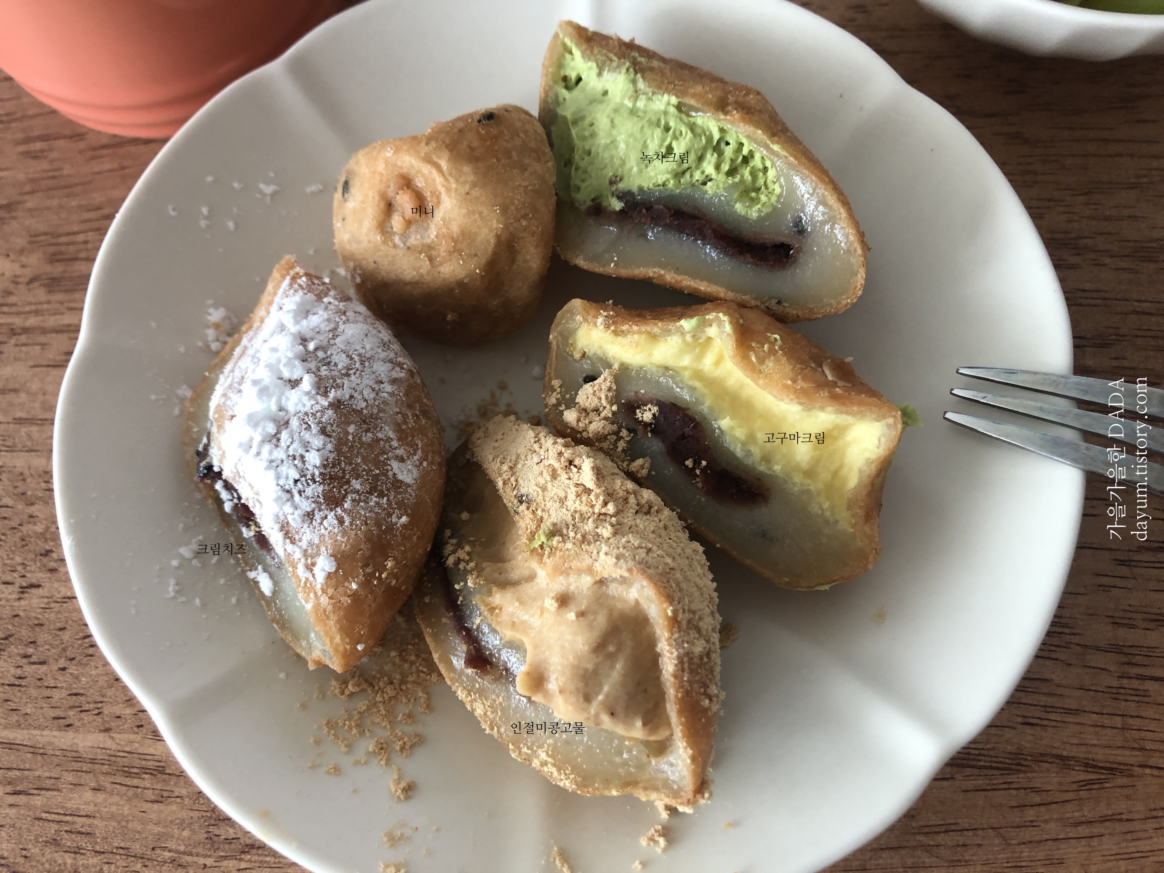 개인적으로 크림치즈랑 인절미콩고물이 내 입맛에 맞지만 달긴 달다.