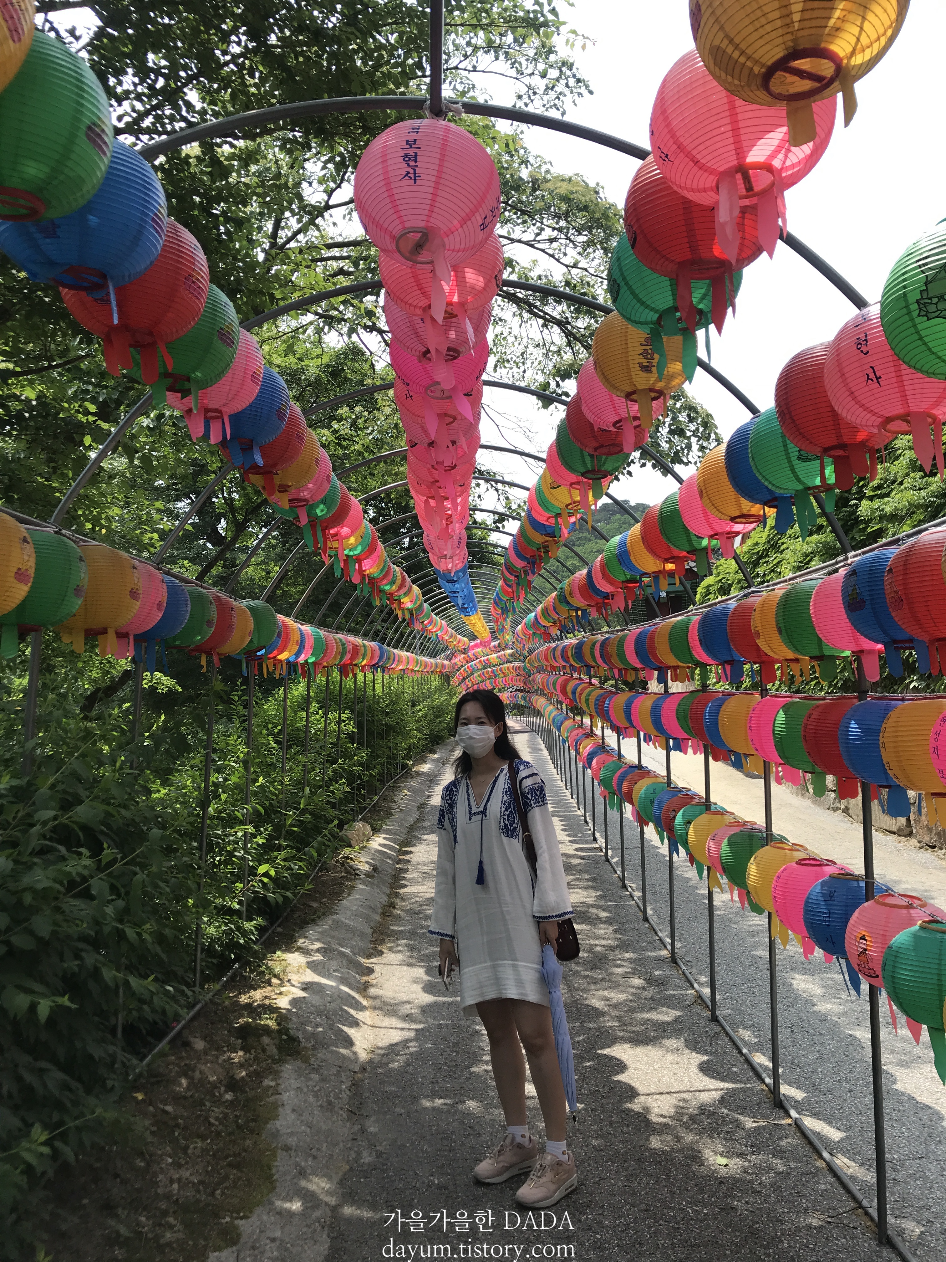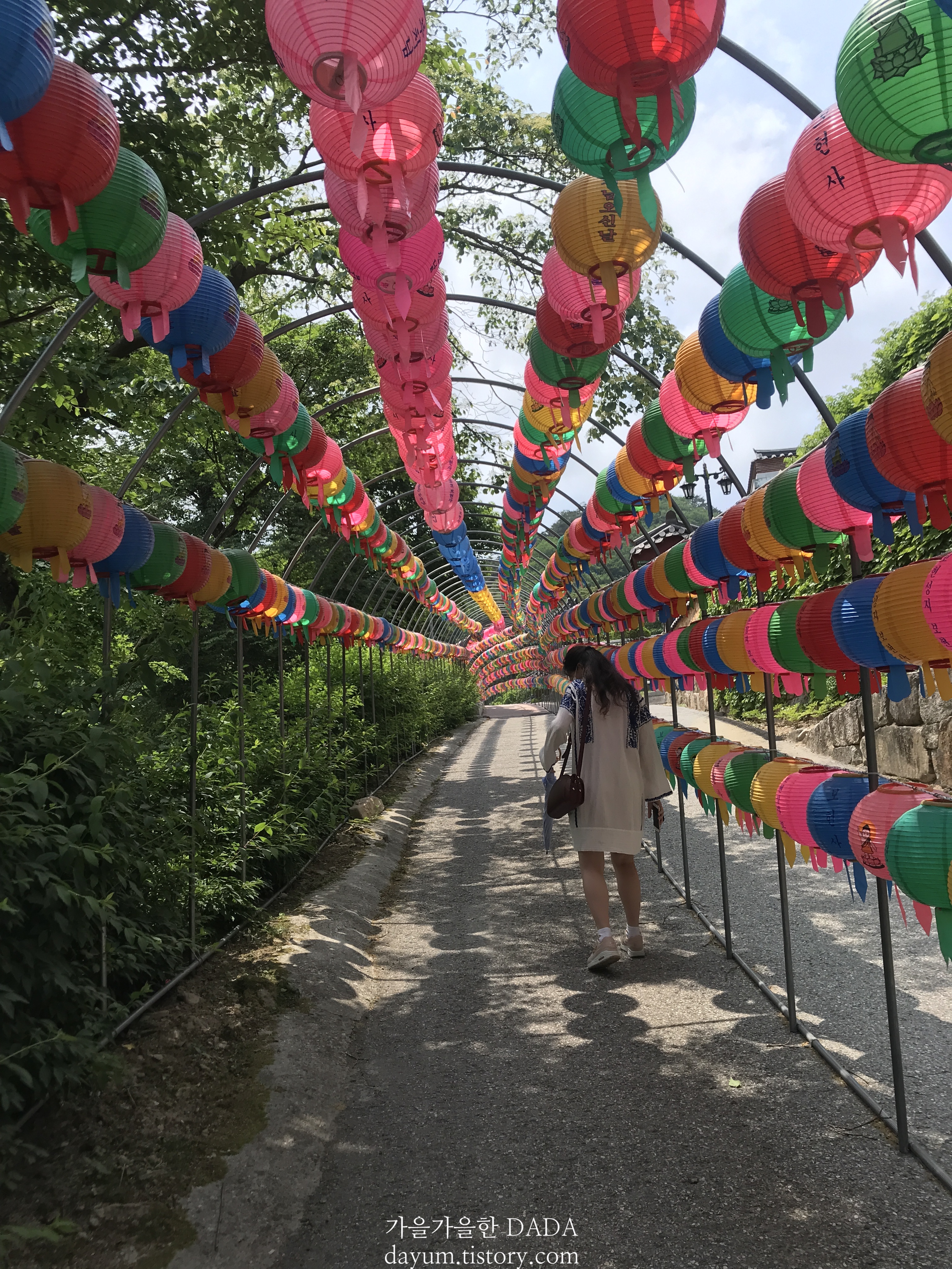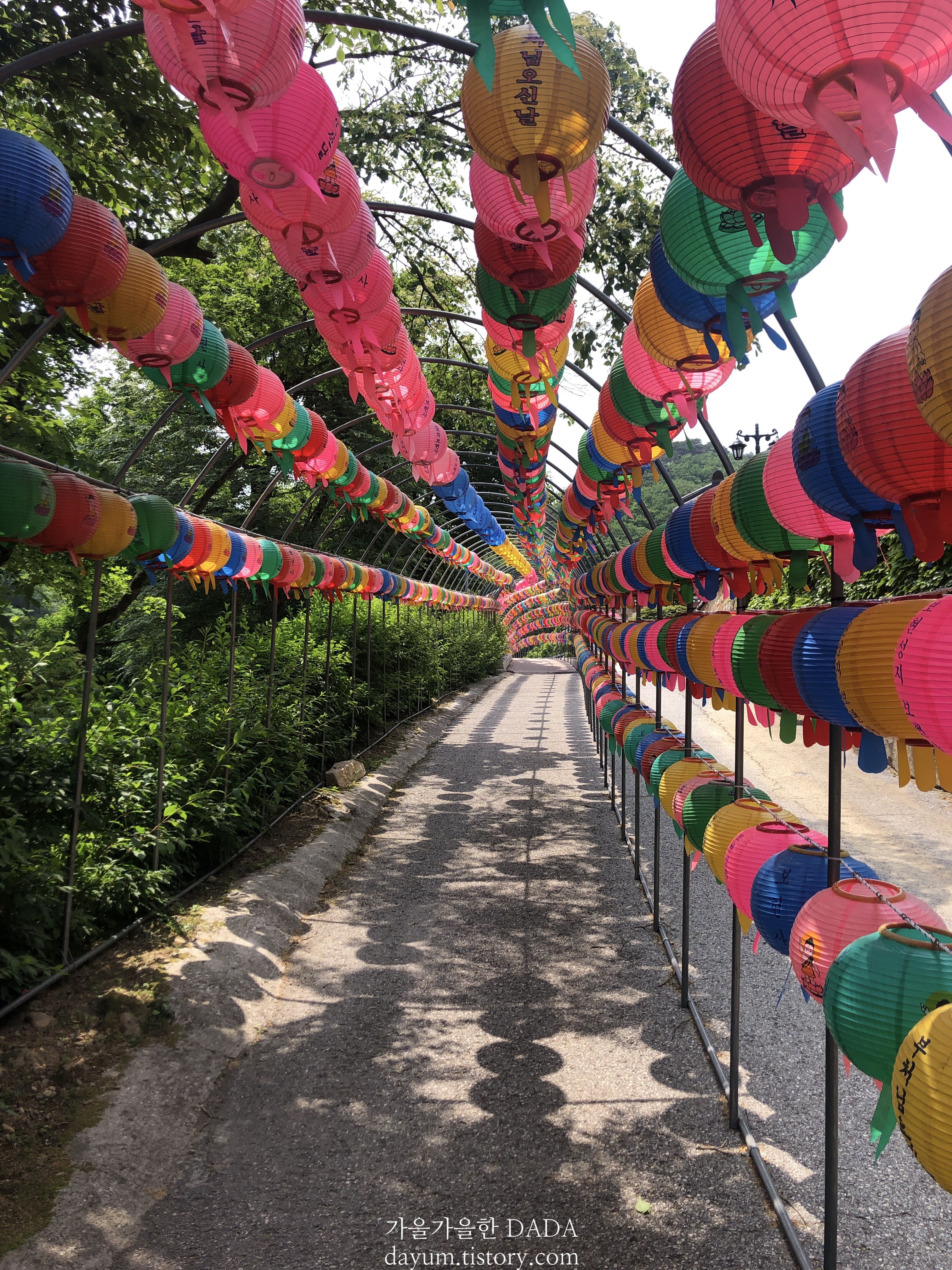주차는 생각보다 굽이굽이 올라가서 할 수 있다. 오색등이 걸린 터널을 지나 올라가면 되는데 여기가 정말 예쁘다.