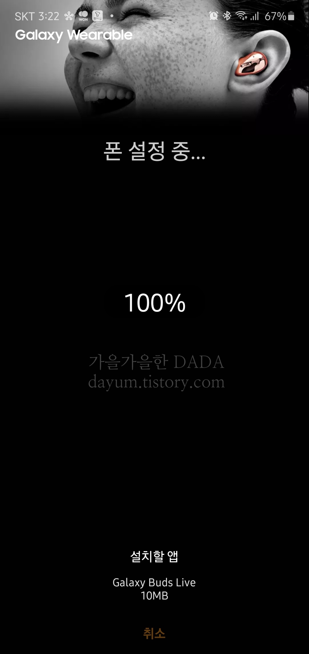 본체 뚜껑을 열었다 닫았다 하면 이렇게 갤럭시 웨어러블 앱이 열린다.