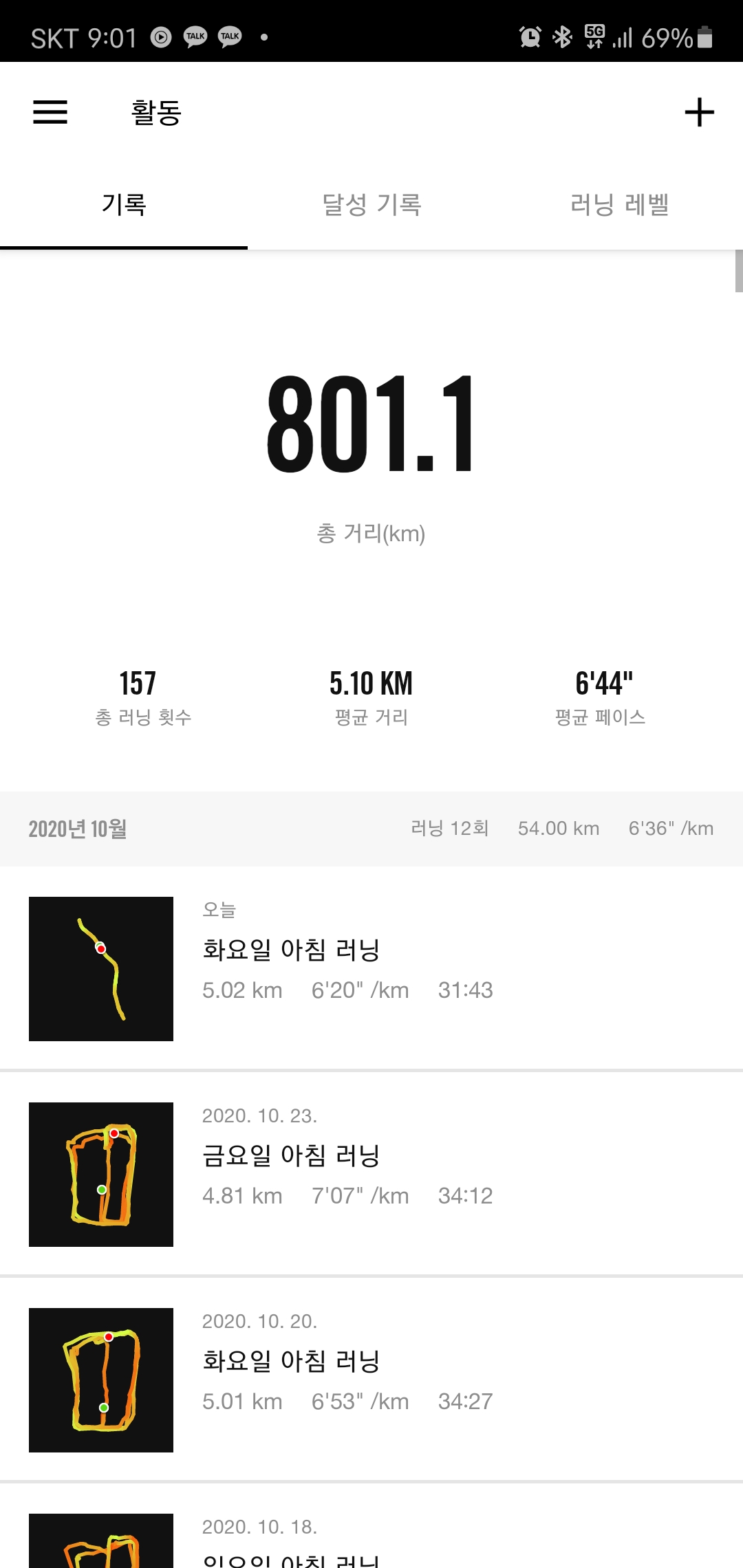 한달새에 엄청 느려졌지만 여전히 5-7km는 달리려고 노력하고 있다.