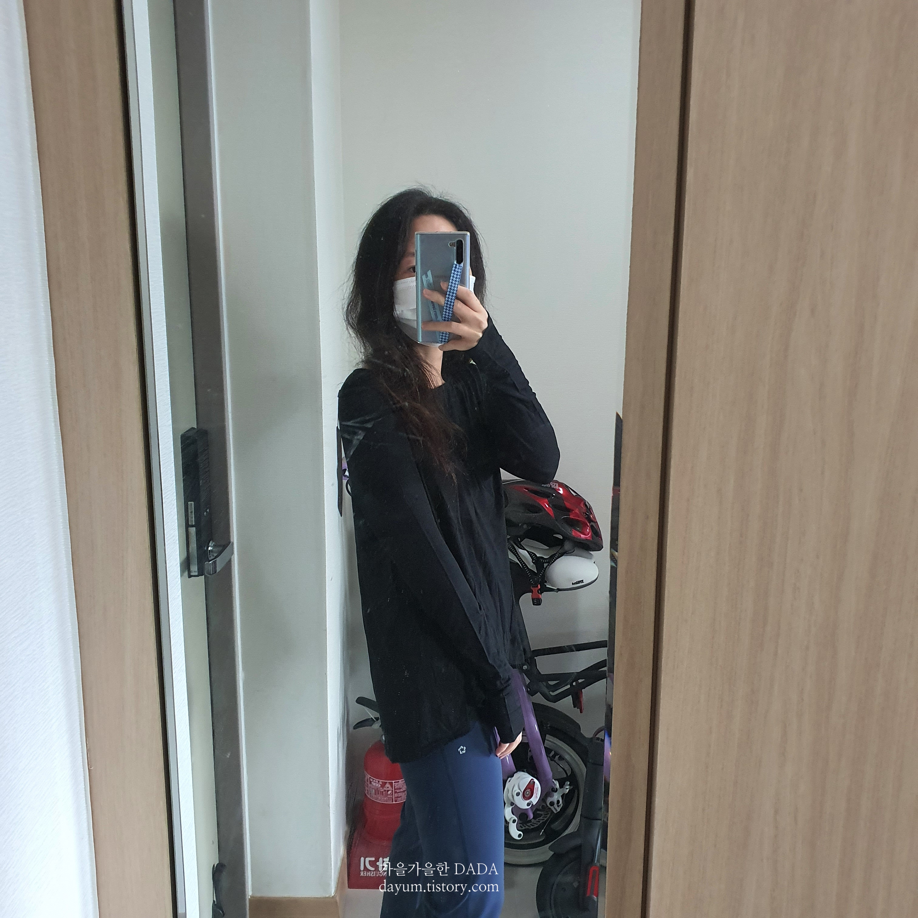 허벅지 부각은 저 정도...? 4사이즈 입었을땐 못 봐줄 것 같더니만 한 사이즈 크게 사니까 좀 나은 것 같다.
