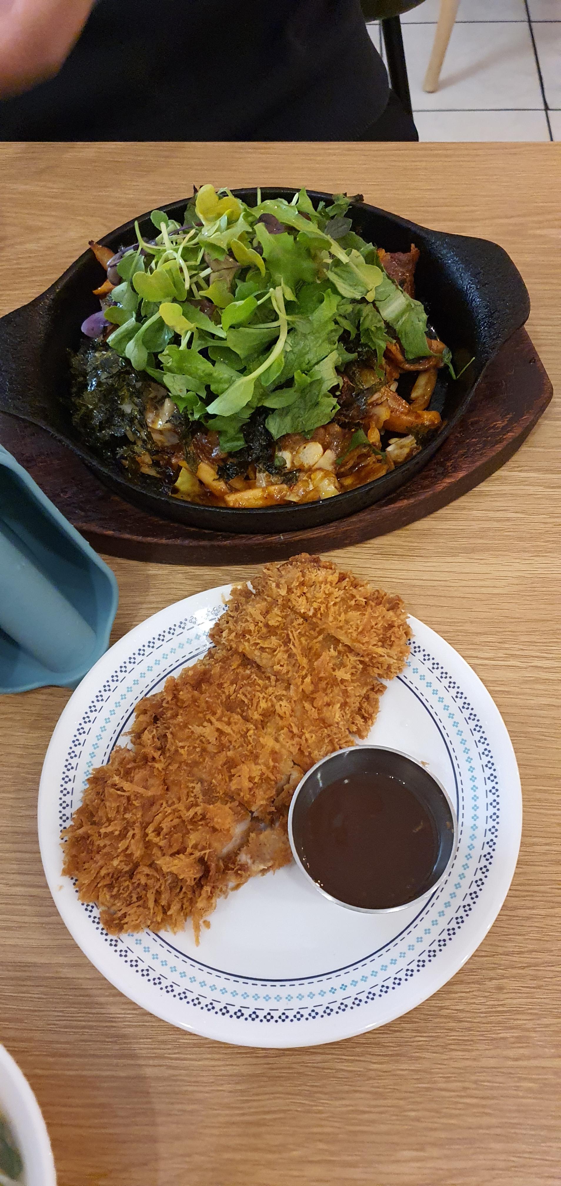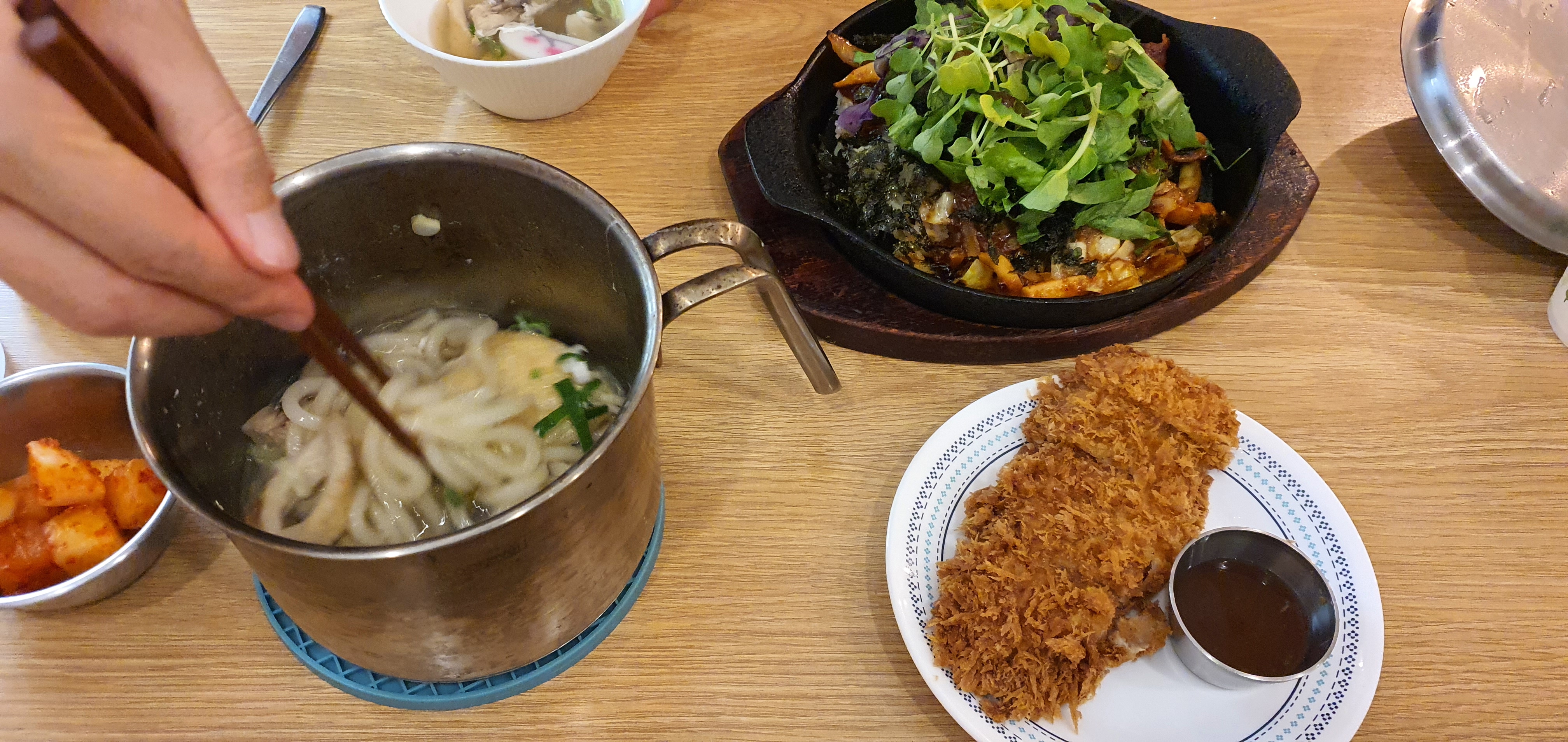 철판덮밥은 매콤해서 좋았고, 특히 밥을 눌러 먹으면 그렇게 맛있을수가 없다. 냄비우동은 국물이 아주 맛있어서 진짜 좋았다. 국물에는 유부, 오뎅, 굴이 들어있다. 돈가스 고기가 도톰해서 제주에서 먹었던 살찐고등어의 돈가스가 생각났다.