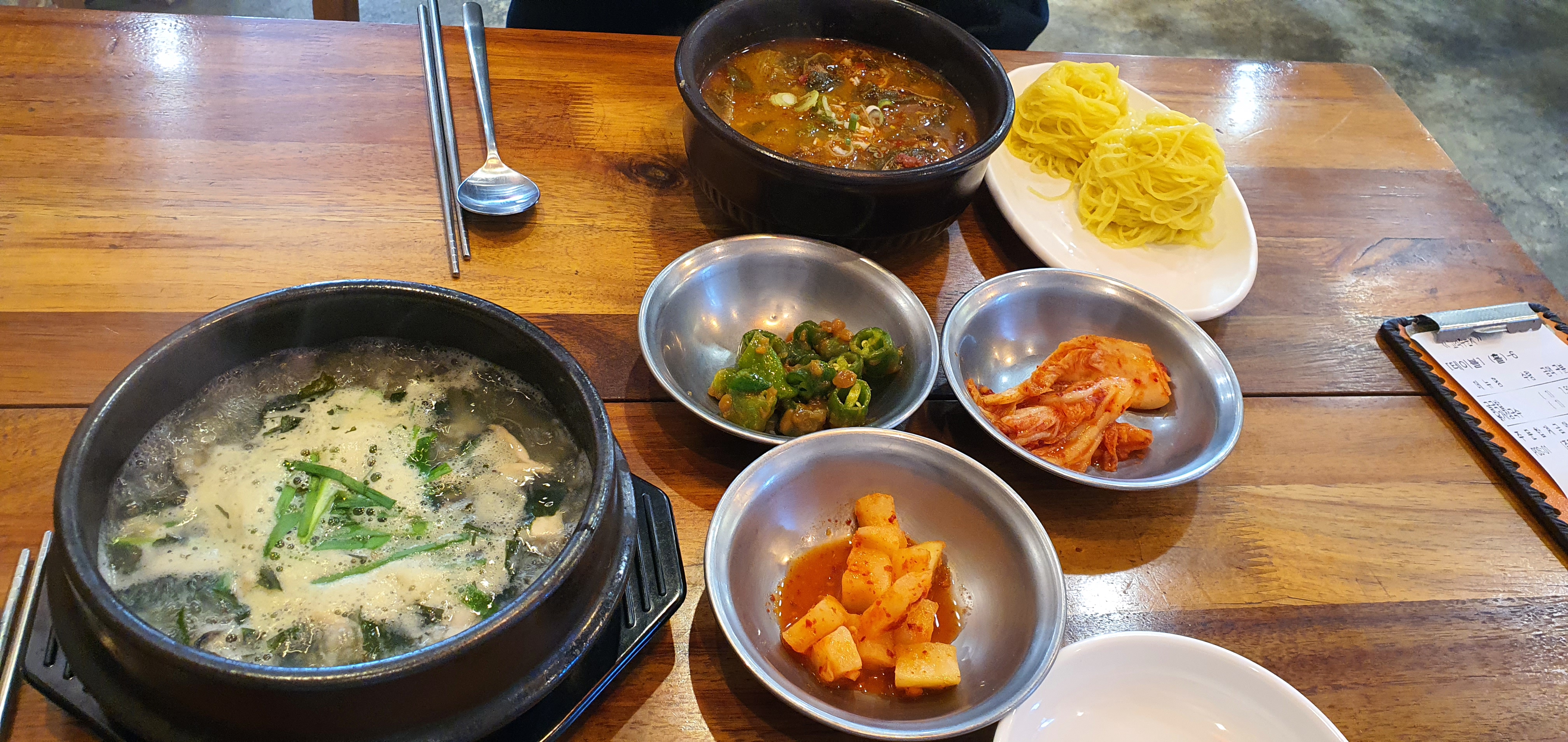 아저씨들이 단체로 오는 그런 식당인듯 ㅋㅋ 사람이 진짜 많았다. 굴국밥은 굴미역국 느낌인데 아주 슴슴하니 맛있었다. 닭개장국수는 진한 국물맛이라서 국수를 넣어도 밥을 넣어도 맛있었다.