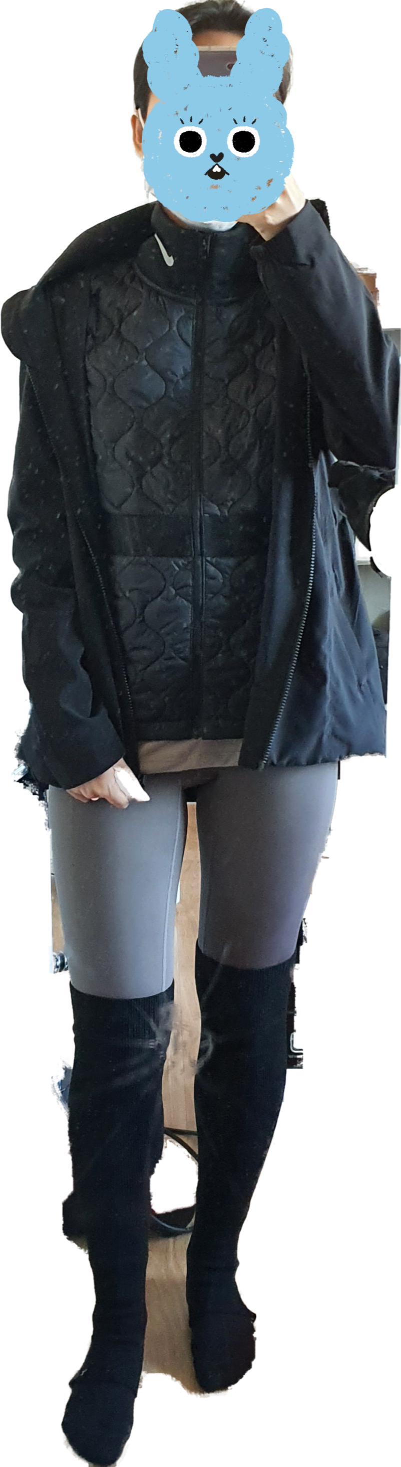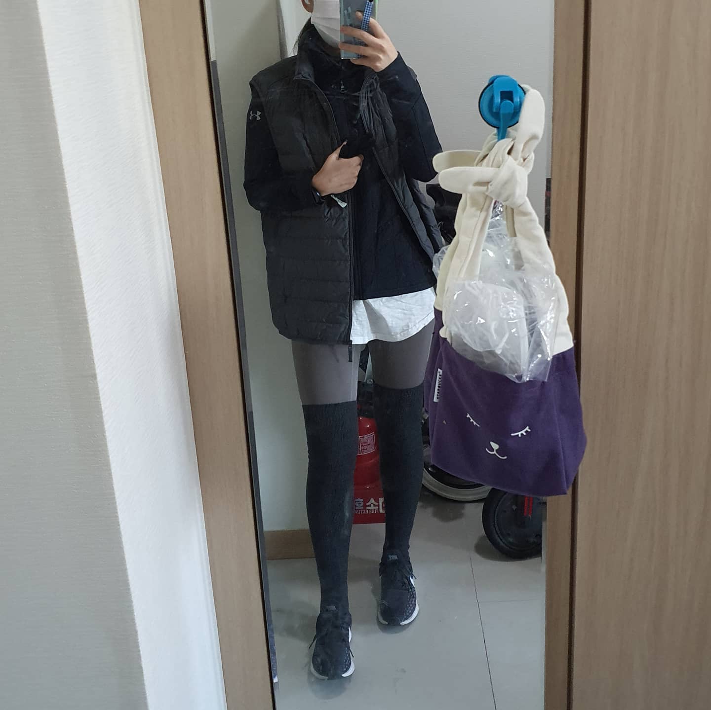 -기온이 떨어진 날엔 긴팔1, 런닝 겨울점퍼(얇은 패딩느낌), 레깅스, 넥워머, 장갑