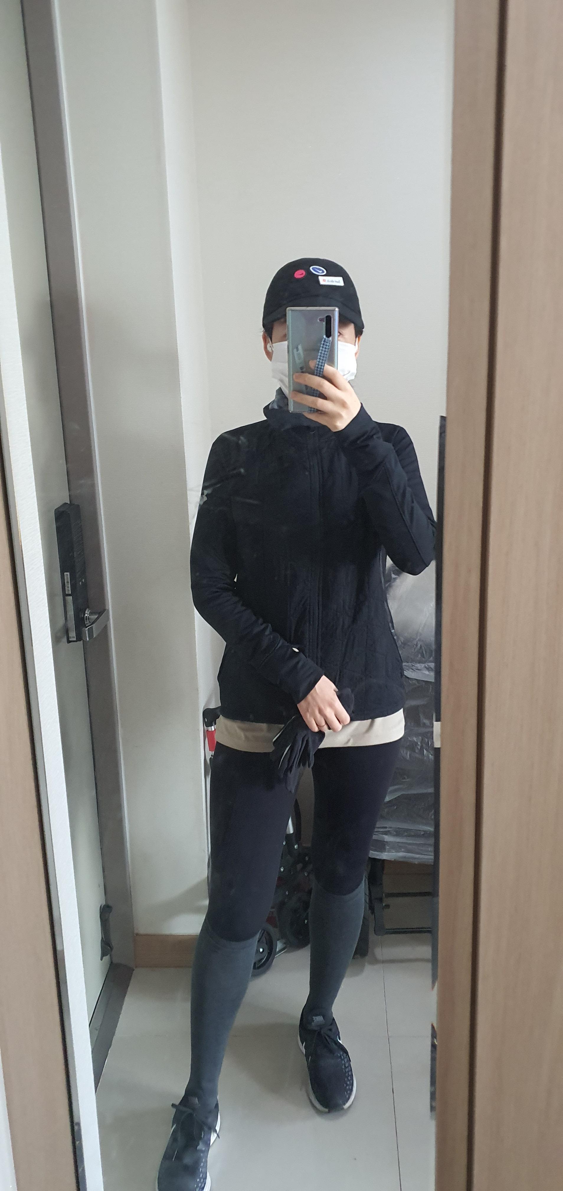애매한 기온(영상 2-3도)이라 상의는 겨울용 요가 티셔츠에 언더아머 런닝자켓만 입었는데 적당했다.