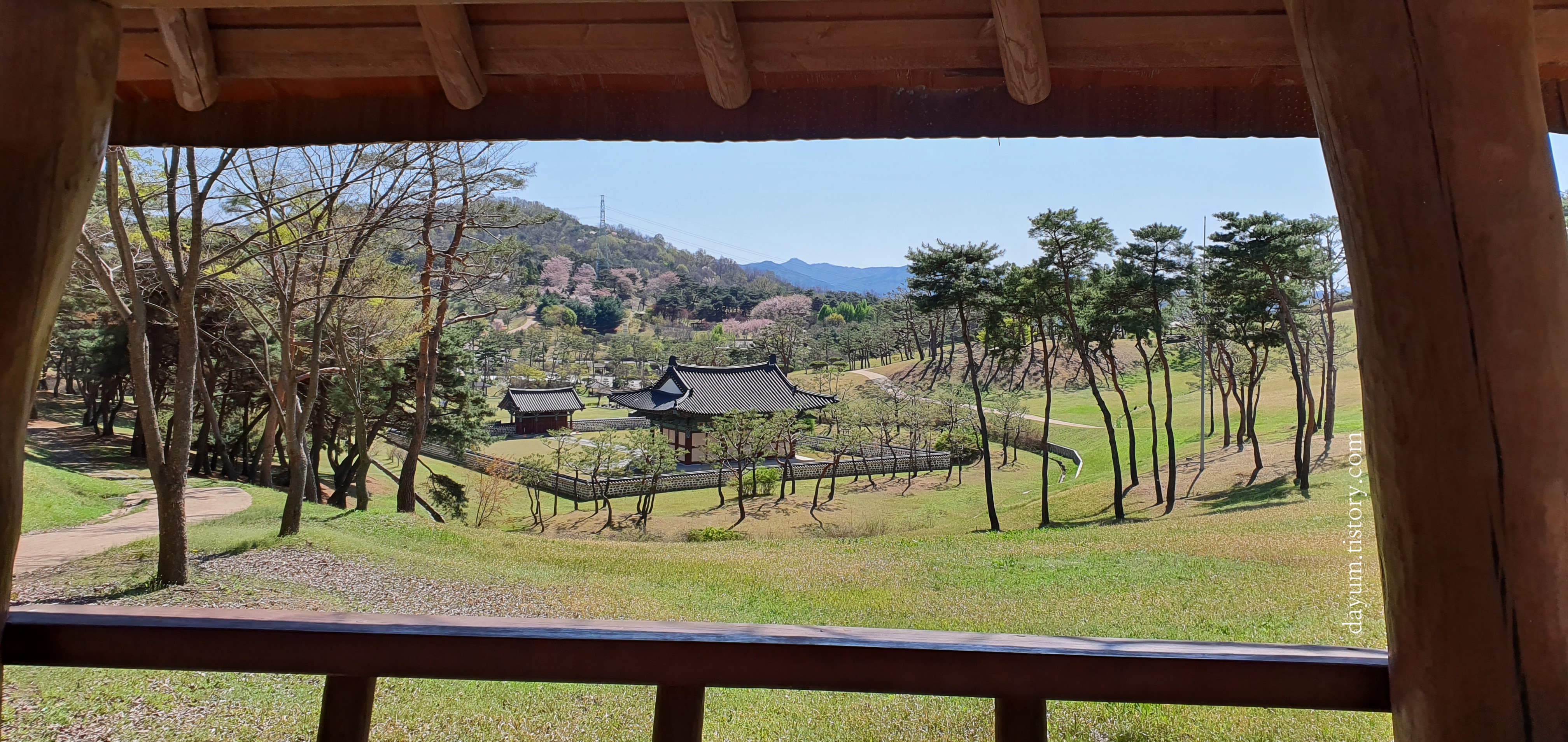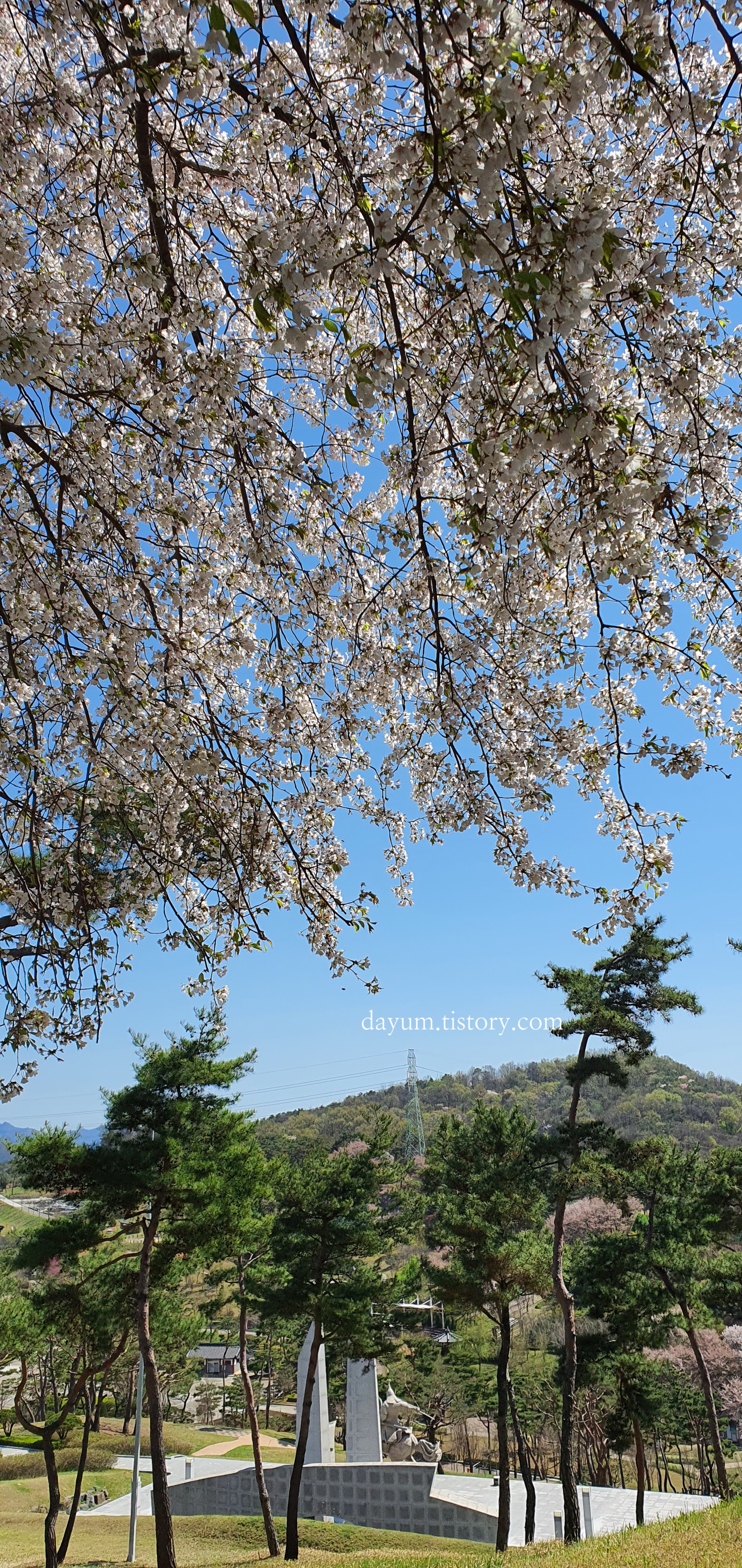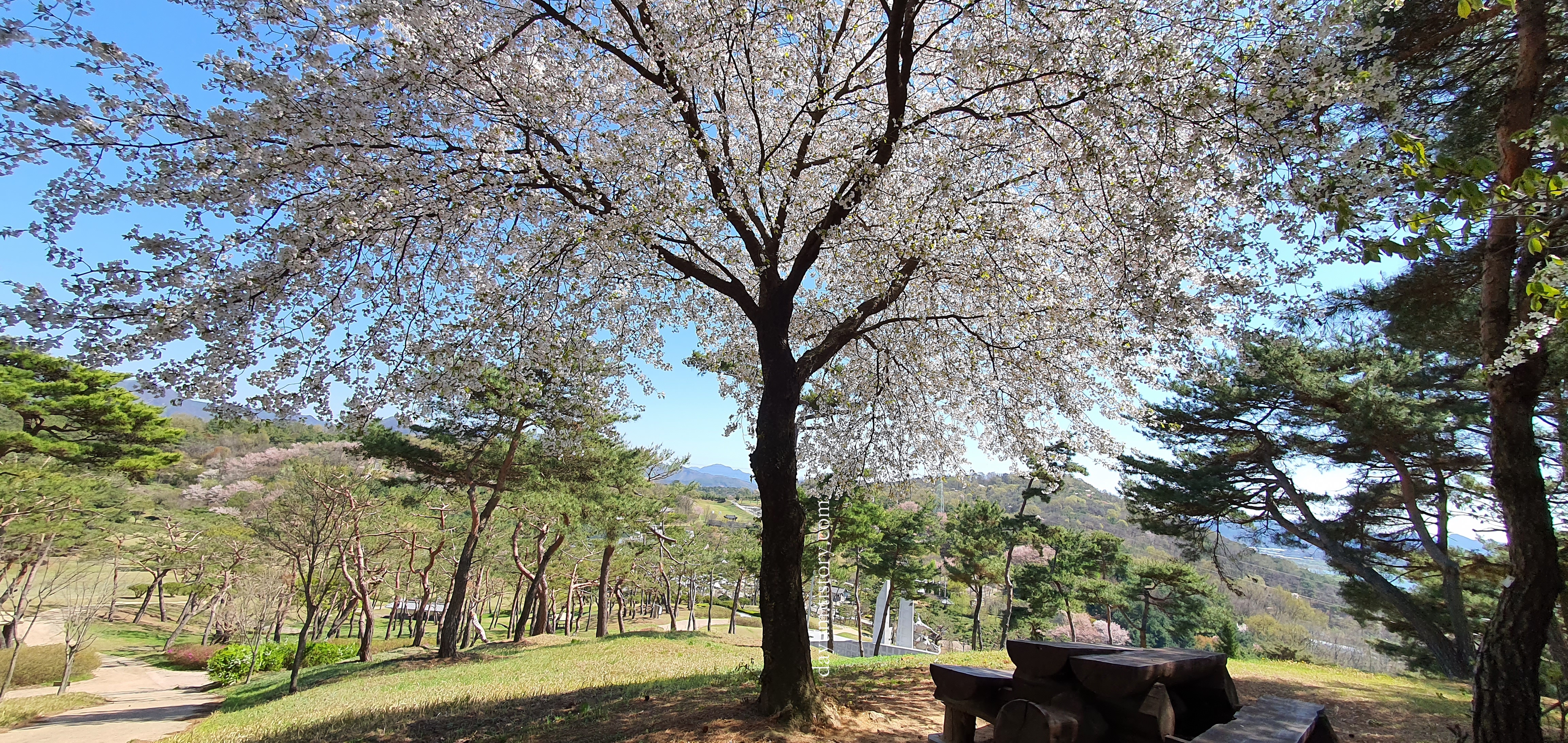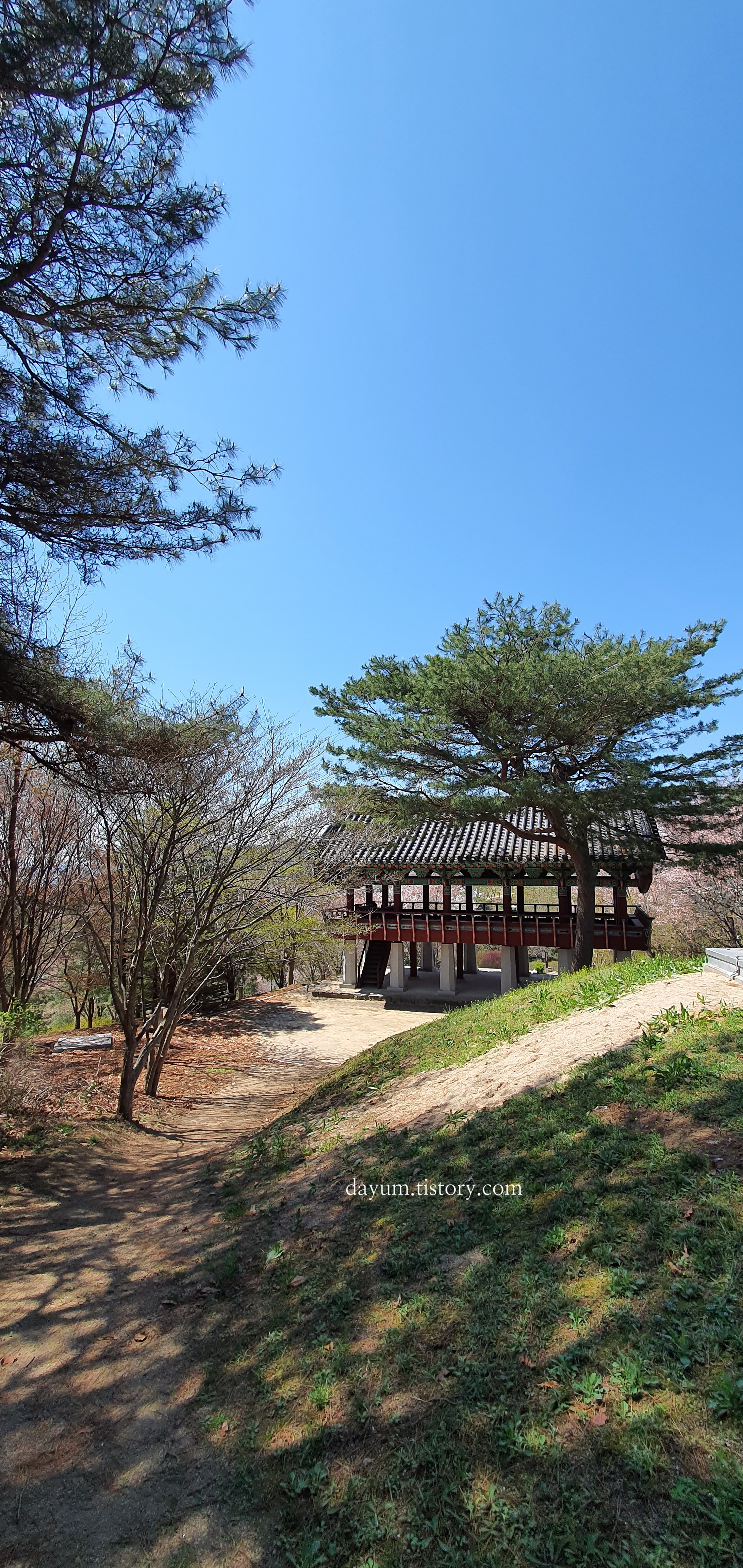벚나무 한그루가 너무 예뻐서 가파른 언덕을 올라가봤는데 계백장군 유적지를 한눈에 볼 수 있어서 정말 좋았다.