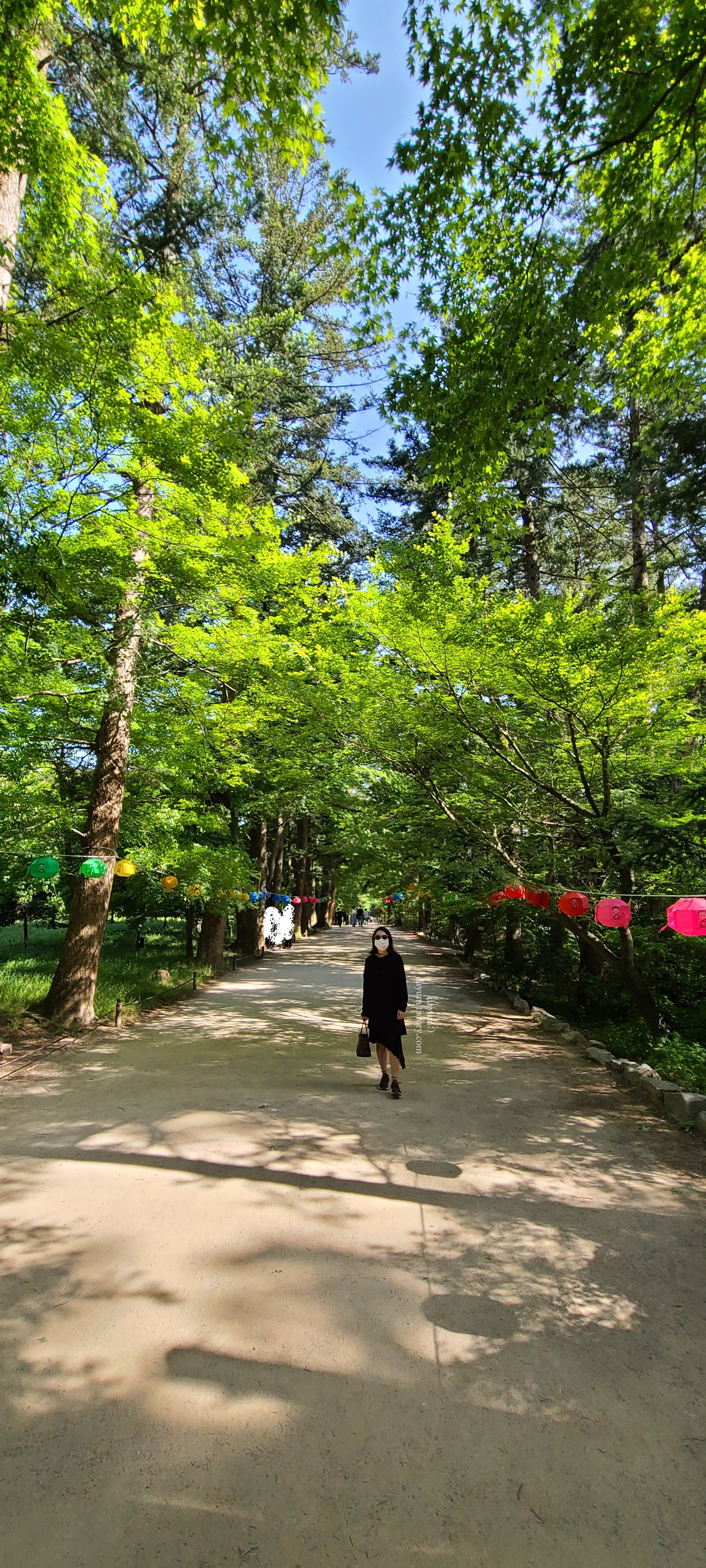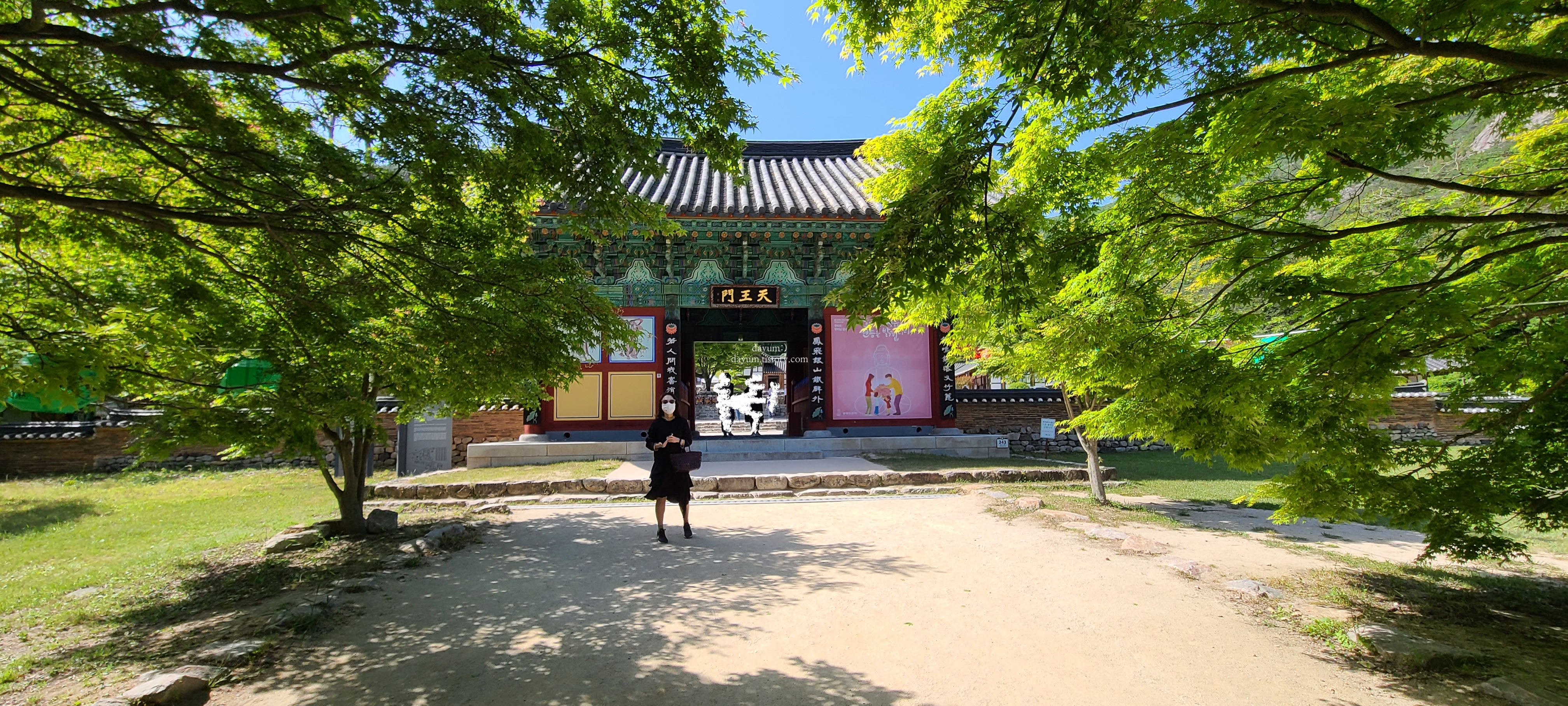 매표소를 지나면 이렇게 전나무 숲길을 걸어서 가야 내소사 천왕문이 나온다.