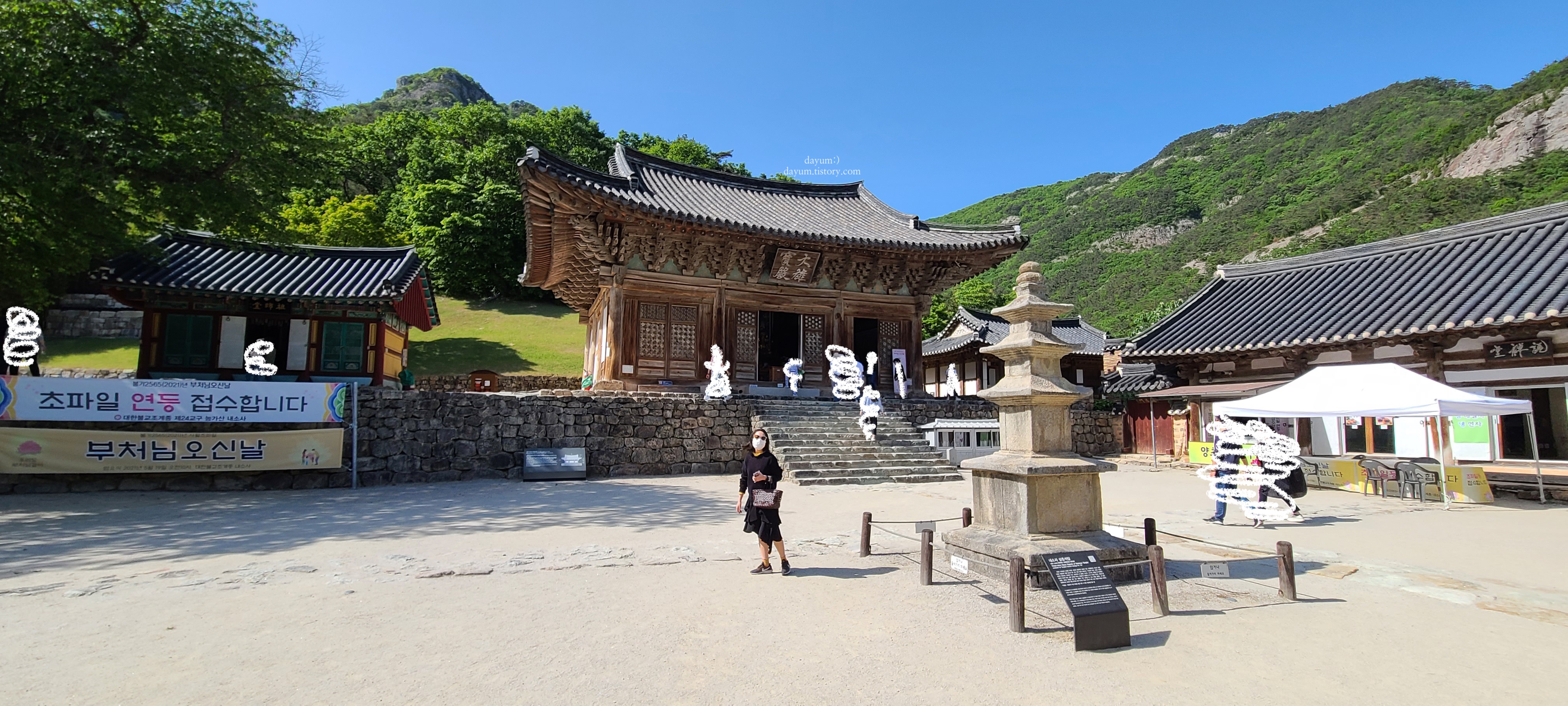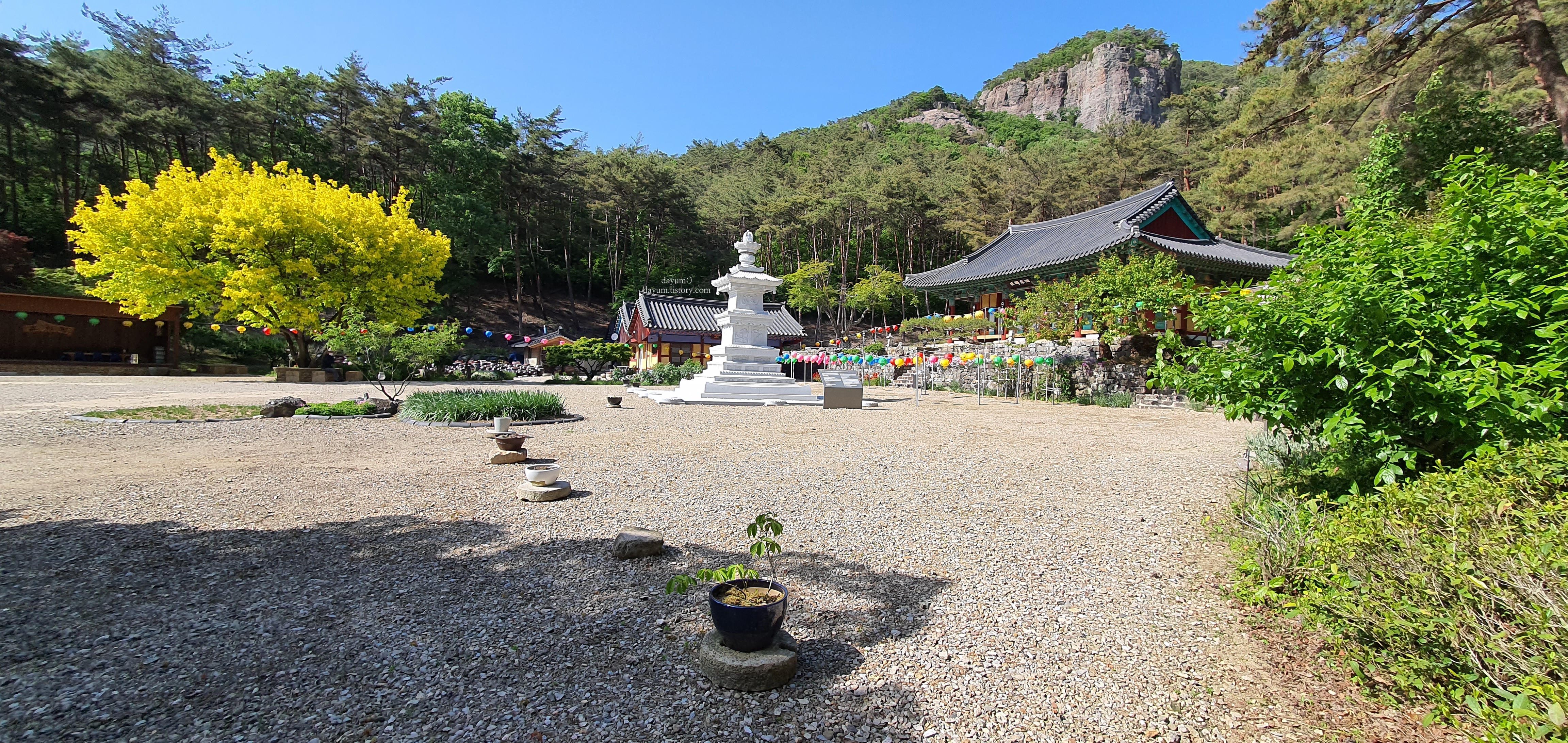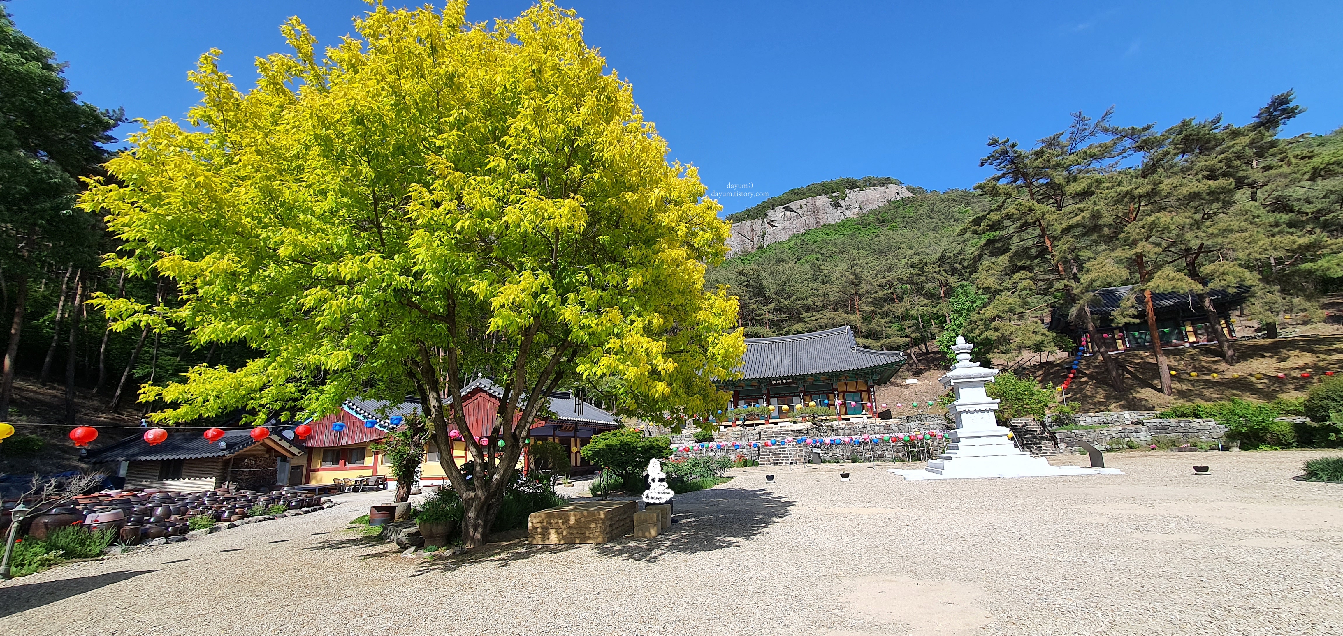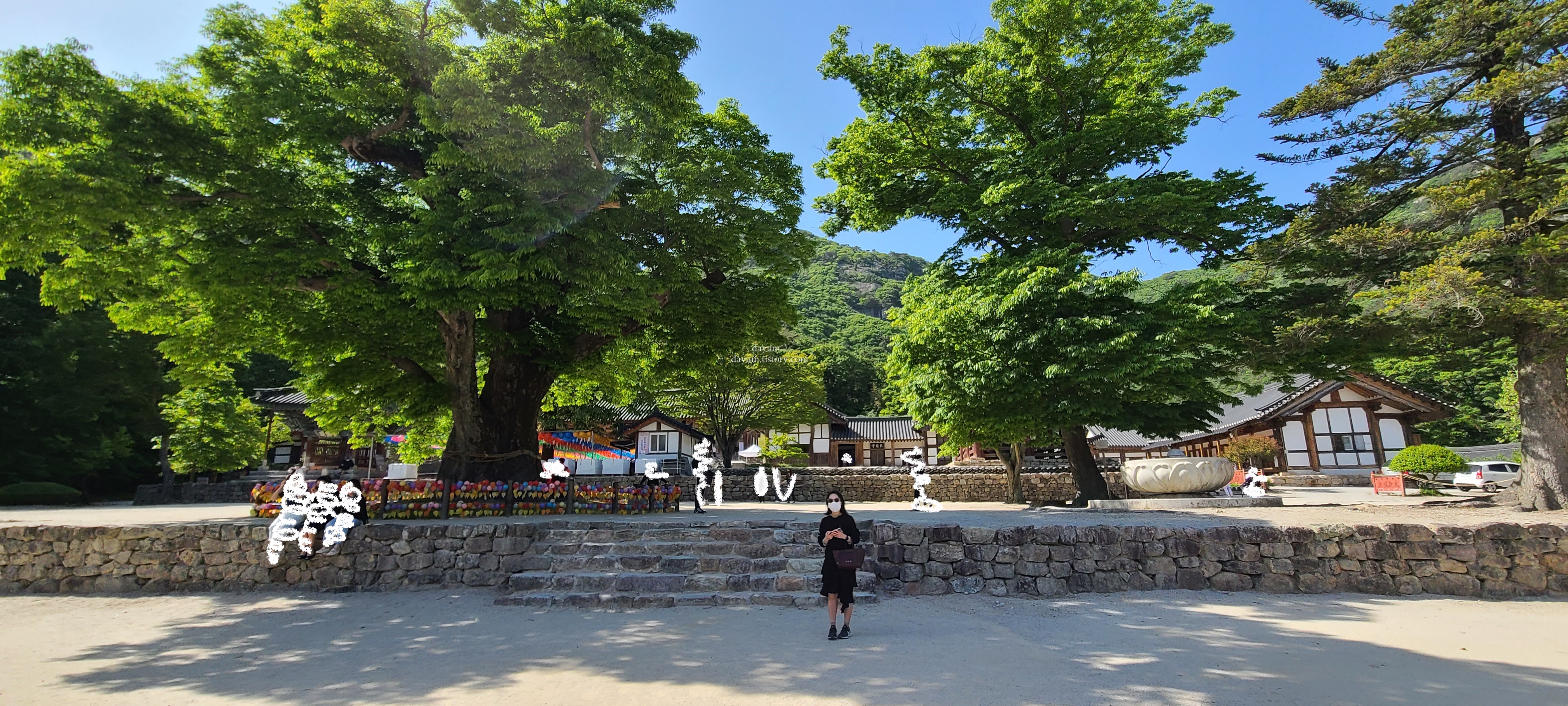 1000년 된 나무가 있고 그 뒤로 들어가면 목조건물인 대웅전이 나온다.
