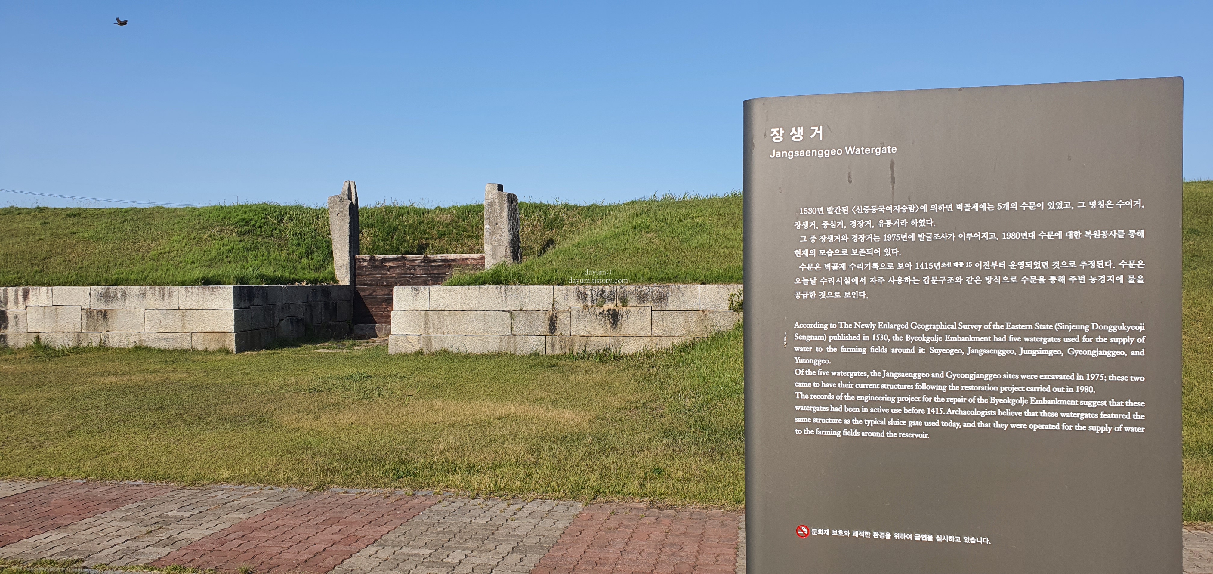 벽골제는 백제 때 쌓은 저수지 보인데, 지금은 그 둑의 일부만 남아있다.