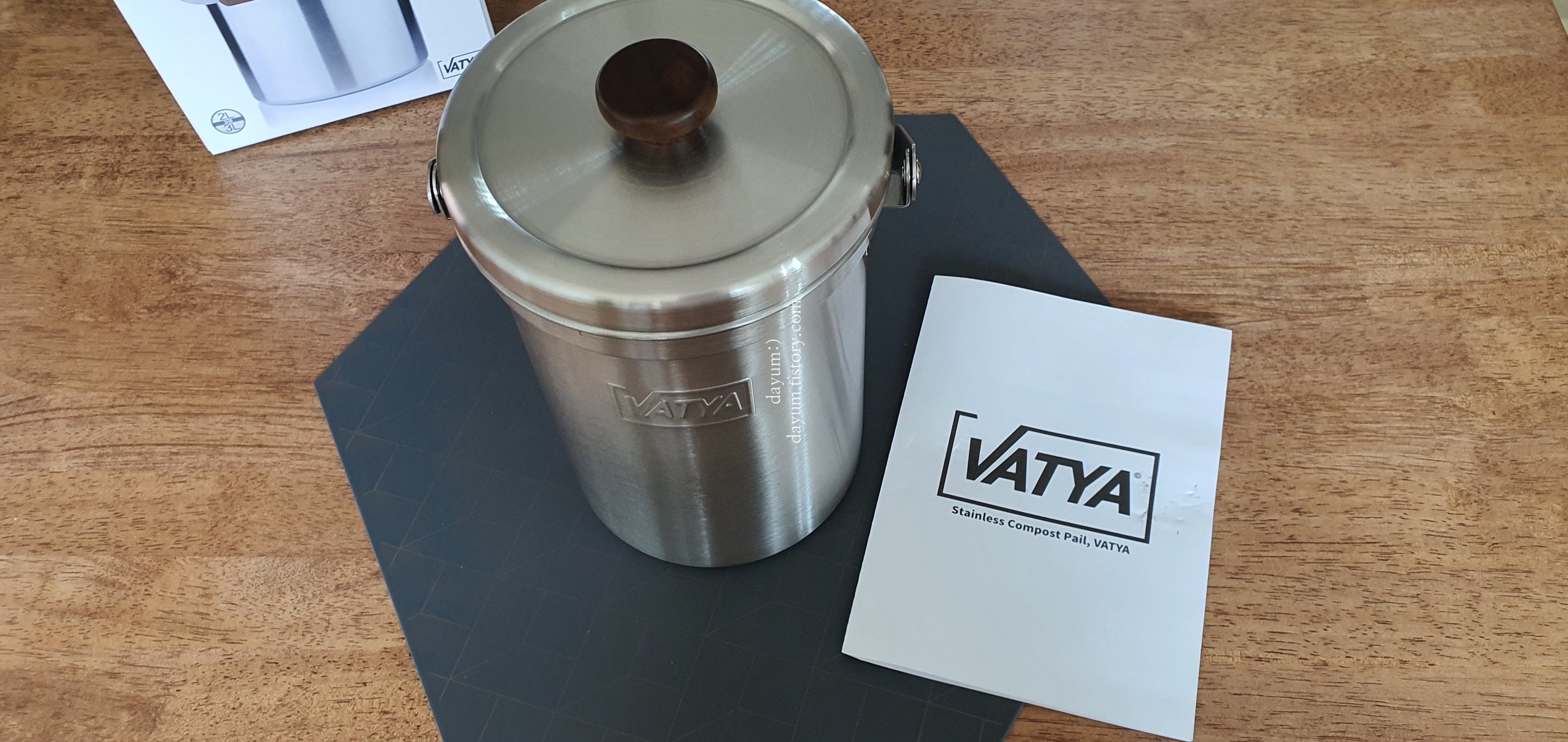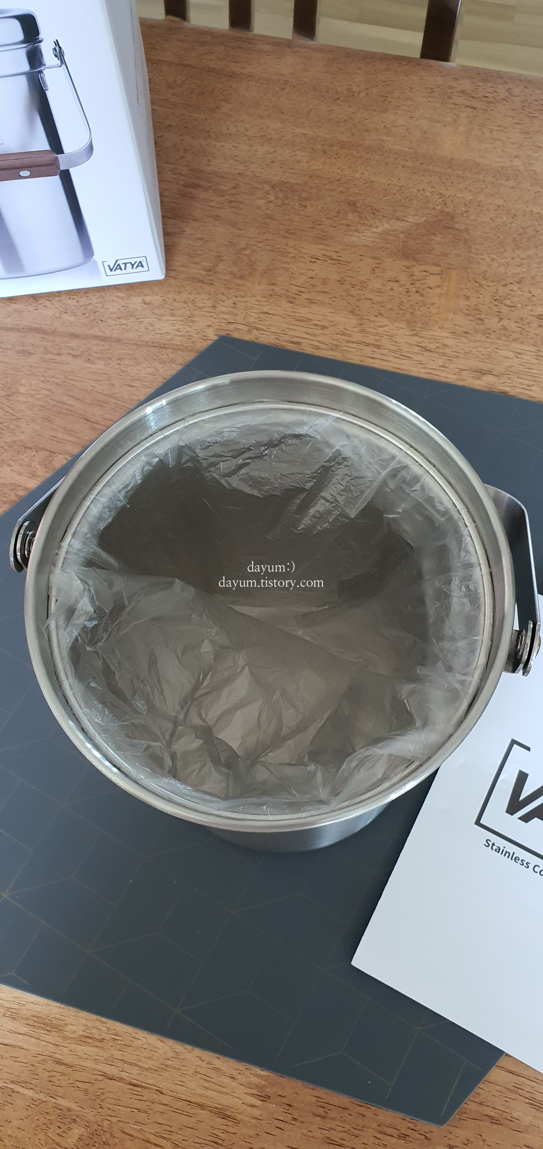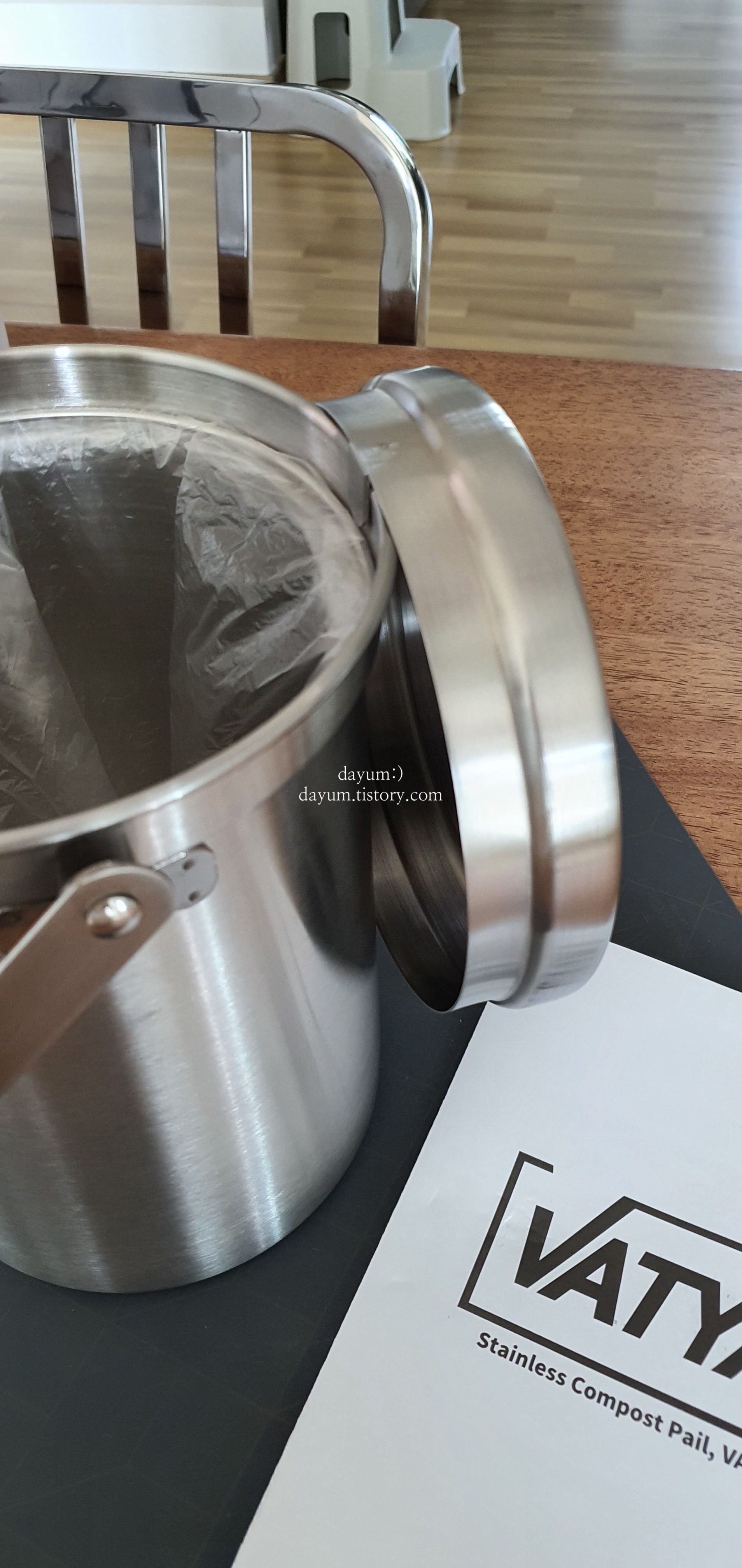 평소 사용하던 플라스틱 음식물쓰레기통에서 더이상 냄새가 안빠져서 스테인레스 제품으로 구입했다. 스테인레스에는 냄새가 베이지 않지만 세척 방법이 까다롭다.